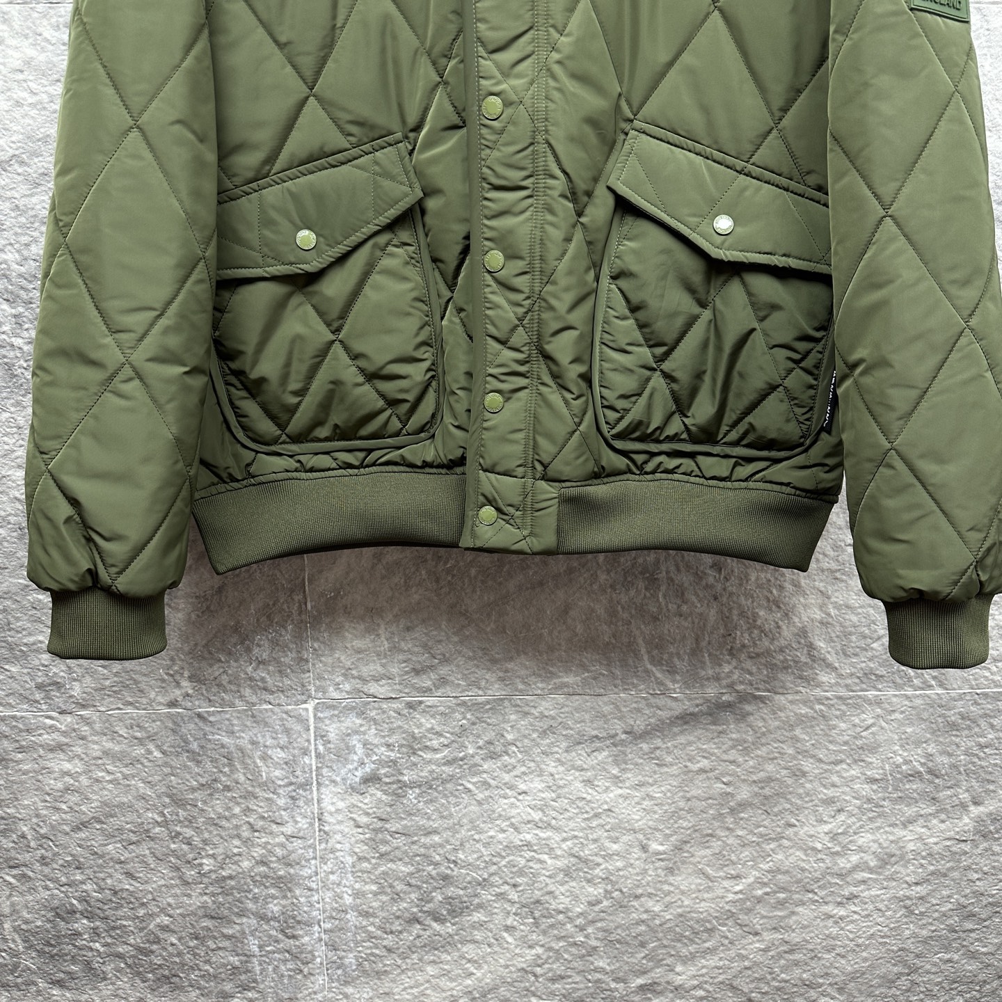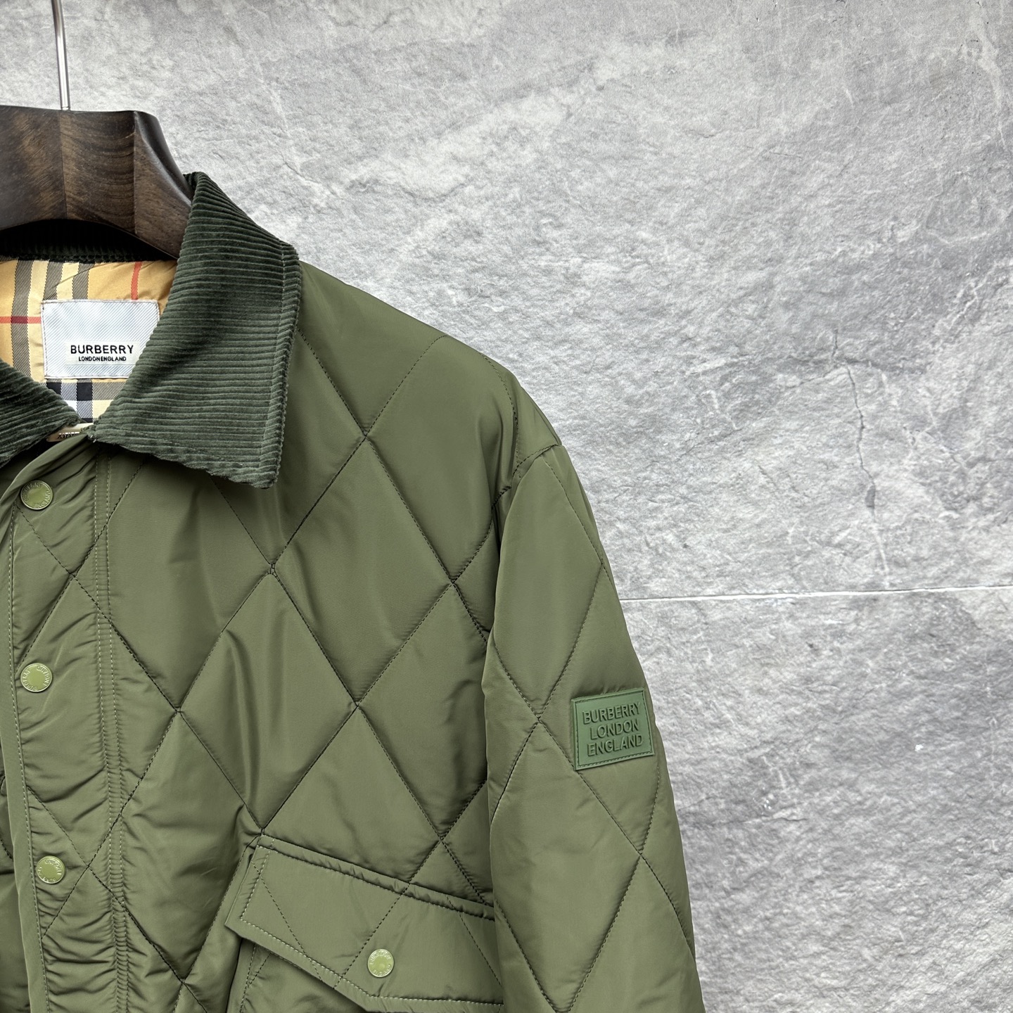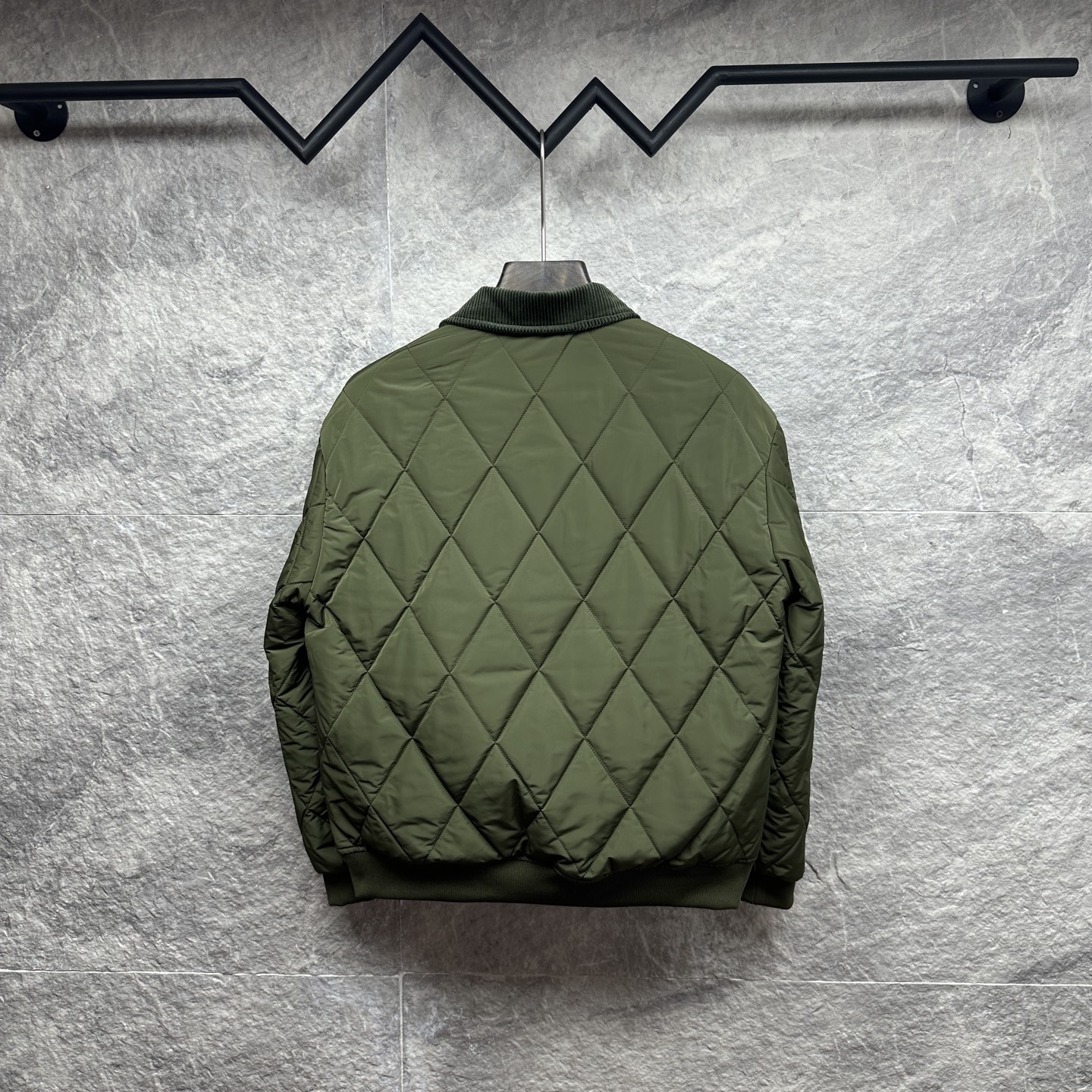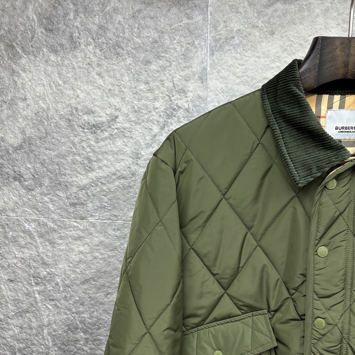 P335 巴宝莉2025新款菱形格徽标logo情侣款棉服 🍃高版本顶级品质🍃 💯采用聚酯纤维复合定制面料 透气性极好 原版定制五金开模 内里全部采用原版定制里衬 不起球 耐磨损 舒适柔软 抗皱性极强的一款情侣外套 原版主麦水洗吊牌包装👍 尺码:M—3XL 颜色:黑色 绿色