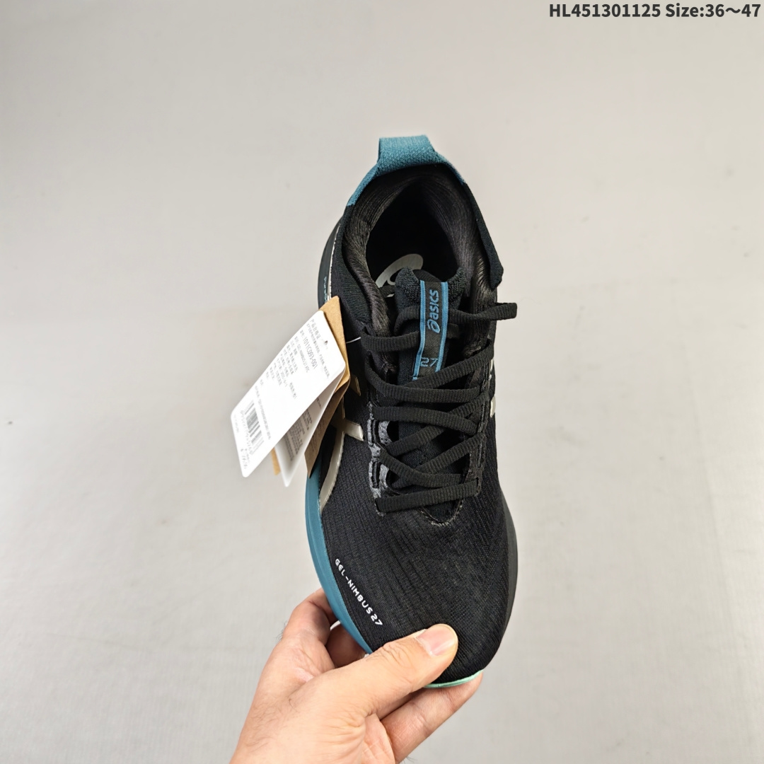 💰130 公司级✅Asics Gel-Nimbus 27 舒适防滑耐磨低帮休闲跑步鞋 鞋底采用了轻质发泡材料 并在后跟和前掌处采用了ASICS亚瑟士核心科技-GEL缓震胶 赋予鞋款强大的缓冲性能 提供了更柔软舒适的穿着体验 而在原有设计的启发之上 此次鞋款采用更贴合当今潮流趋势的材料和创新技术 展现出纽约充满活力的都市精神 货号:1011C093-001 ID:HL451301125 Size:36~47