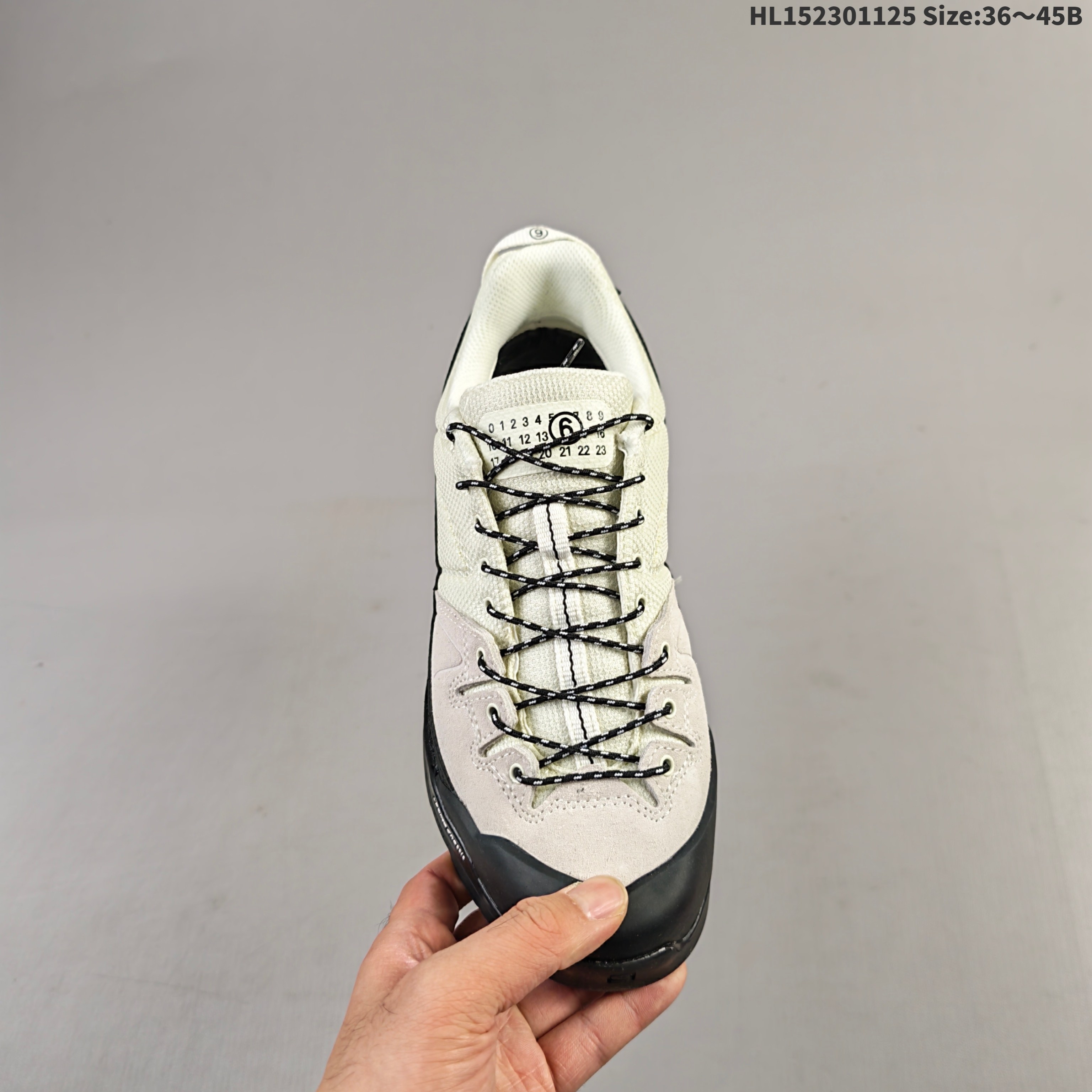 💰230 SALOMON 萨洛蒙X-ALP MM6 MAISON MARGIELA 户外运动训练鞋 马吉拉联名 实拍首发 MaisonMargiela X Salomon2024春夏联名款 让机能户外鞋的都市属性拉满 鞋舌上添加MM6签名式的编号印花 后跟鞋提处的数字印花 MM6的印章元素与Salomon的大logo相得益彰整体给人一种手工制作的感觉 麂皮网布拼接的鞋面很有层次感 包裹感很强 适合春秋底厚3-4cm 货号: 475362 28 尺码: 36 37 37.5 38 38.5 39.5 40 40.5 41.5 42 42.5 43 44 44.5 45HL152301125 Size:36~45B
