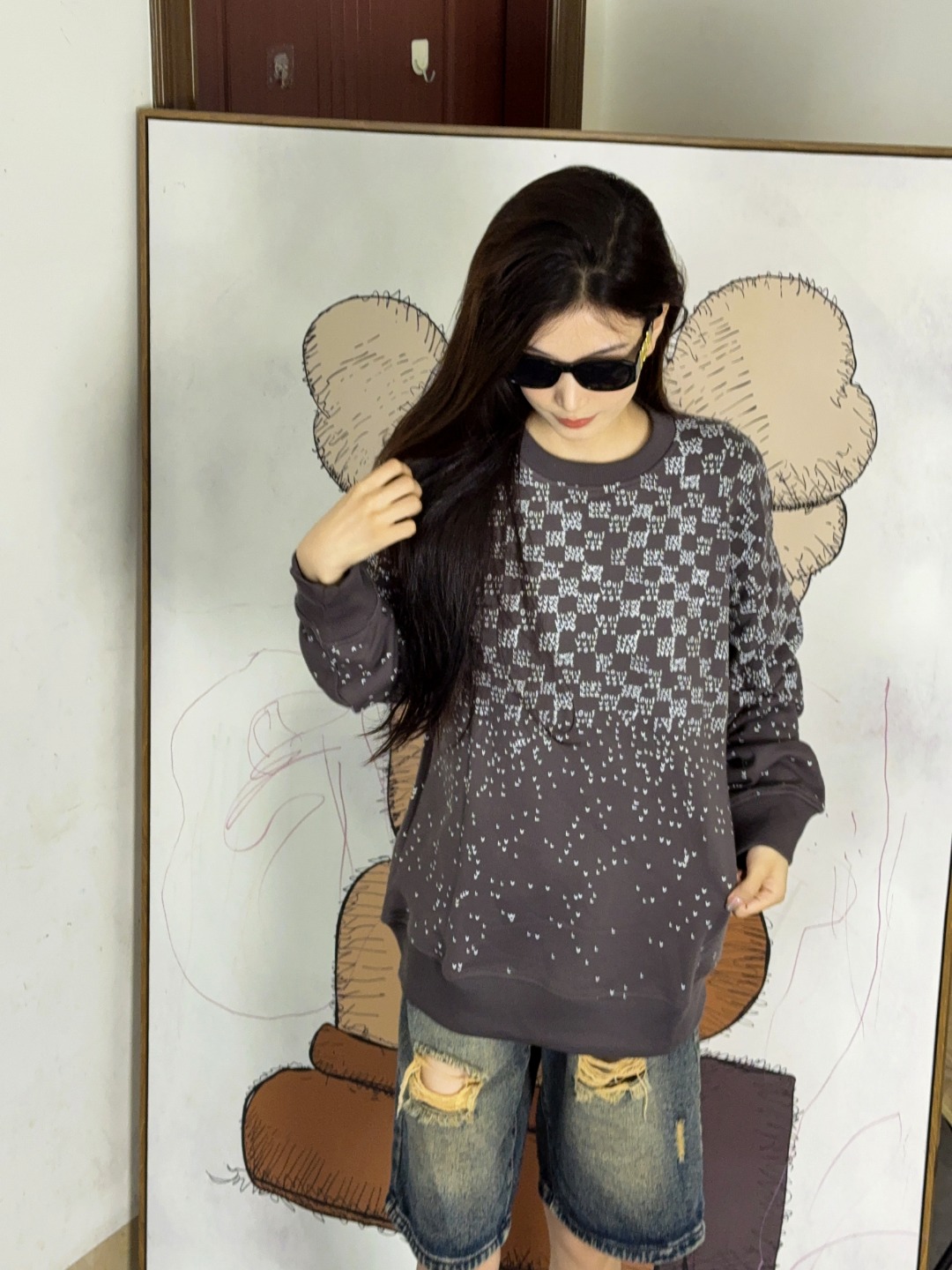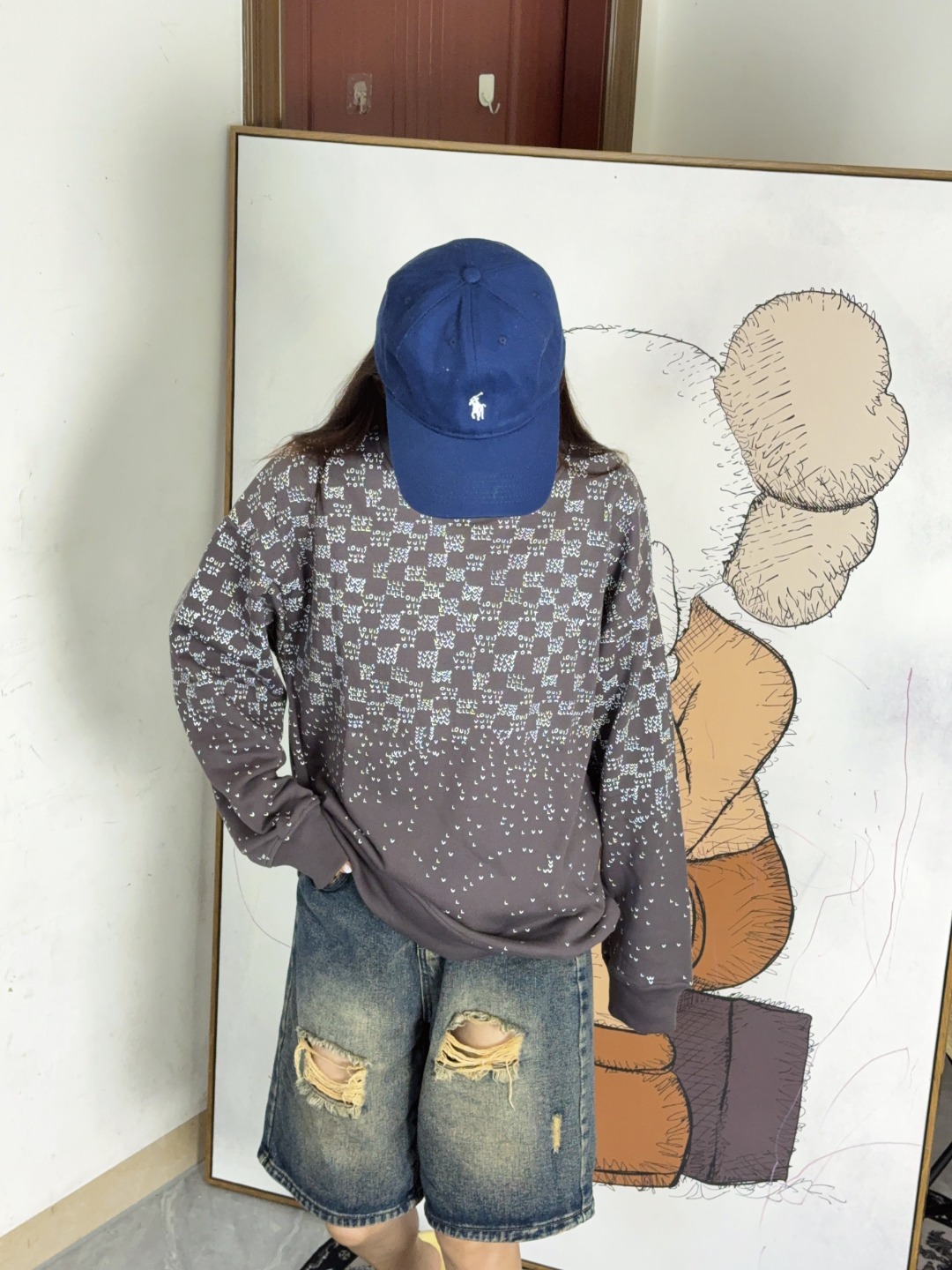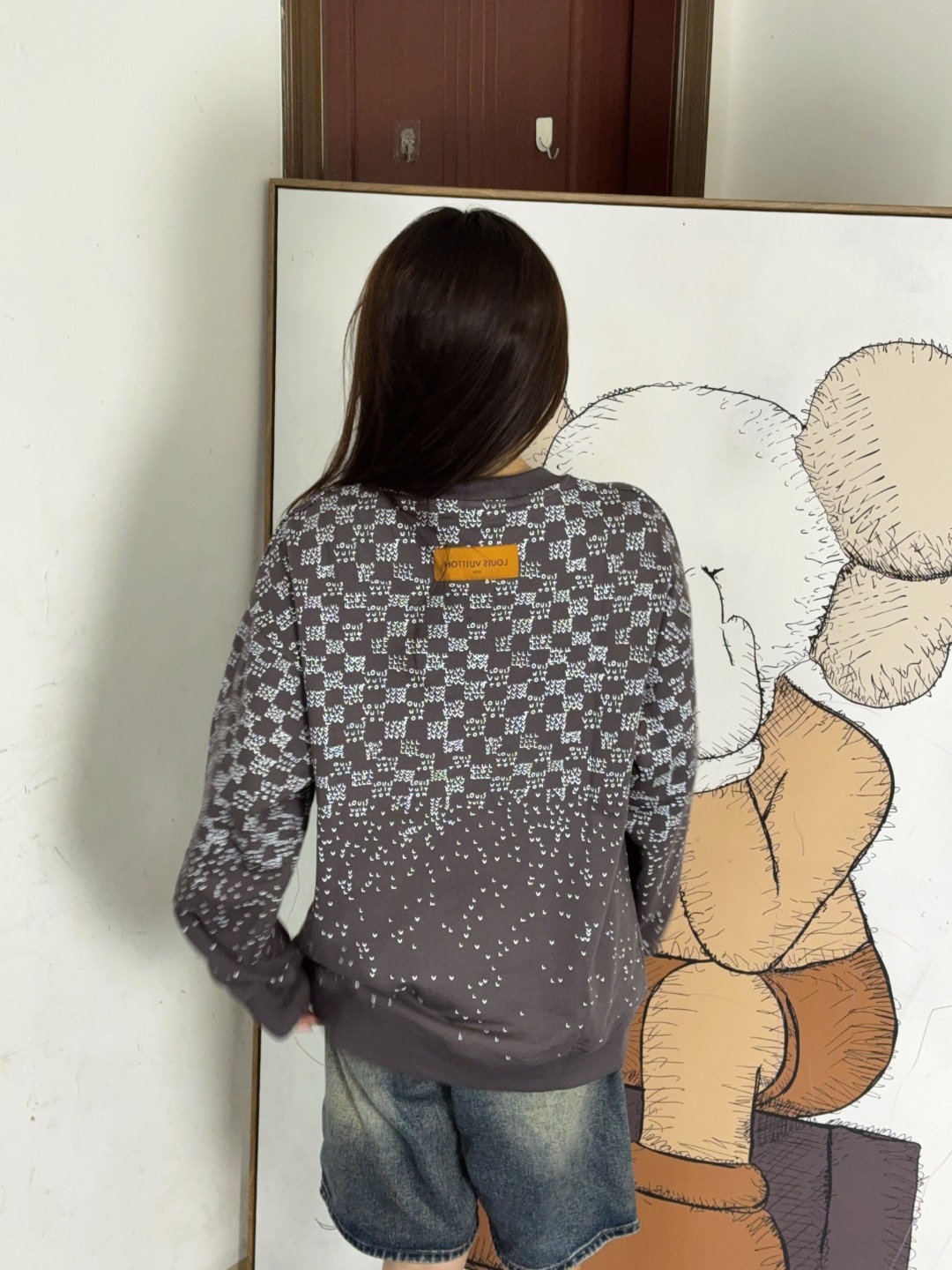 Louis Vuitton/路易威登 25Fw 渐变小飞机印花圆领卫衣 上身效果#