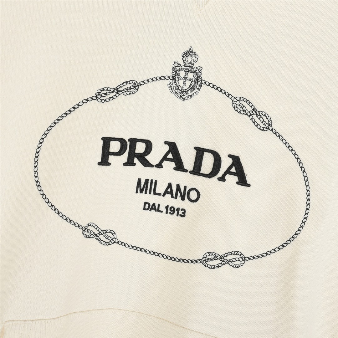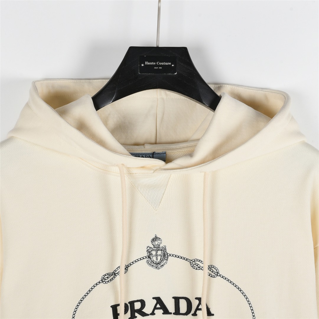 本地自取:💰240(支持放店) Prada/普拉达 25Fw 徽标刺绣袖口条纹连帽卫衣 重磅毛圈纯棉面料 云感裹身体验 采用定制高克重毛圈 蓬松肌理自带柔光滤镜 触感如羊绒般细腻亲肤 单穿不扎身 叠搭不臃肿 从早到晚维持恒温舒适体感。 字母图案采用平针刺绣针艺 精细的细节处理 造就了微立体浮雕的刺绣效果 经典商标字母设计 还原一致大小间距 刺绣精细针法绵密 字体清晰且线条感和立体感强。远用粗线绣的方式 通过专业机车绣出图案 图案精致别致 富有立体感 模拟盘绳绣的效果 有链条肌理和立体效果 在图案花型设计上多以线条为主 修饰图形边框部位的刺绣运用。 辅料齐全 做工精致 质量一如既往的好! 时尚的你一定不要错过这一款 颜色:黑色、杏色 Size:XS-L