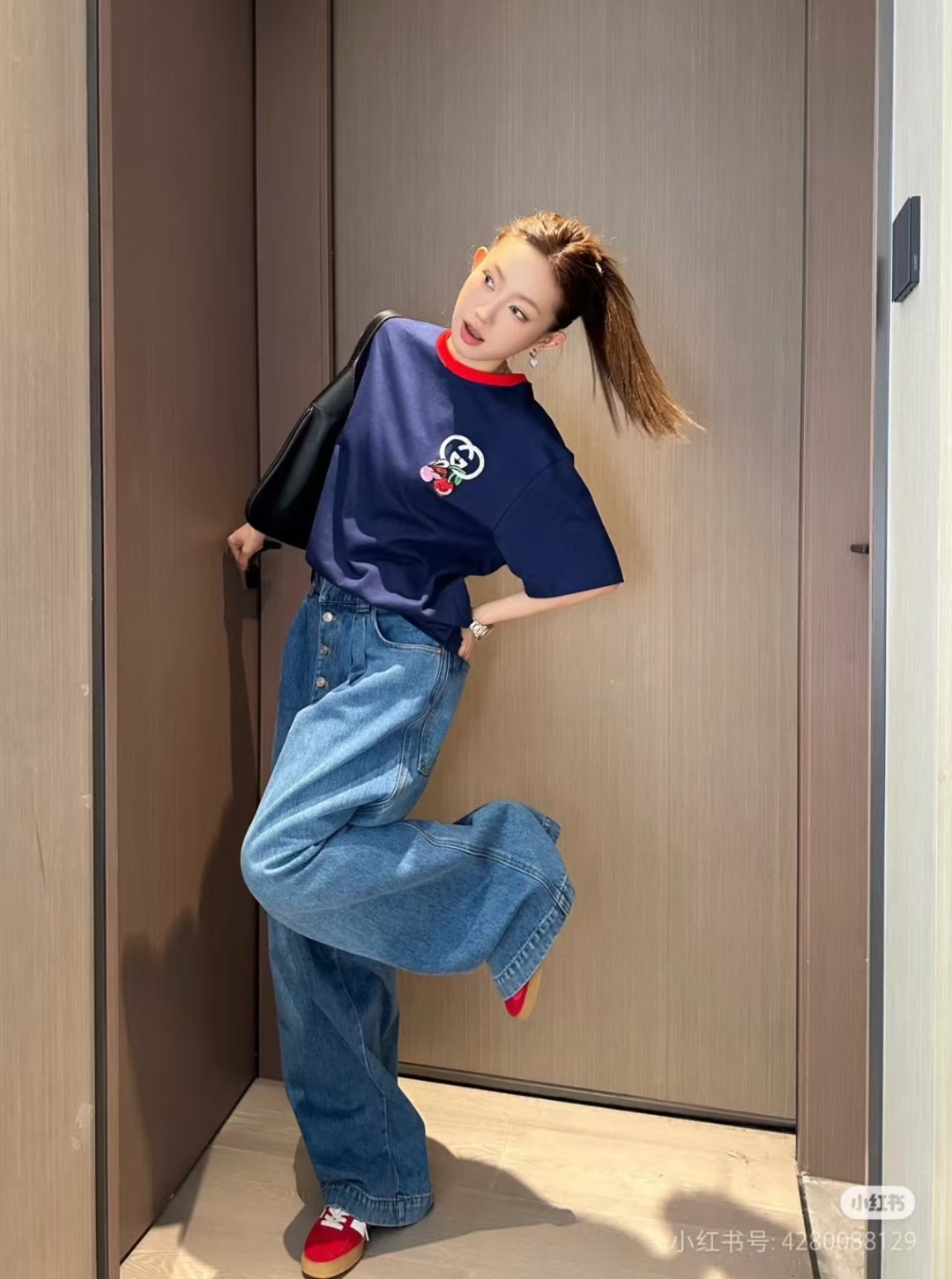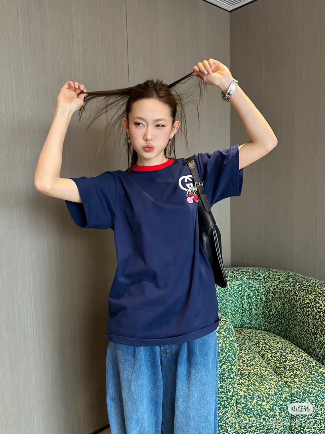 模特上身效果 Gucci/古驰 双Glogo樱桃吊坠短袖T桖