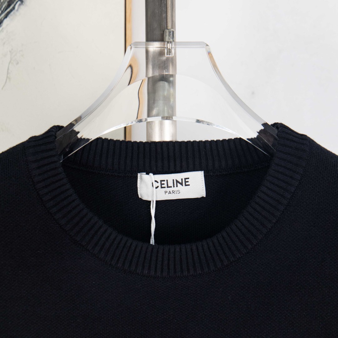 P235 zp版本[独家供应] 塞琳 CELINE 横幅经典字母logo针织🧶圆领毛衣 超高克重重工制作 面料精选羊毛混纺面料柔软舒适透气亲肤 上身效果极佳 不扎人很舒适 进口机器编织拼接设计 内里包边包条做工高版本 细节完美 版型宽松 良心制作 颜色: 黑色 尺码:S M L XL 编号:MY10523