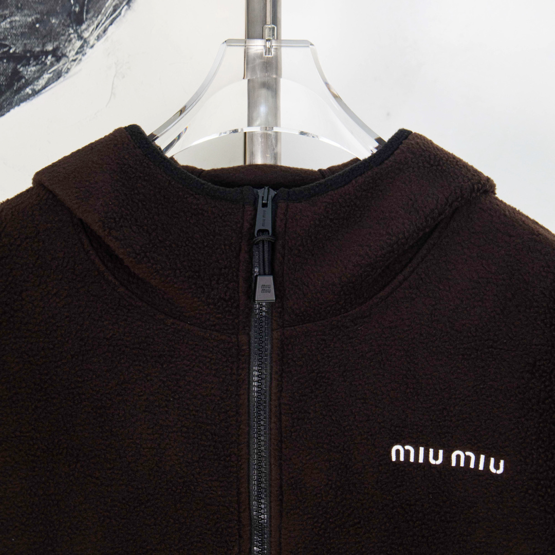 P320 zp版本[独家供应] miumiu 🌟摇粒绒连帽拉链外套 定制YB进口摇粒绒材质 质感柔软 舒适亲肤保暖 换季叠穿 时髦又御寒 连帽拉链外套版型 开衩随意调节 胸前融入品牌字母标识 与大身深色碰撞有效提亮 低调彰显了品牌个性魅力 拉链口袋和抽绳增加休闲松弛感 宽松廓形Oversized 穿搭舒适时尚 无论日常出行还是休闲娱乐 都能轻松驾驭 时尚松弛 定制面辅料 尺码:剩下XL 编号:HU10238