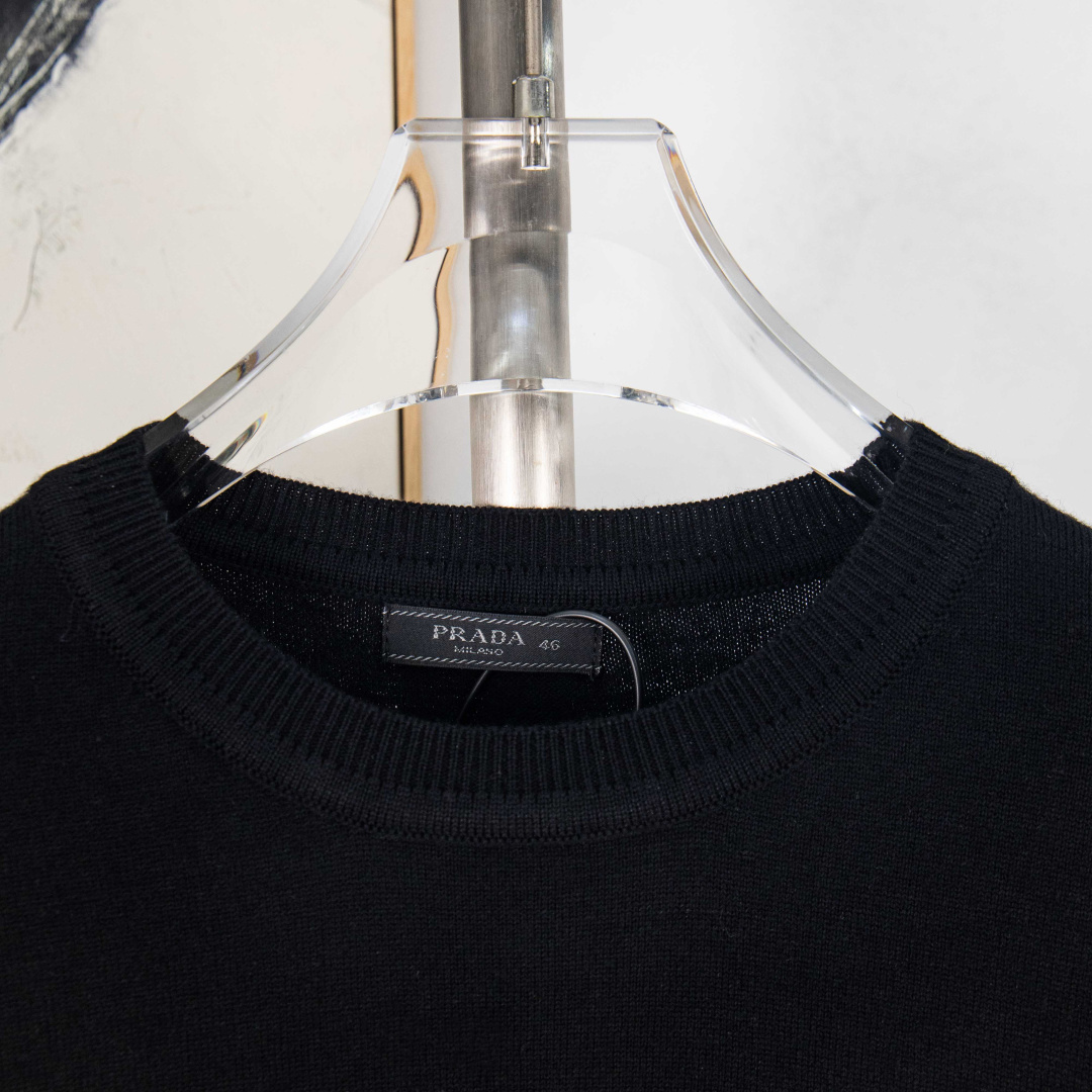 这款精纺羊毛毛衣是Prada衣橱经典款,造型简洁。这款服装质地柔软轻盈,撞色刺绣字母徽标为其增添亮点。