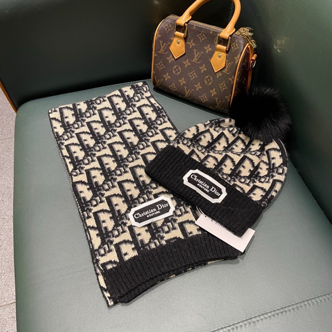 P200 迪奥DIOR经典套装帽子!帽子➕围巾!羊绒兔绒品质!暖暖哒超级舒服~冬日小姐姐减龄神器哦~这个冬天你就差这么一套套装帽子啦~又保暖又时尚!男女通用款!可以做情侣款!防伪标签吊卡齐全!多多款式,欢迎选择!