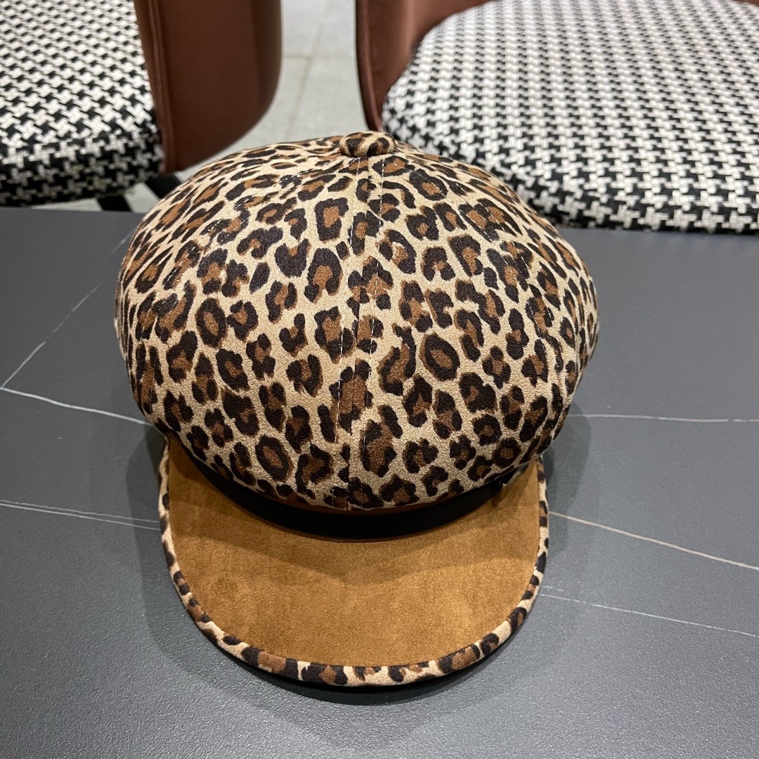 P115 普拉达 2025年新款豹纹拼接八角帽子女春秋季出游百搭 显脸小时尚鸭舌帽