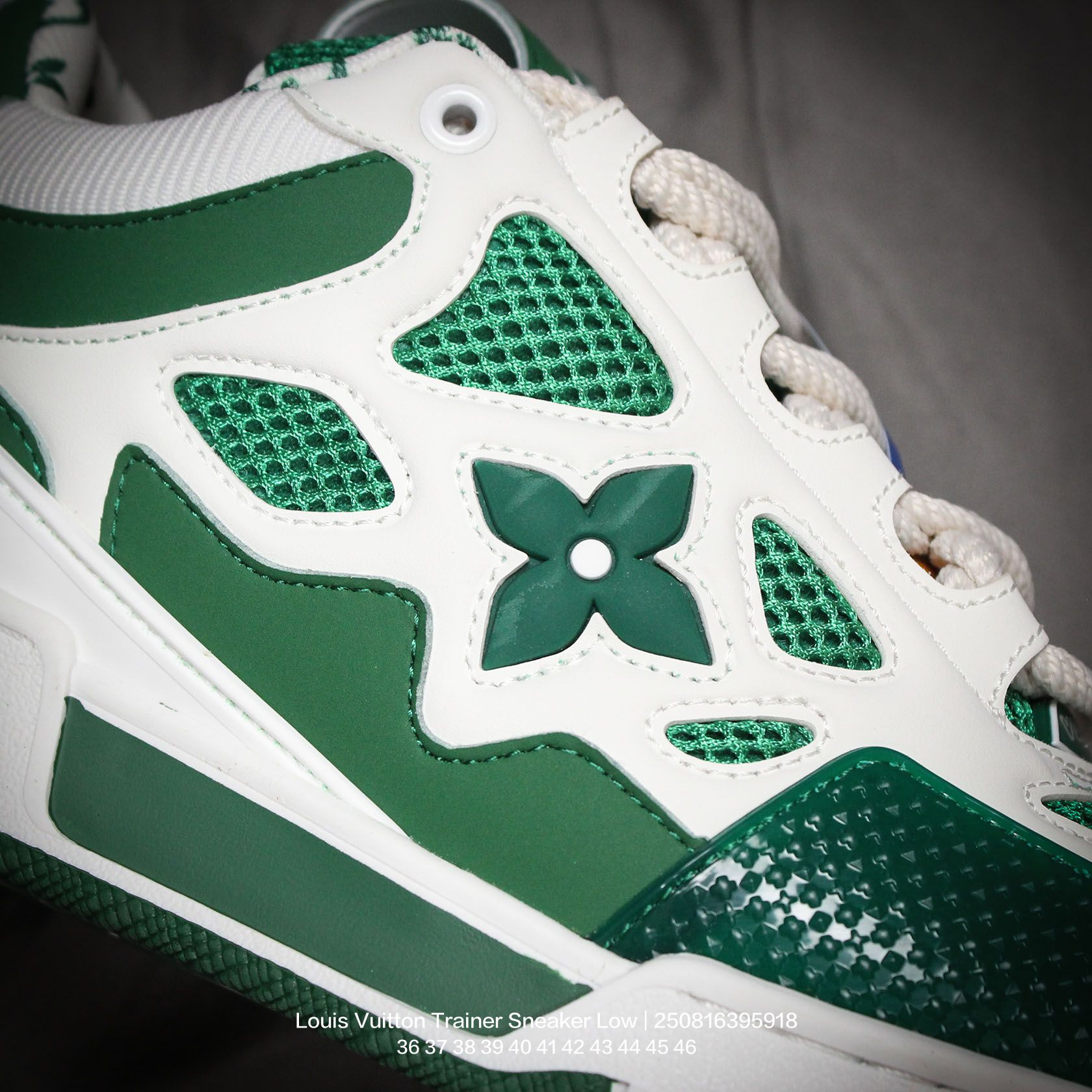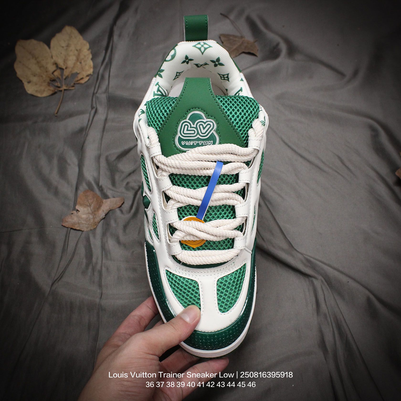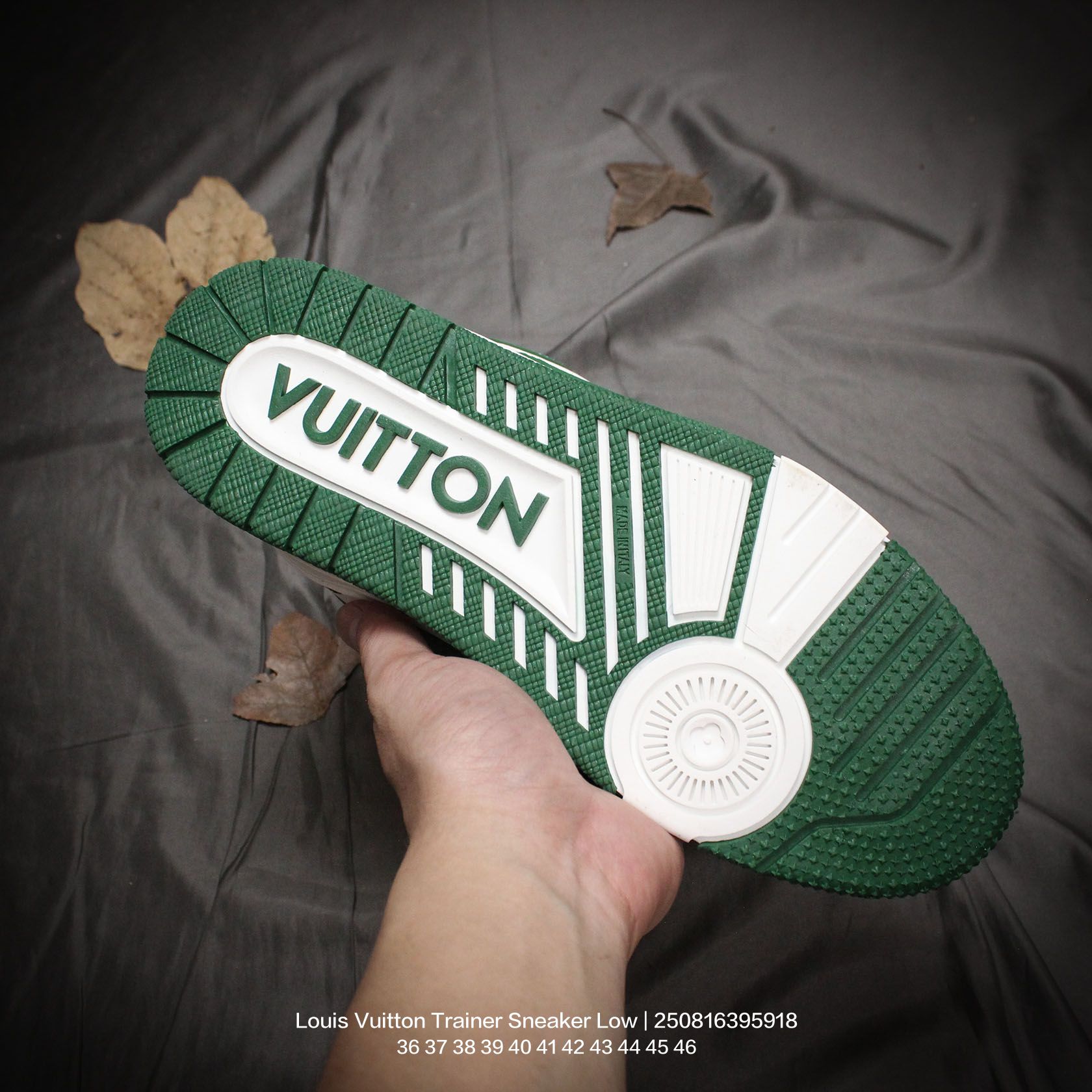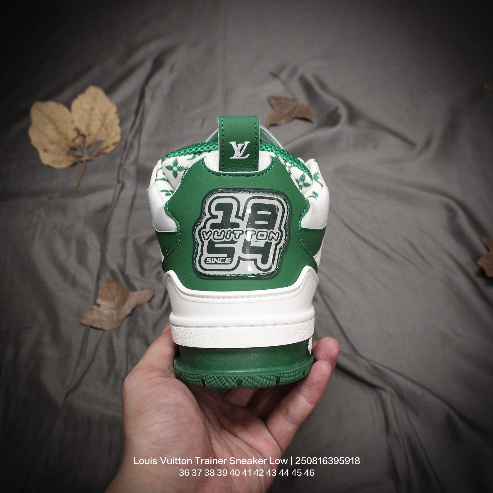 💰180 Louis Vuitton/路易威登 男女鞋配置厚实抽屉礼品鞋盒,采用荔枝纹纤维革组合粒面牛剖革鞋面材质,鞋垫嵌入软脚感EVA物料,外置TPR光泽隔色鞋底❗法国巴黎百年奢侈品牌LV路易威登Louis Vuitton Trainer Sneaker Low 运动系列低帮复古百搭休闲运动文化篮球板鞋“ 类型:男女鞋 码数:36 37 38 39 40 41 42 43 44 45 46 编码:250816395.918