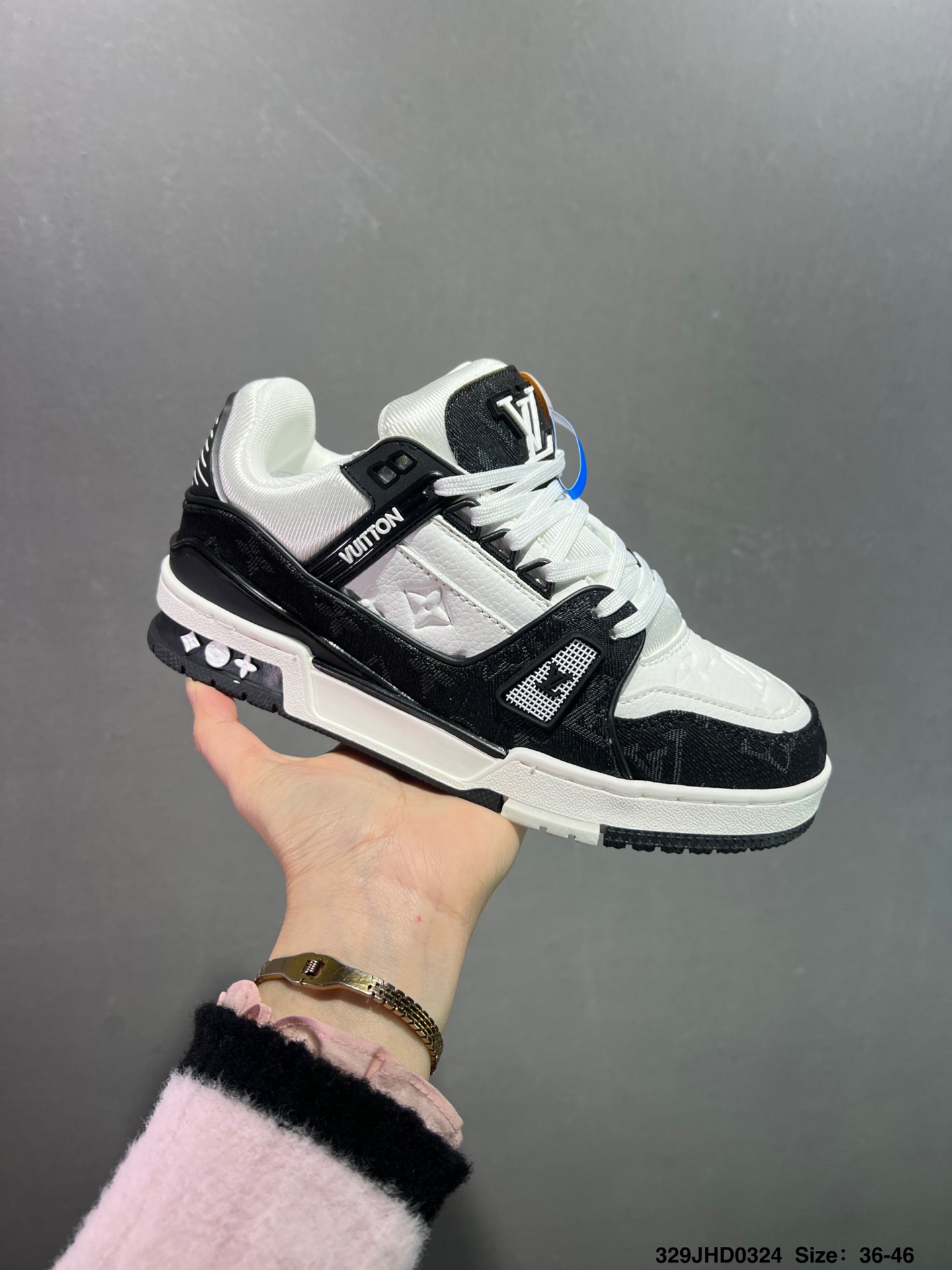 💰130 头层空胶✅路易威登/Louis Vuitton LV路易威登板鞋 新款 LV Trainer最新配色运动鞋 L家 篮球鞋风格运动鞋 该鞋由艺术总监 VIRGIL ABLOH设计 垫脚聚米微料加透气英伦网布 细节原版一致 Size:36-46 ID:329JHD0324