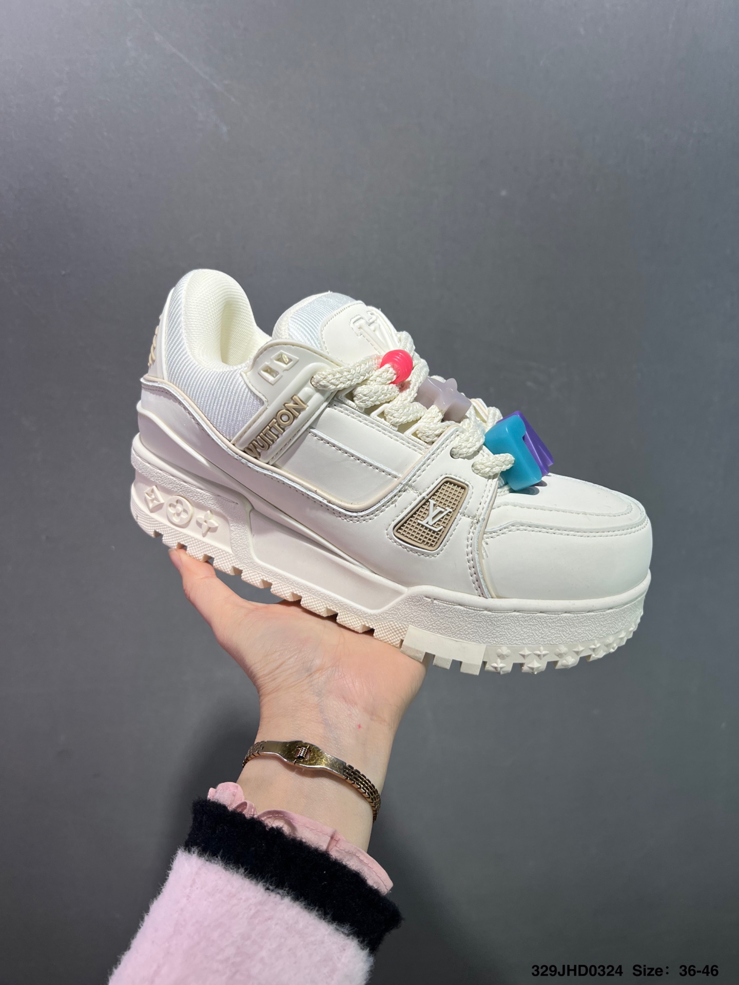 💰130 头层空胶✅路易威登/Louis Vuitton LV路易威登板鞋 新款 LV Trainer最新配色运动鞋 L家 篮球鞋风格运动鞋 该鞋由艺术总监 VIRGIL ABLOH设计 垫脚聚米微料加透气英伦网布 细节原版一致 Size:36-46 ID:329JHD0324