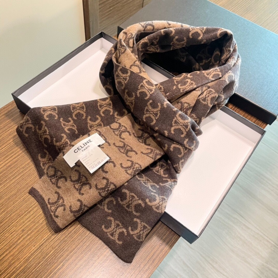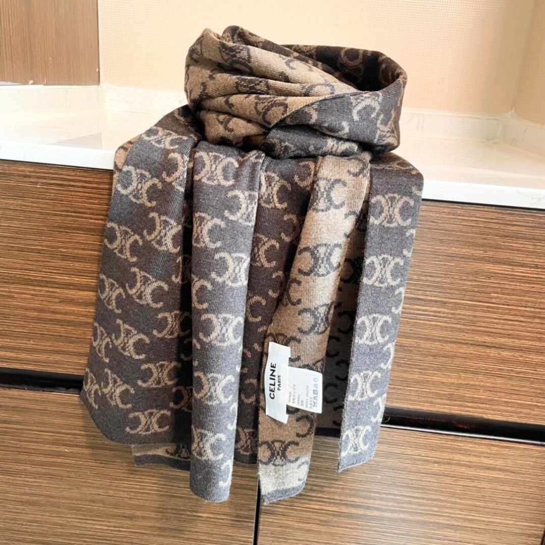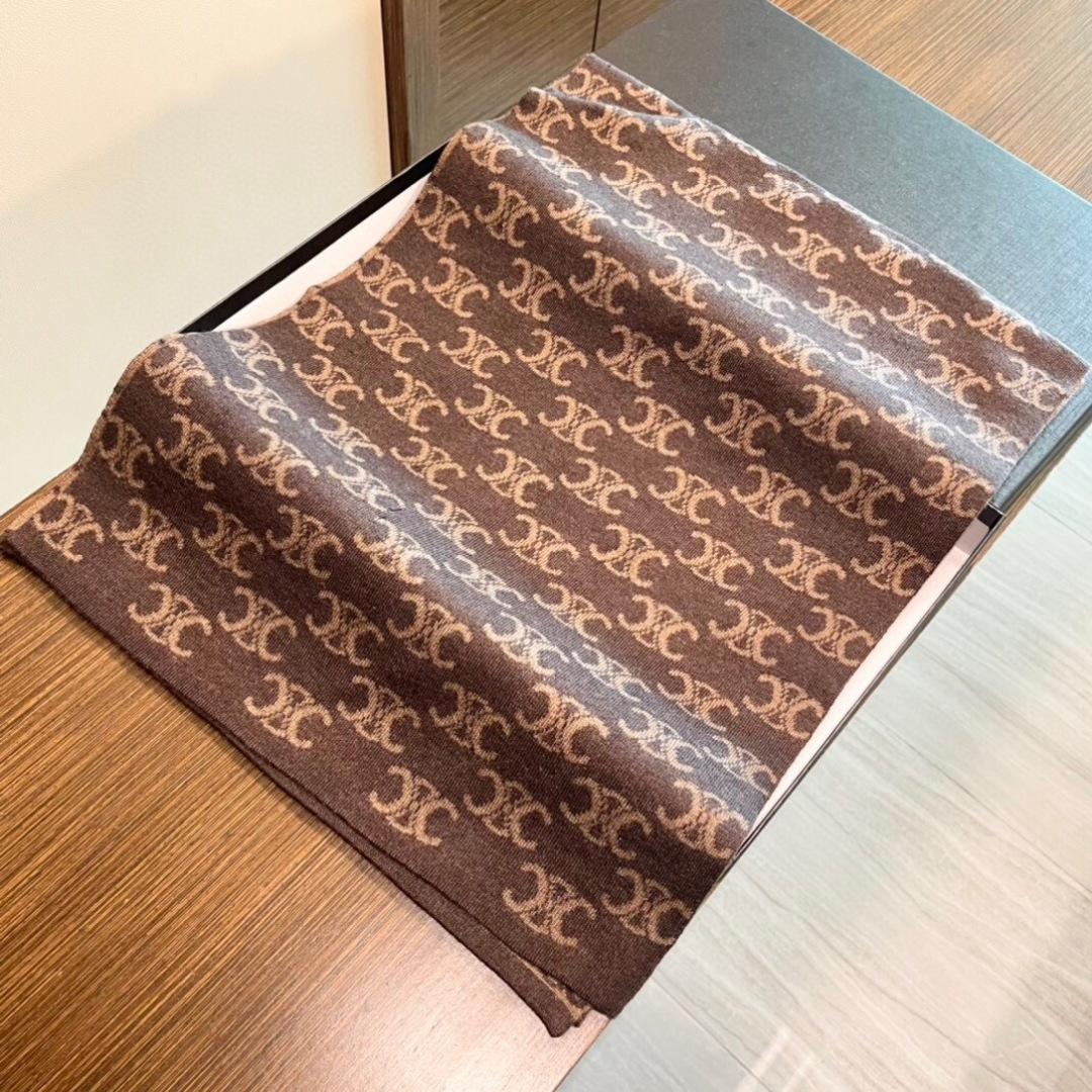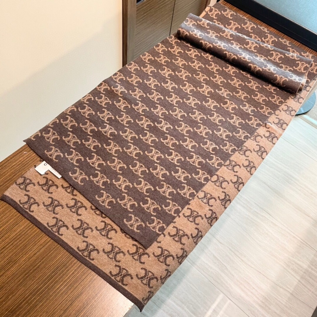 P145 CELINE赛琳针织原单围巾 重磅推荐‼️新款针织围巾 男女同款❗️✨✨低调的奢侈感❗️极品柔美精英高手级别的时髦感围巾❗️这款CELINE羊绒提花围巾越看越爱,越看越时髦❗️这种工艺和配色一看就知道不是一般的,非常非常喜欢这种高手级别的时髦感,有态度的时髦人一定会喜欢!这样的设计更舒展,更高级,更大气,更加经得起推荐‼️采用每年开春采集的阿尔巴斯纯种绒山羊腹部绒尖为原绒生产,这种羊绒的特点就是,即便经过人类工艺的加工,仍最大程度的保留了原绒的本质,会有特殊的肌理纹‼️围巾握在手里就跟握着云朵般的仍空气绵绵感❗️真的非常高级〰低调轻奢的配色,非常百搭,30*180