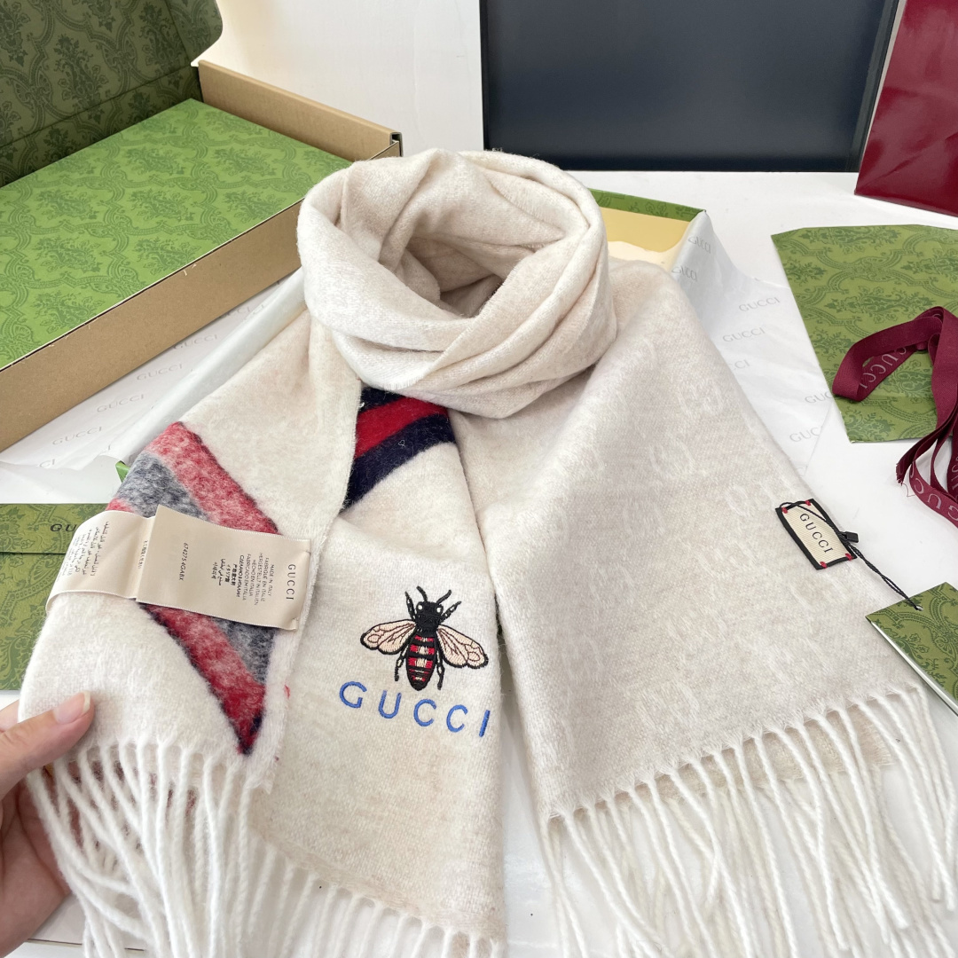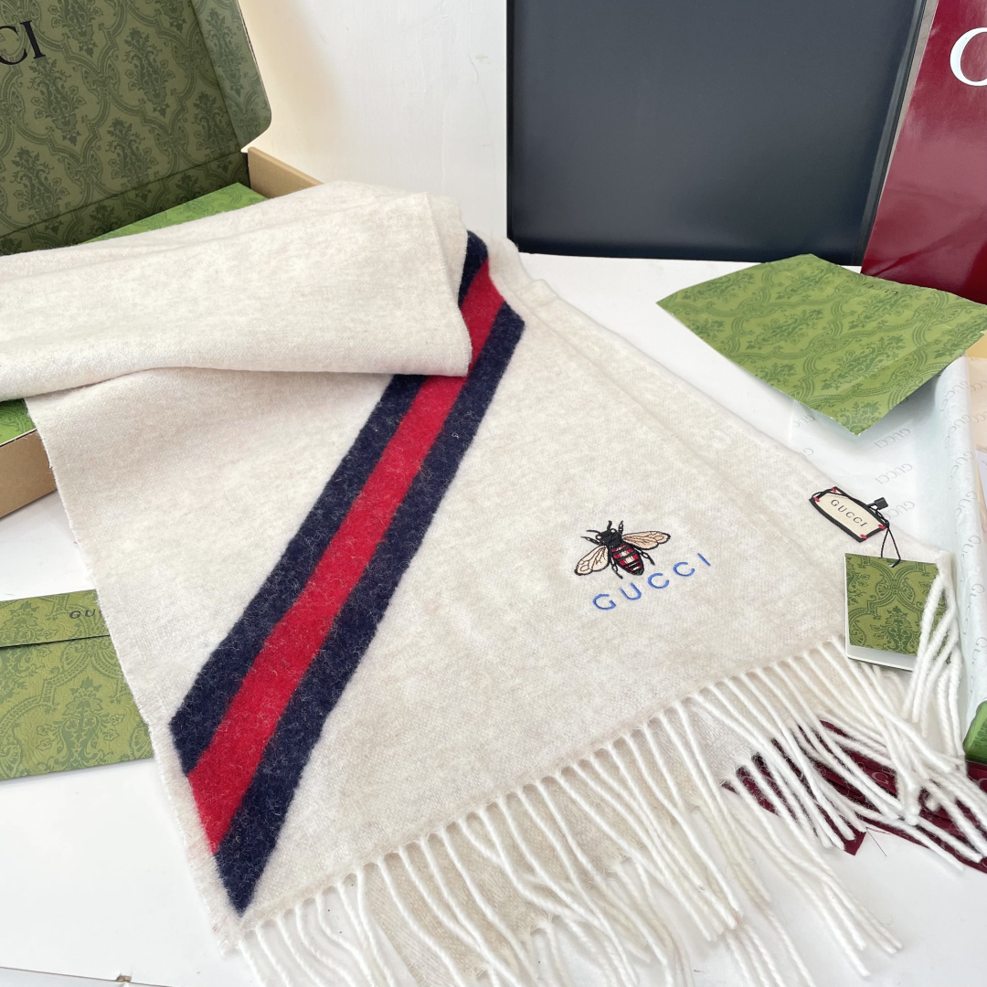 P165 vip推荐👍Gucci专柜最新款‼️🔥爆款哦 😘💍实物真心美 🎀条纹小蜜蜂🐝💓💃🏻无论设计都是非常到位☀️细节都可见🌟整个围巾给人大牌气场的同时又非常精致高端💟VIP推荐⚡️绝对值得入手的新款💟35*200cm 顶级羊绒长巾.