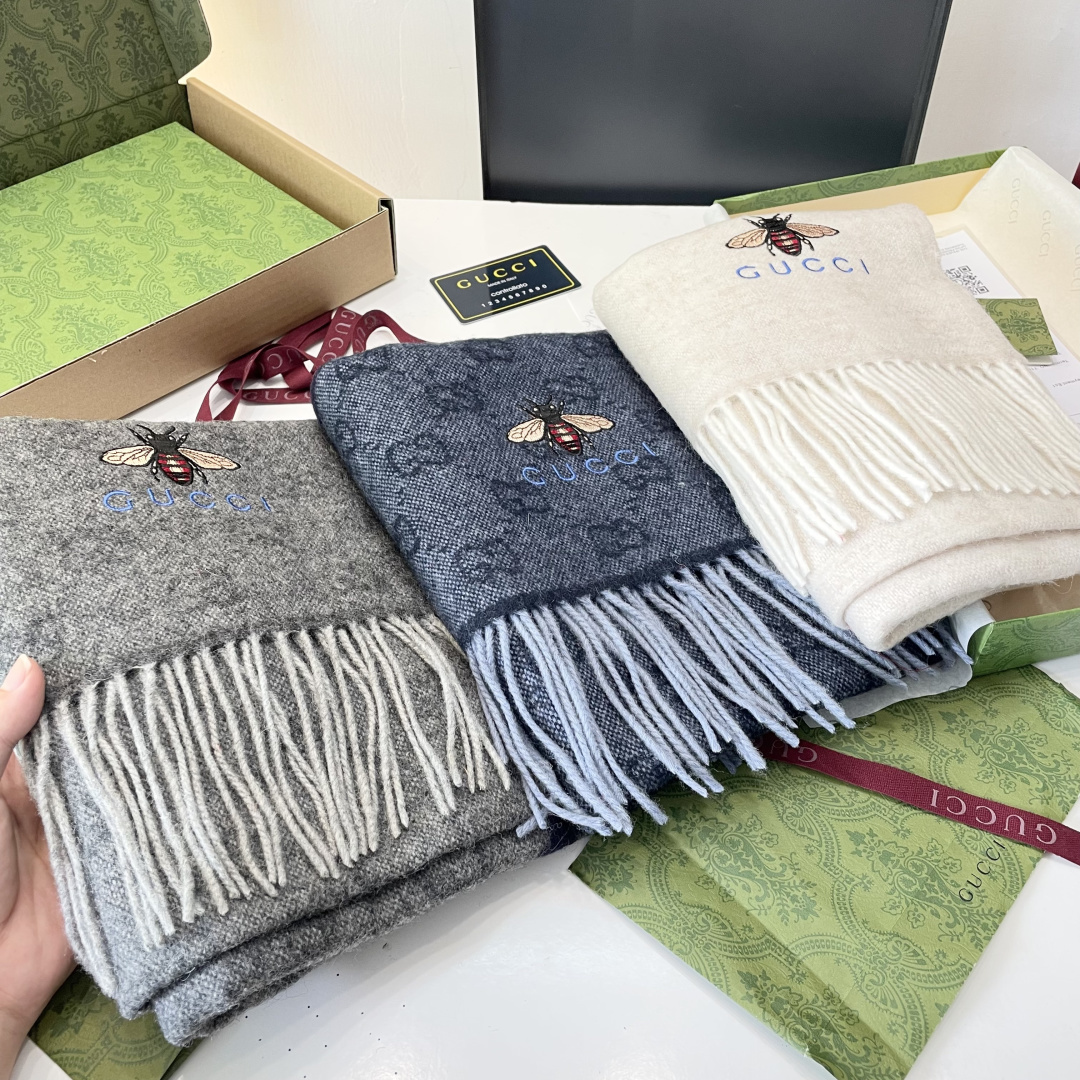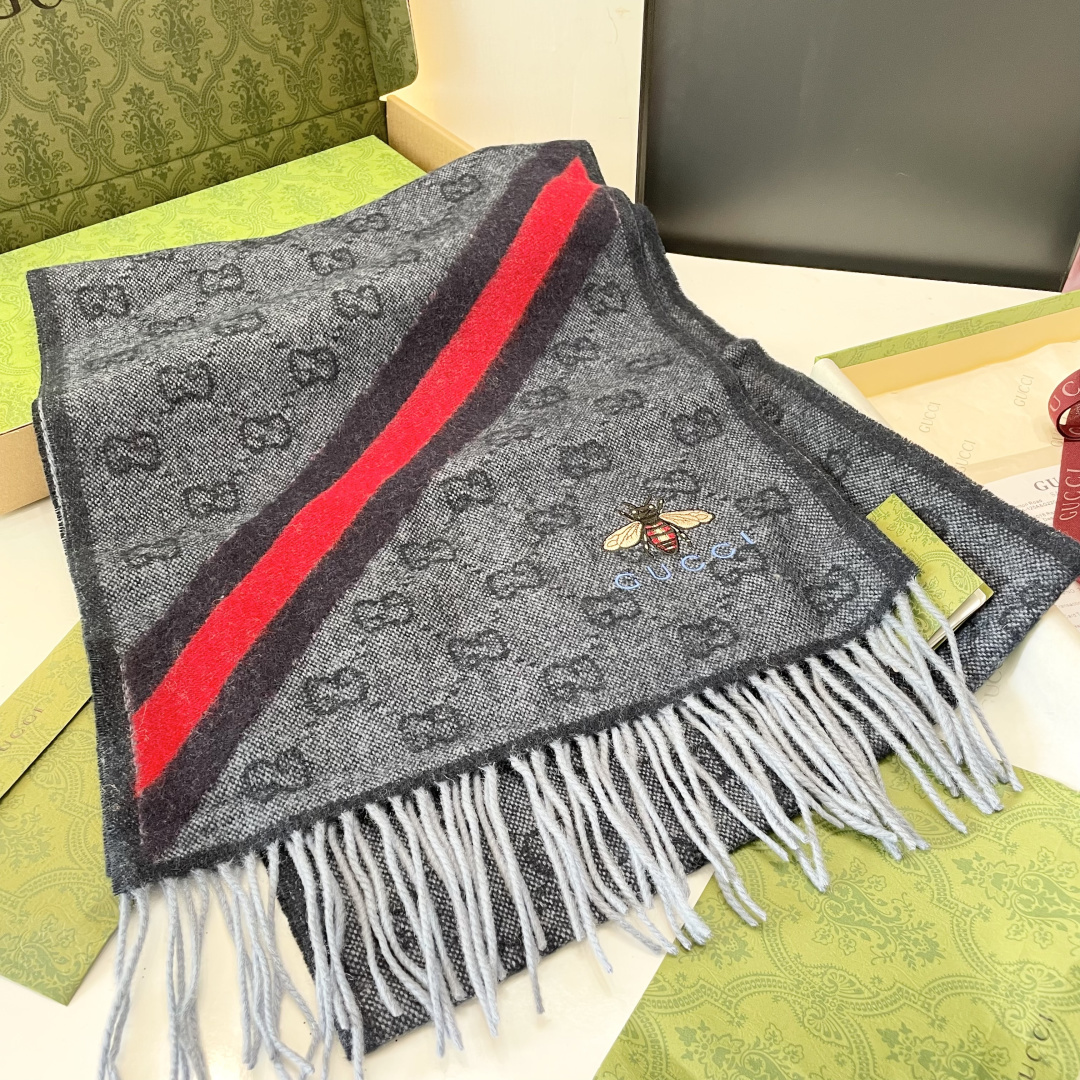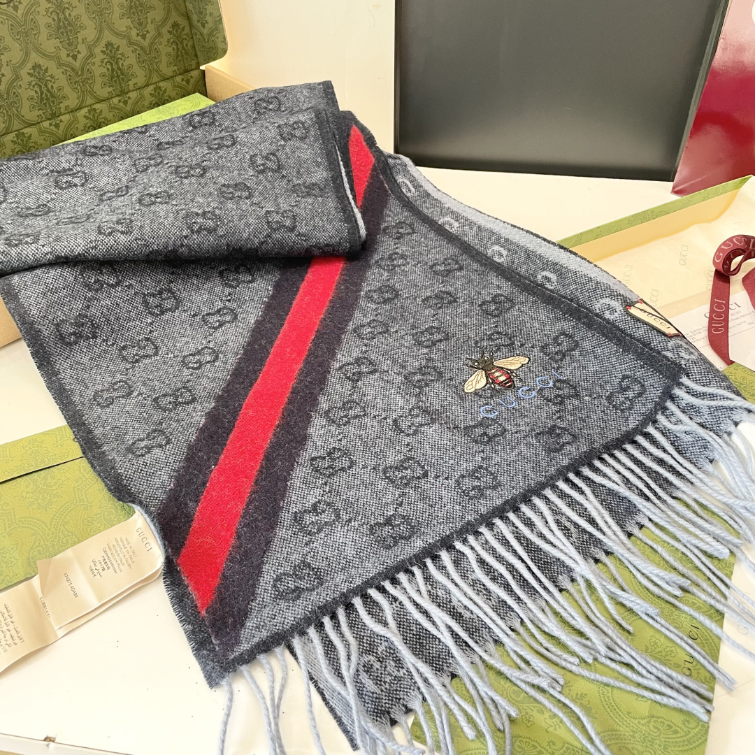 P165 vip推荐👍Gucci专柜最新款‼️🔥爆款哦 😘💍实物真心美 🎀条纹小蜜蜂🐝💓💃🏻无论设计都是非常到位☀️细节都可见🌟整个围巾给人大牌气场的同时又非常精致高端💟VIP推荐⚡️绝对值得入手的新款💟35*200cm 顶级羊绒长巾.