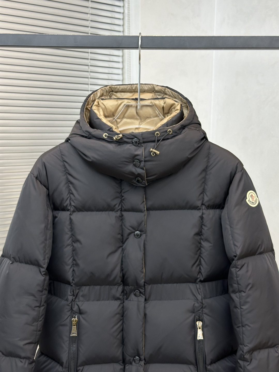 P530 高版本 Moncler/盟可睐 蒙口 Agneux Square-Quilted Hooded Short Down Jacket 衬衫拉链短款长袖羽绒服 女款 Agneux Square-Quilted Hooded Short Down Jacket女款衬衫拉链短款长袖羽绒服,是该品牌冬季的一款精致单品。 • 材质:外套采用再生尼龙材质,具有防水性能和闪亮的缎面光泽,内衬为100%尼龙,填充料为90%白鸭绒和10%羽毛,保暖性能优良。 • 设计特点:采用方形绗缝设计,搭配可拆卸和可调节的连帽,领口和袖口设计贴合人体,保暖性好。衣服正面有拉链和按扣双重闭合,方便穿脱,腰部配有弹性腰带,可塑造女性的柔美身形,同时设有拉链口袋,便于存放物品。 • 尺码与版型:该款为常规版型,肩部修身,腰部和臀部呈喇叭形,模特身高176cm,穿着0码,衣长(从领口到下摆)为67cm。 • 价格与颜色:在不同地区价格略有差异,如在保加利亚售价为3940列弗,在英国售价为1640英镑,有米色、黑色等颜色可选。