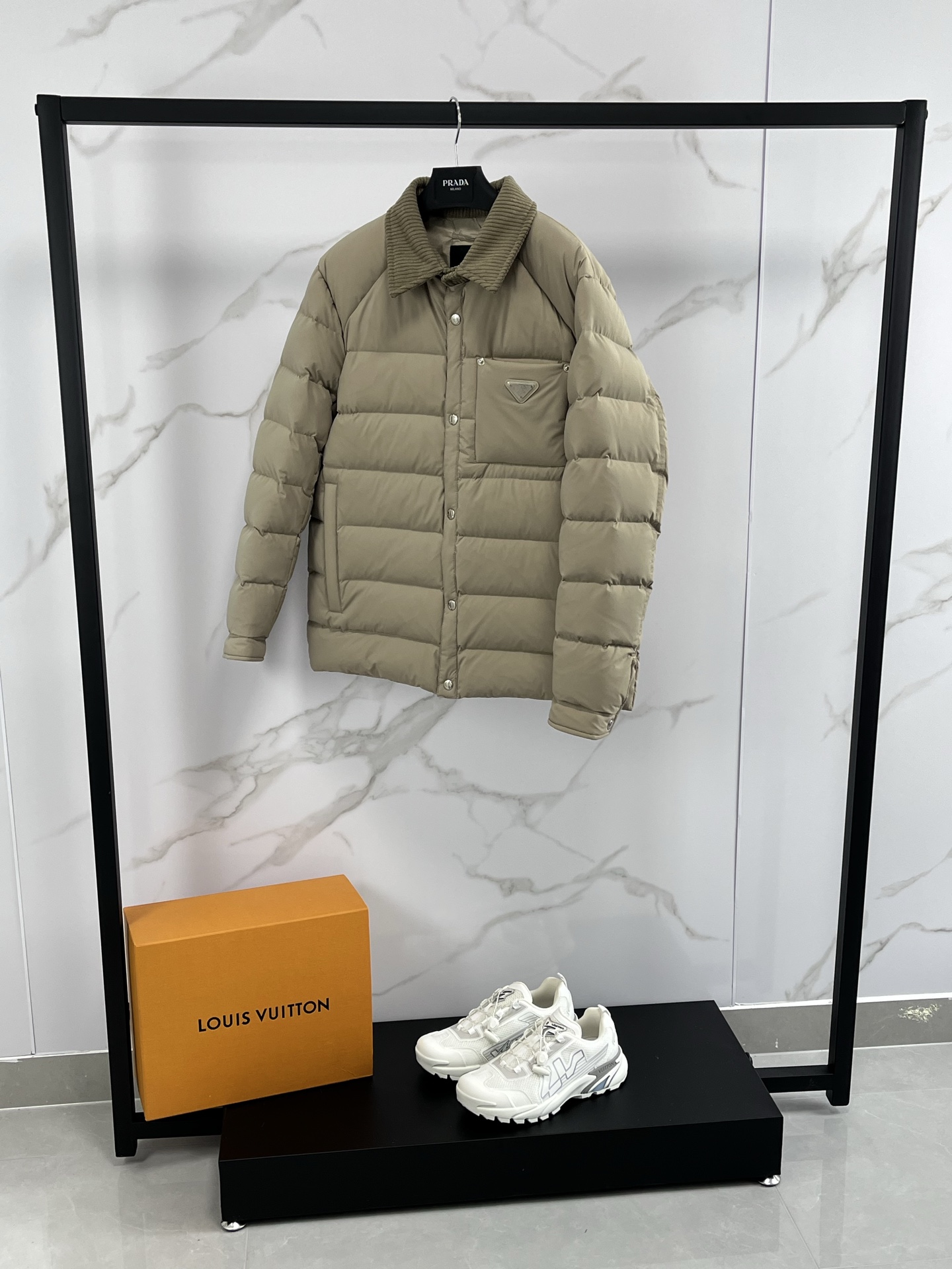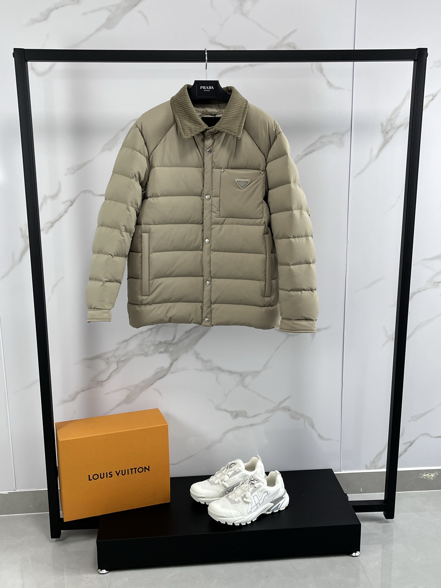 P530 高版本⬆️❤️🆕Prada Re-翻领时尚休闲工整加厚保暖外套男这款常规版的翻领设计简约大气羽绒下摆设宽松显瘦着装特色。衣身采用Prada标志性的创新Re-Nylon再生尼龙打造。此面料通过海洋塑料回收物制成,可无限再生利用。Prada系列别具一格的缝合标签令品牌特色一览无余。胸前配有经典特别的三角标志 为确保产品的可持续护理,保持其特性并减少其对环境的影响,此款简约风非常哇塞!特别拉风保暖的一款商务休闲羽绒服~ Size : M-3XL 颜色:黑色咖色