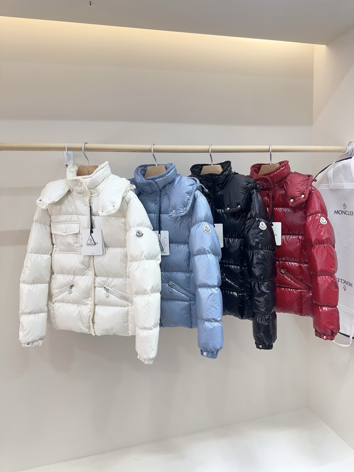 P520 MONCLE* 最新款女士编织饰边连帽羽绒服 官网在售‼️ Glareins女士短款羽绒夹克以编织饰边突显收腰廓形 轻松展现柔美气质 Glareins优雅演绎经典羽绒夹克 ✔️饰有精美编织饰边 此短款羽绒服采用尼龙面料制成 具有华美的光泽效果 👏🏻收腰设计 经典造型 白天到夜晚皆可应对自如 采用尼龙面料制成 Longue saison衬里 编织饰边⚠️填充90鹅绒羽绒 可调节兜帽 拉链和按扣开合 拉链口袋 胸部口袋设有按扣 可调节袖口 码数:0.1.2.3 颜色:白色.蓝色.黑色.红色
