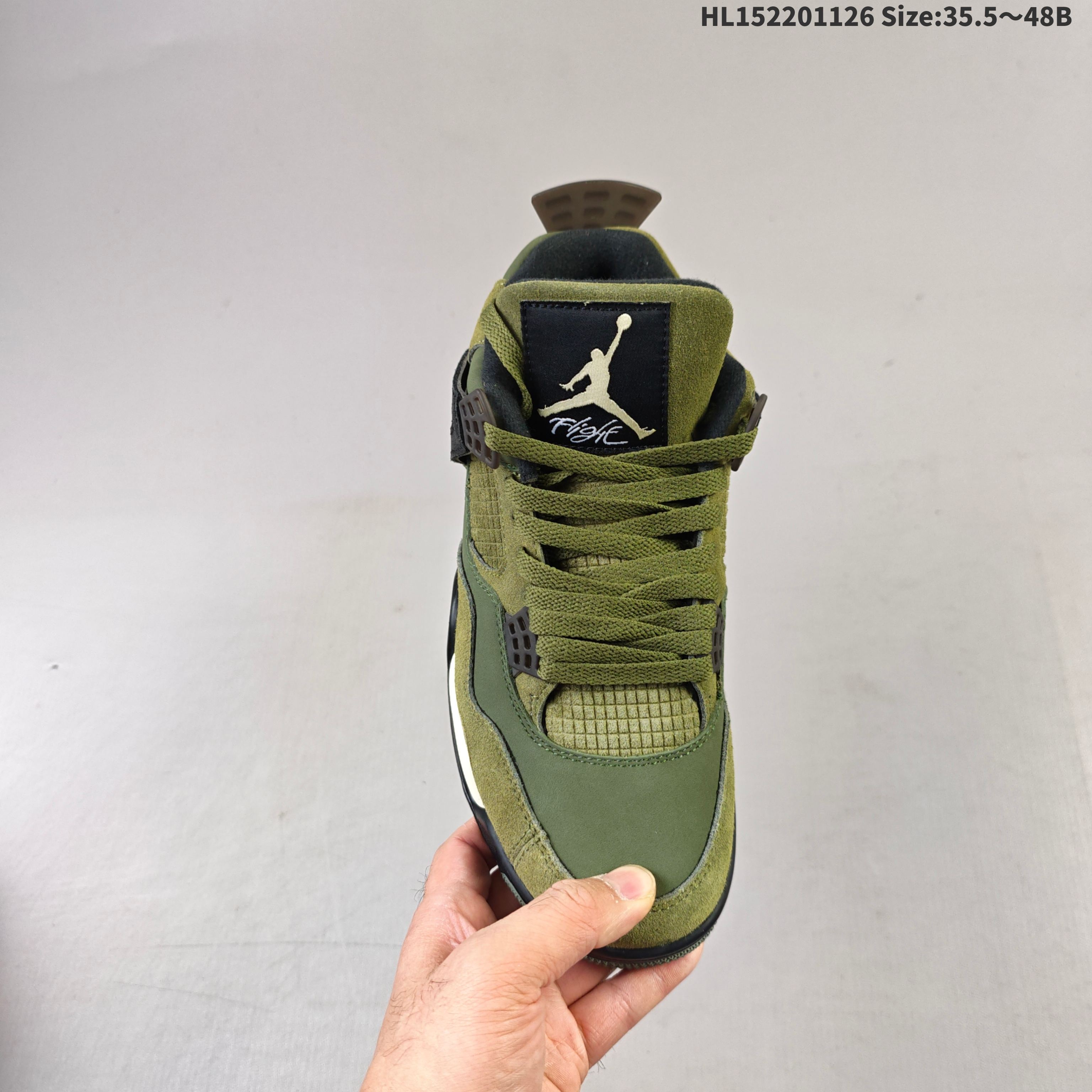 💰220 PK Air Jordan AJ4 Retro "Olive Canvas" 军绿色 FB9927-200 AJ4 乔4耗时半年巨作 全套原纸板楦头开发 原厂特供皮料加持 确保原汁原味 完美呈现四代版型 一比一鞋头弧度高度鞋身弧度 数据细节工艺流程均保持原鞋一致 原厂TPU网格鞋带扣 正确内里网布 菱角分明不变形无多余毛边 柔软性质感一致于原鞋 原厂织唛标 原厂飞人电绣工艺 尾指中部跳三针 独家绑鞋带手法 印刷中底布 四线拉帮 米色美纹纸贴合固定 进口港宝加持 后跟自然饱满 全鞋荧光划线卡点 追求极致完美 每一双都是工艺品 多重QC质检 超越公司货的品控标准 实实在在的免检产品 尺码:35.5 36 36.5 37.5 38 38.5 39 40 40.5 41 42 42.5 43 44 44.5 45 46 47.5 48HL152201126 Size:35.5~48B