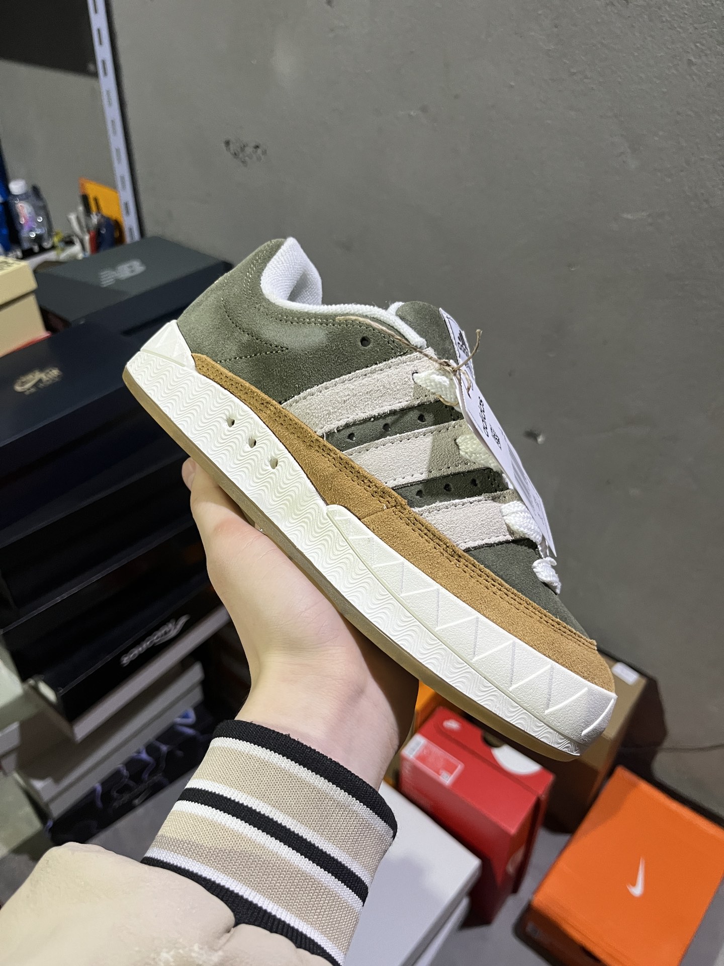 #实拍鉴赏 #仓库随手拍上新 #C版纯原 💰110 HUMAN MADE x adidas originals Adimatic 复古鲨鱼面包 翻毛皮皮革绒面革 舒适 防滑减震 低帮 板鞋 男女同款 绿棕 货号:HP9914 尺码:36-45
