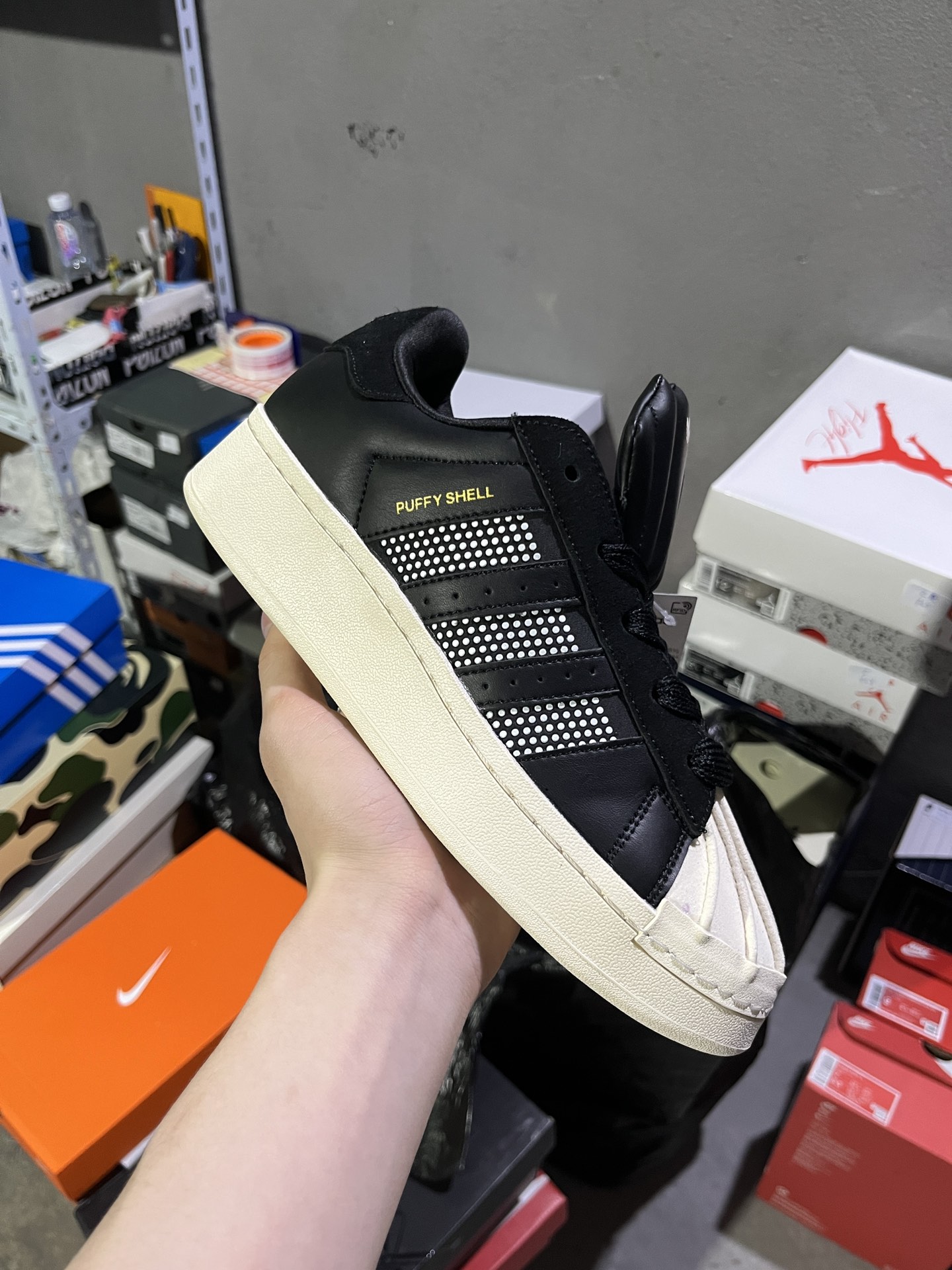 #实拍鉴赏 #仓库随手拍上新 #D版纯原 💰130 GALI x adidas originals SUPERSTAR PUFFY SHELL 贝壳头 时尚舒适 低帮 板鞋 男女同款 黑色 货号:KJ6976 尺码:35-45