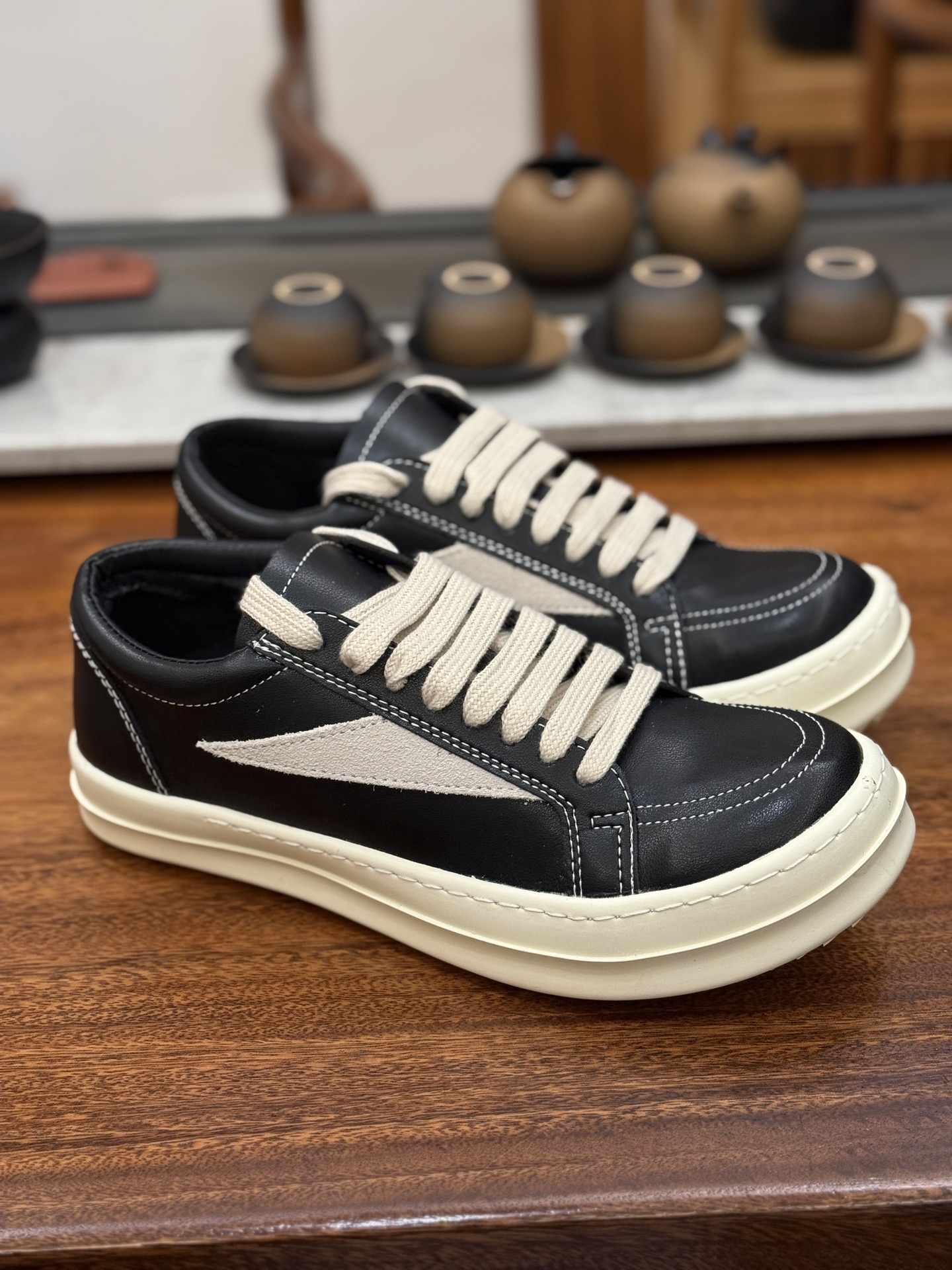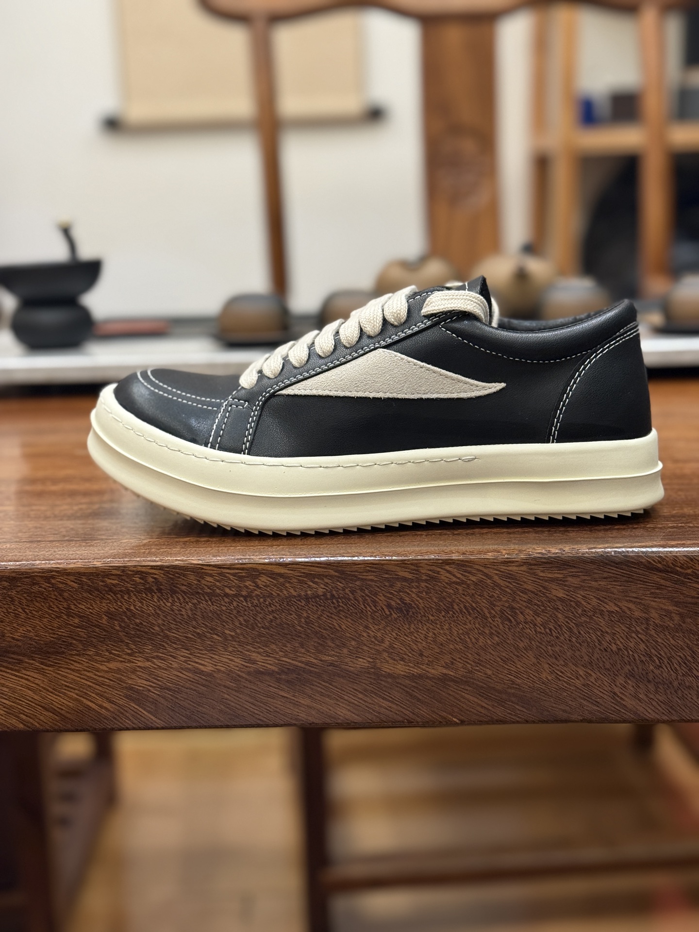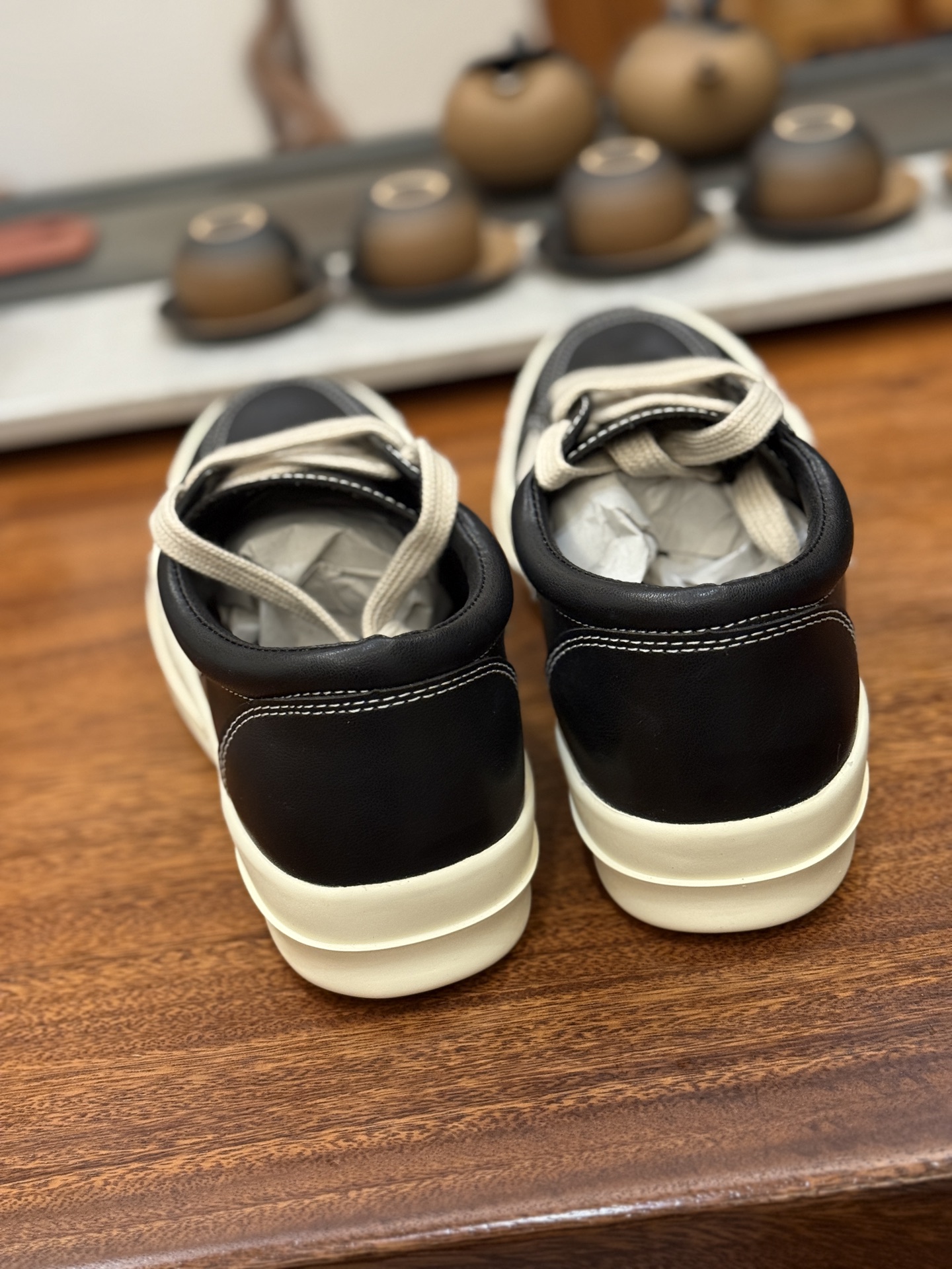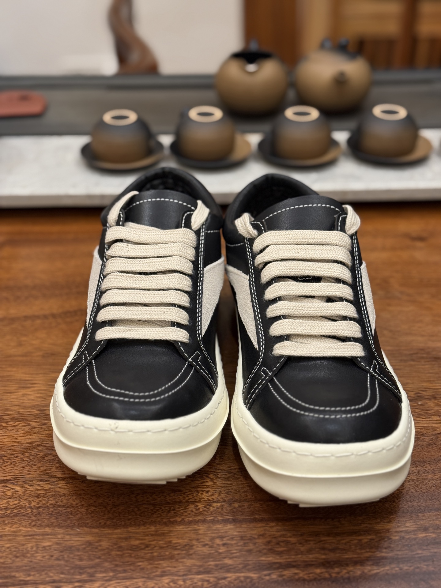 RO 板鞋 皮面 黑白 尺码 35 36 37 38 39 40 41 42 43 44 45 46 Rick Owens DRKSHDW 圆头系带低帮板鞋-演绎先锋暗黑美学,重塑经典板鞋轮廓。 这双来自 Rick Owens 副线 DRKSHDW的男款板鞋,是暗黑先锋风格与街头实用主义的精妙融合。标志性的 黑色 调贯穿始终,奠定永不过时的暗黑基调,是品牌美学最纯粹的诠释。 其颠覆性的 圆头设计,打破了传统板鞋的固有印象,呈现出Rick Owens 特有的未来复古感与雕塑般的廓形语言。低帮 剪裁赋予脚踝自由,同时保持利落线条。经典的系带系统不仅确保稳固贴合,更增添一份精致的手工感。 作为 DRKSHDW 的产品,它延续了主线Rick Owens的先锋精神与高品质工艺,同时更强调日常穿着的舒适性与街头适应性。无论是搭配标志性的层叠剪裁,还是融入简约的都市造型,这双黑色圆头板鞋都是塑造不羁态度与低调锋芒的永不过时的武器。