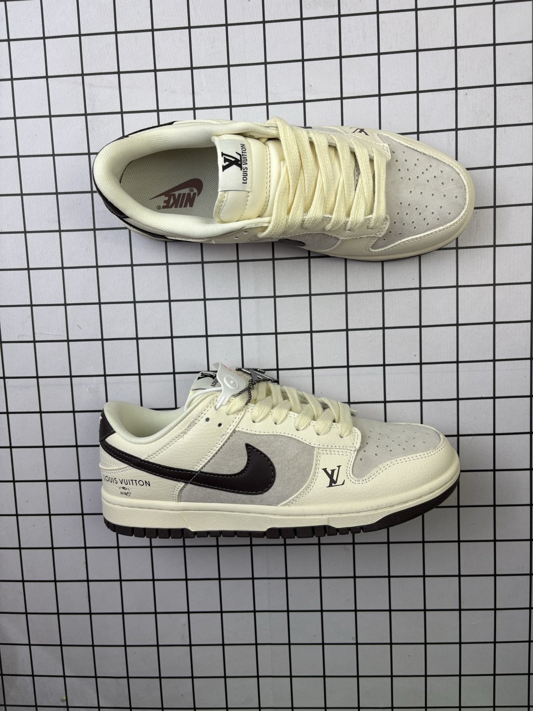 💰120 Nike/耐克 男女鞋真标半码制,全新2021版更新数据窄楦翘头版型,采用软质荔枝纹牛剖革鞋面材质,大厂水平严控清洁度,缜密拉帮中底布,鞋垫嵌EVA缓震物料及背胶,全新窄版翘头耐磨橡胶大底❗️创意定制配色,联乘法国顶级高奢品牌·路易威登Louis Vuitton x Nike SB Dunk Low"Beige/Gloomy Bear/LV Monogram"扣篮系列低帮休闲运动滑板板鞋“皮革米白深灰暴力熊LV老花 FC1688-136 类型:男女鞋 码数:36 36.5 37.5 38 38.5 39 40 40.5 41 42 42.5 43 44 45 编码770