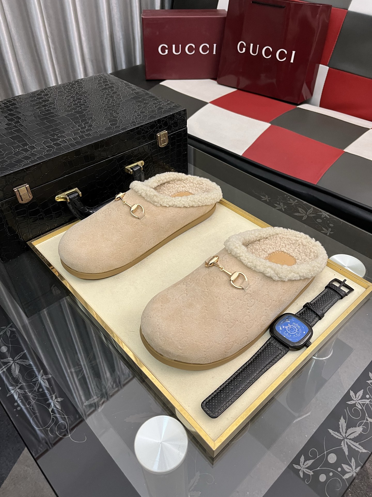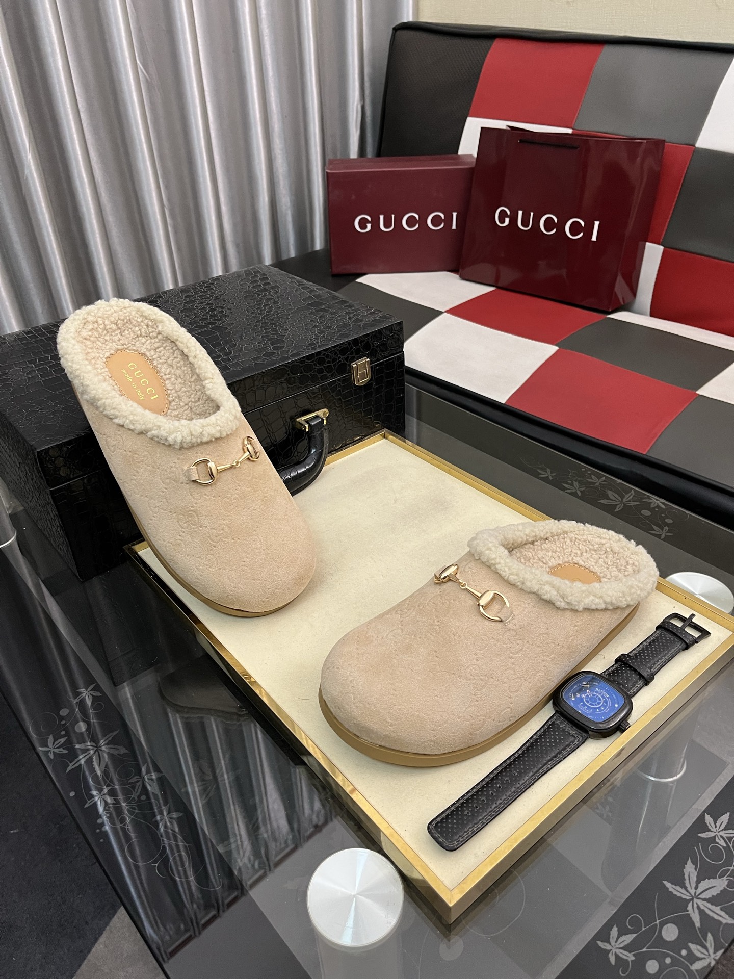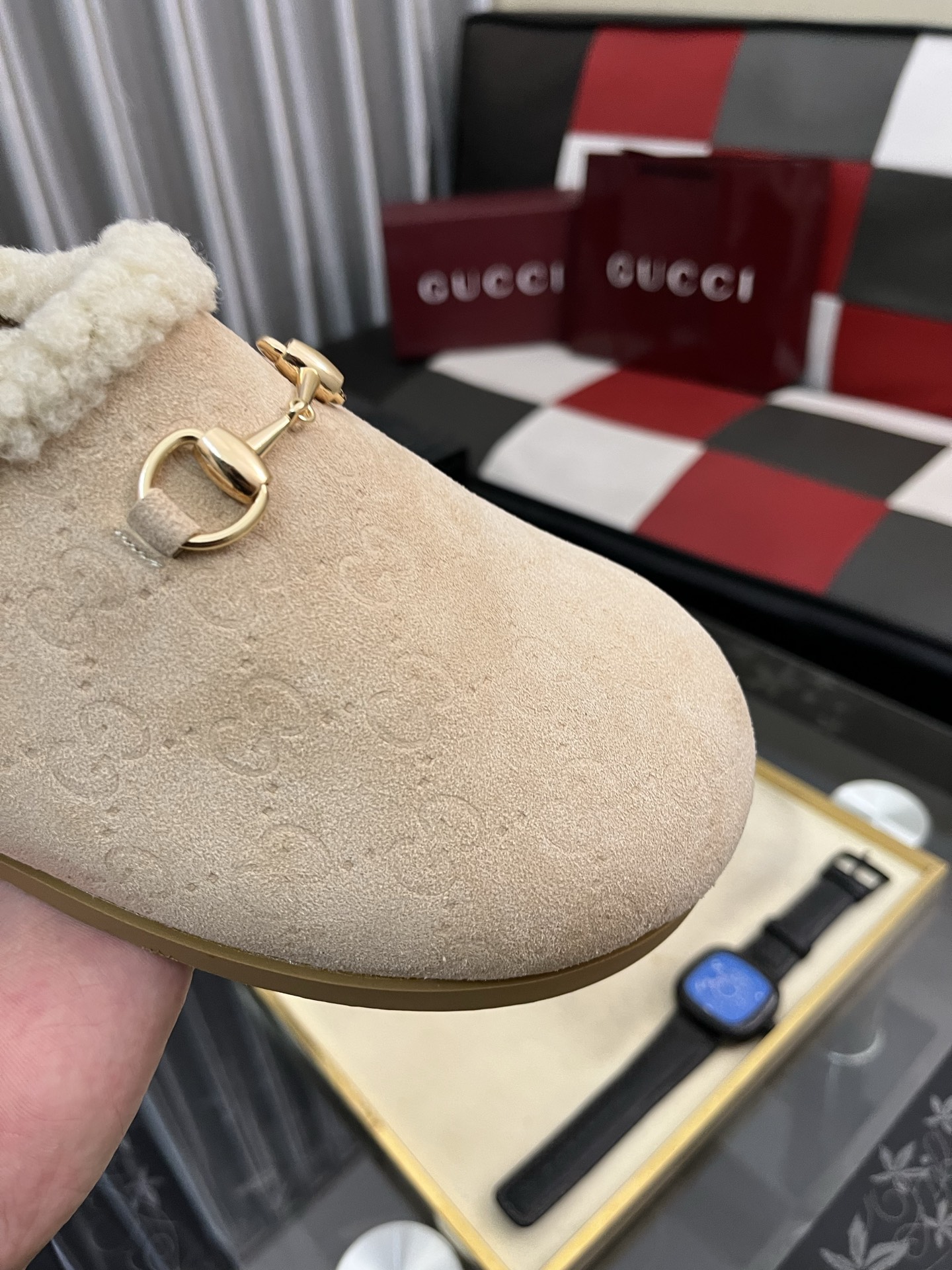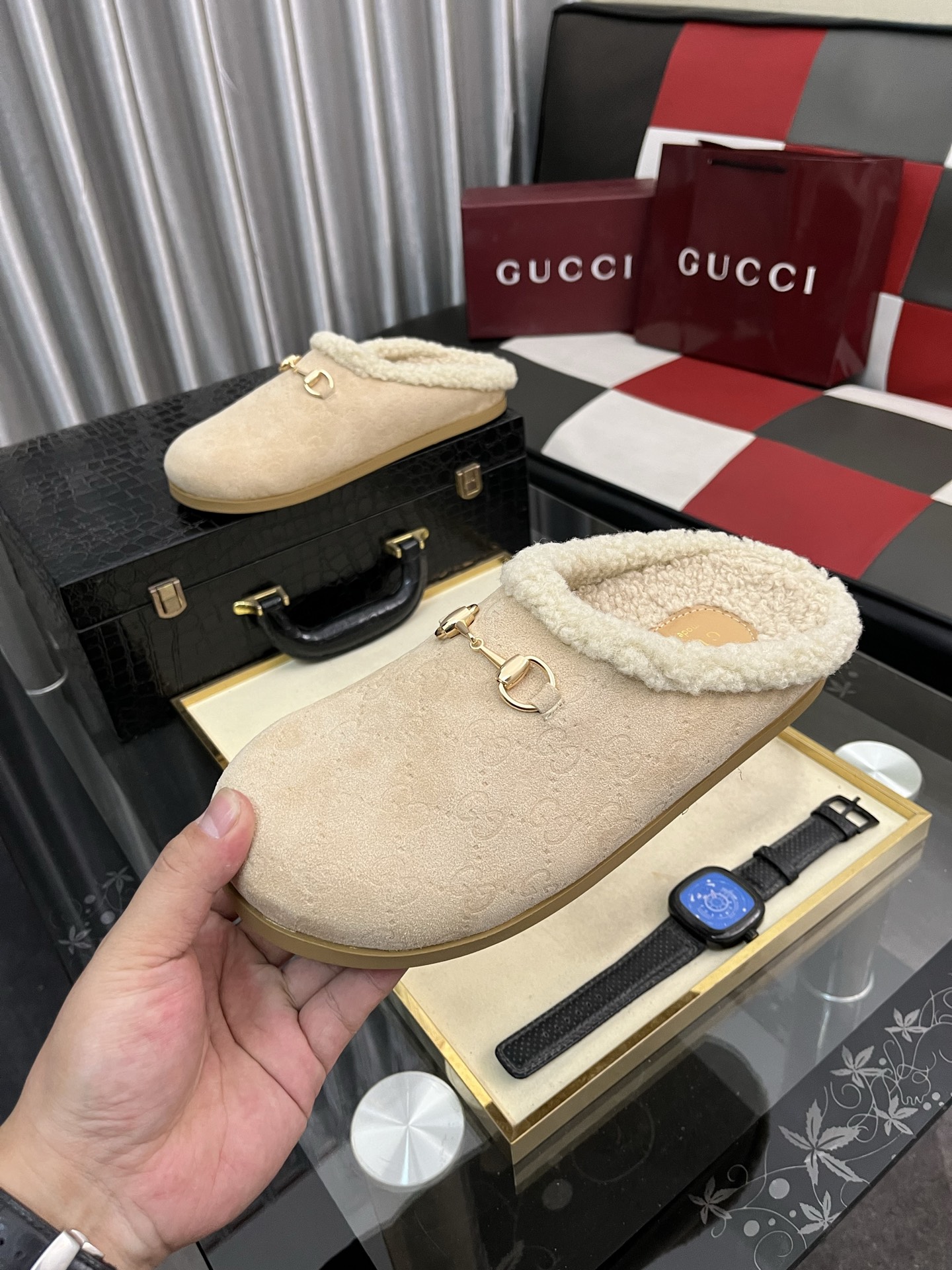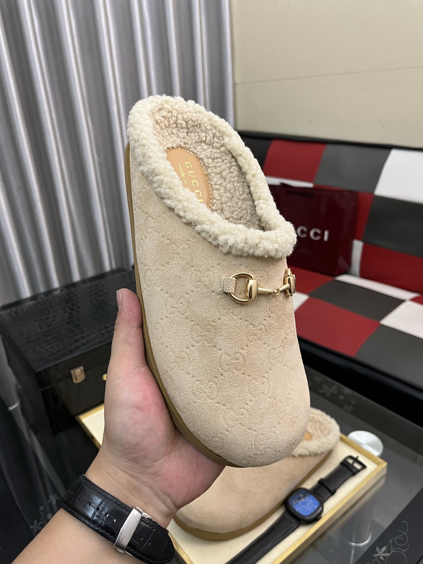 出厂价:280⌚️⌚️古奇毛绒拖鞋 GUCCI . 古奇 女士真毛半拖 意大利顶级牛皮 进口顶级猾子 水染牛皮内里 原版古铜金马衔扣 意大利牛皮大底 Size:35−442️⃣色可选