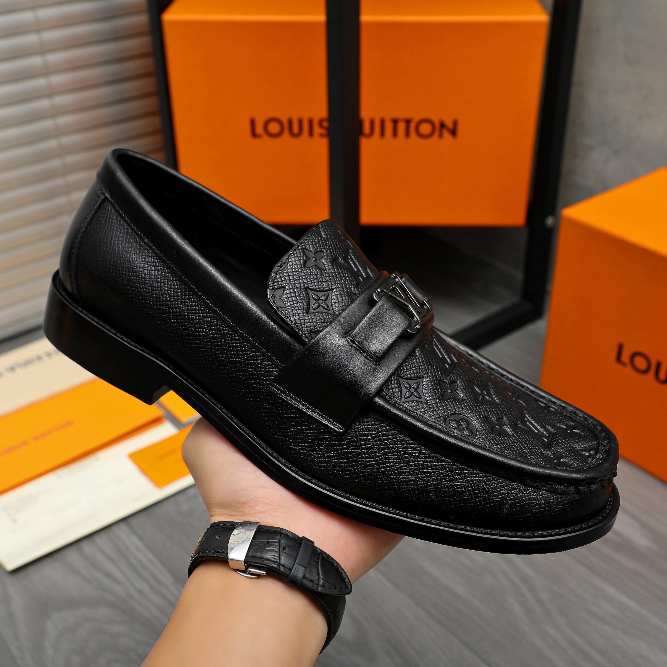 P350 商品商标:LV「 路易威登 」商务休闲套脚皮鞋 正码码数: 38-46(45.46定做不退换) 商品材料:精选竖纹牛皮压花鞋面 牛皮内里 原版橡胶大底