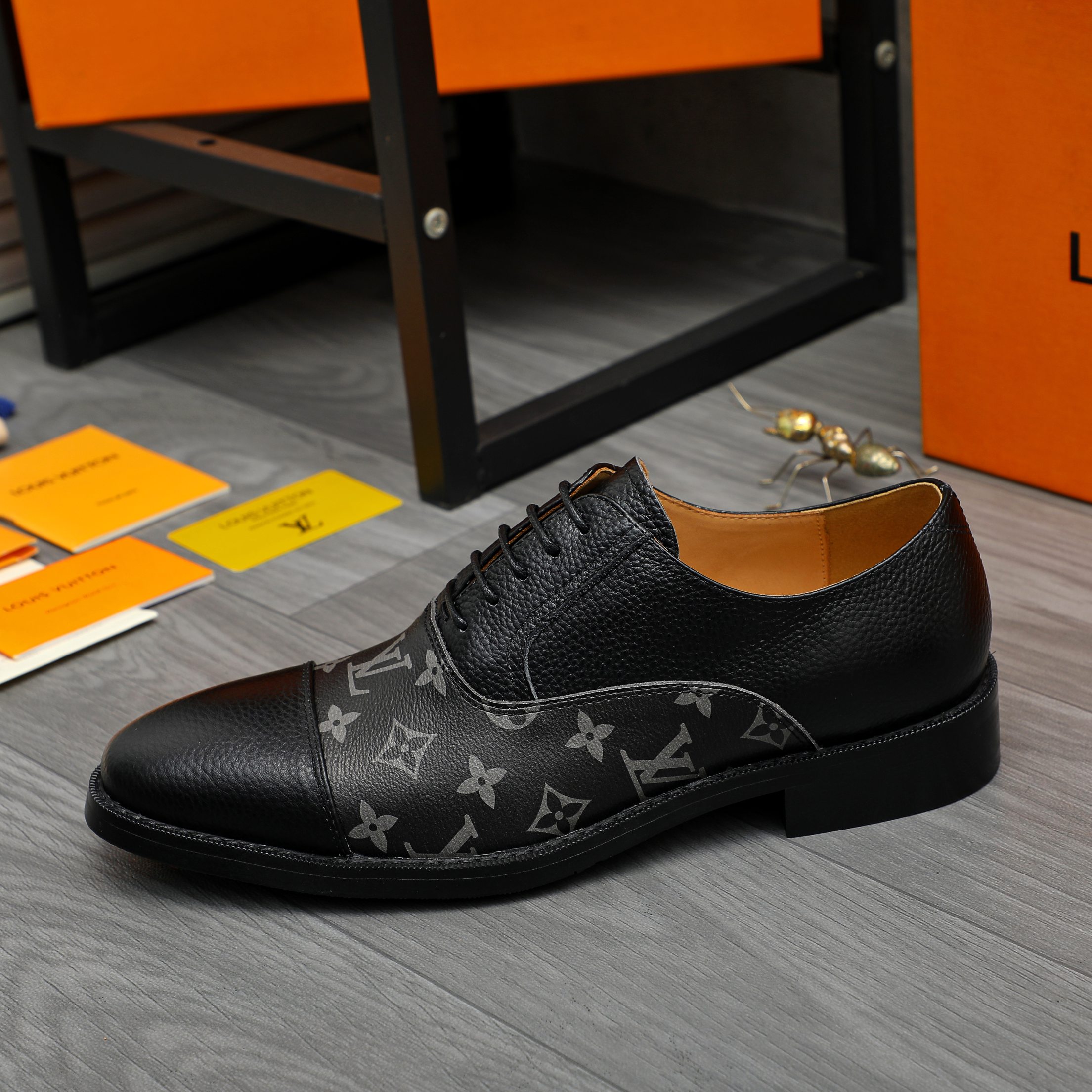 P330 商品商标:LV「 路易威登 」商务正装皮鞋 正码码数: 39-45 (.45定做不退换) 商品材料:精选荔纹牛皮拼接印花鞋面 牛皮内里 原版橡胶大底