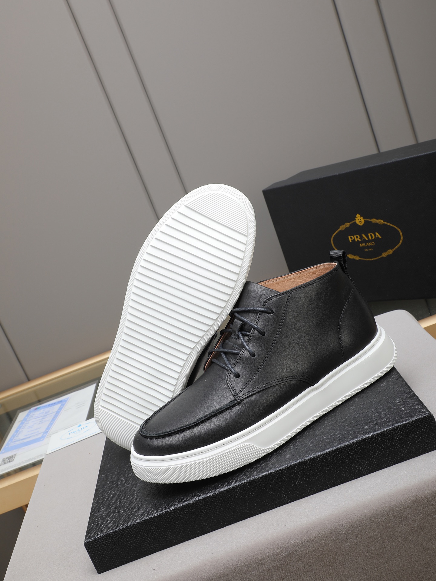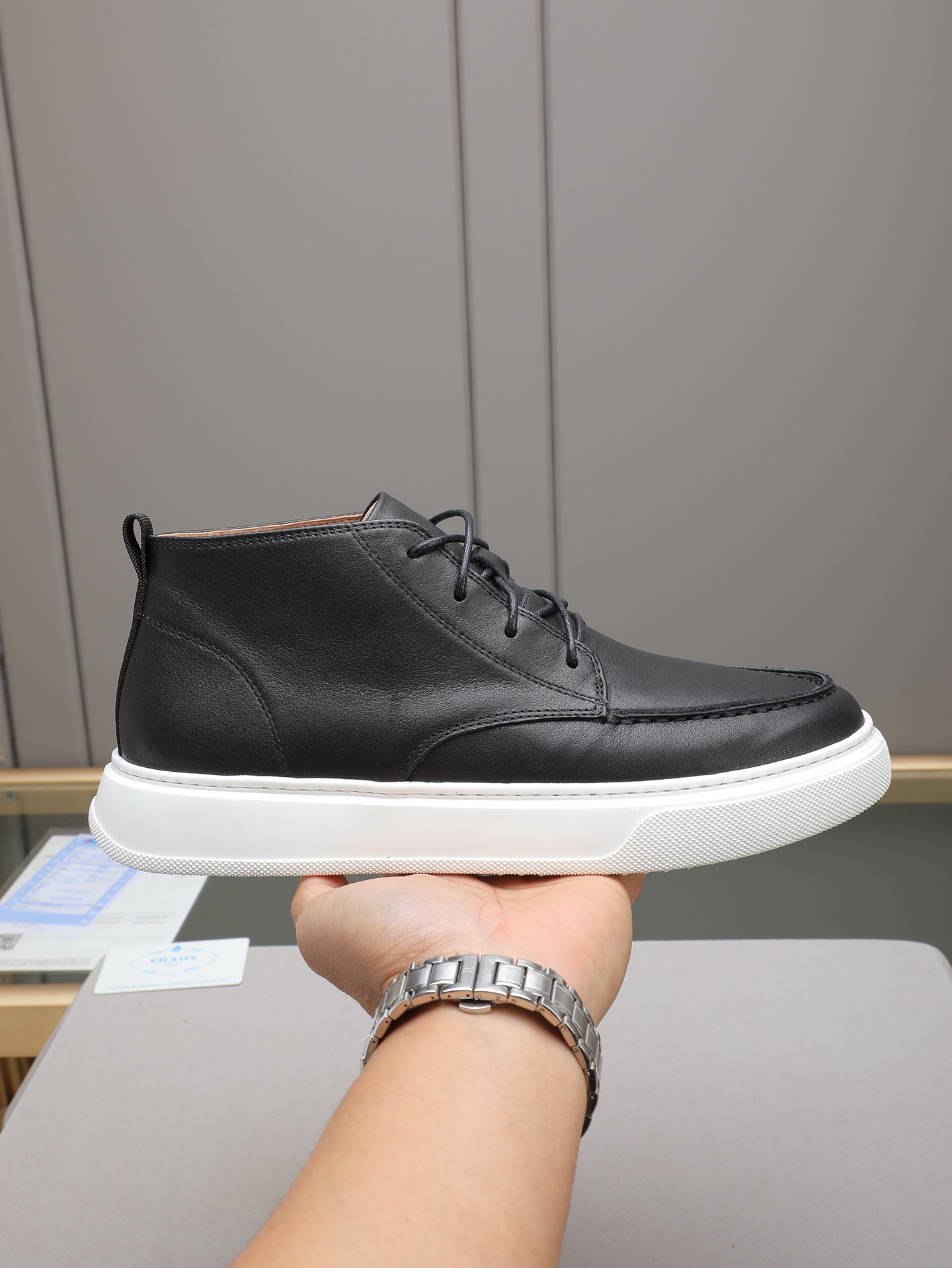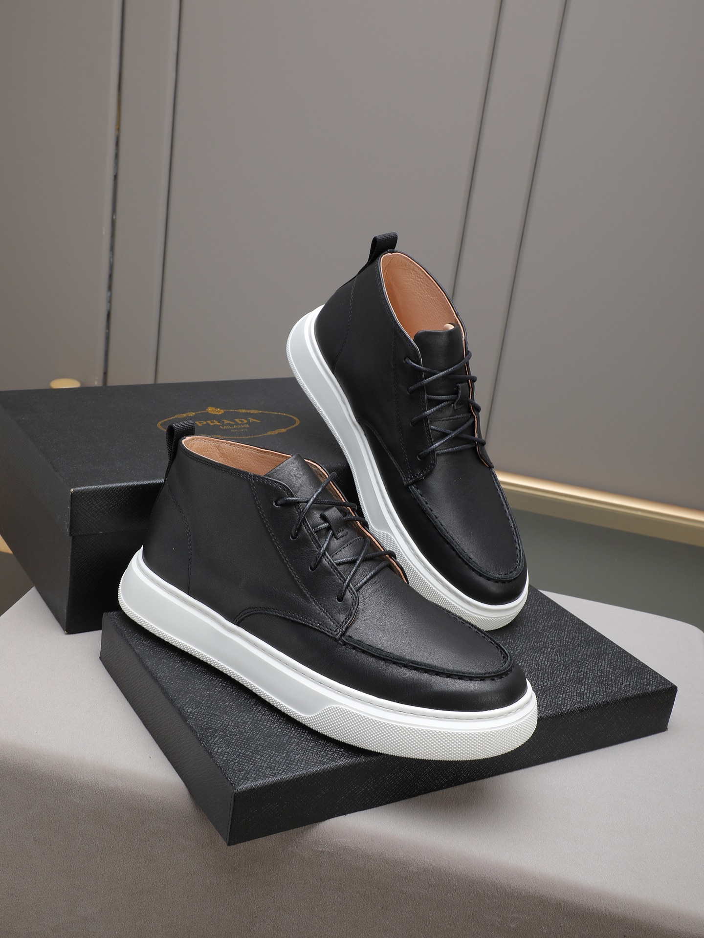 PP340 【普拉达高帮毛里,皮里】🔥高帮靴子鞋,优质做工,鞋面采用进口牛皮 皮里 鞋宣完美。做工复杂,舒适透气皮里,保暖绒里,TPU超轻橡胶大底 ,高端休闲时尚,码数:38-44(45定做)多色选择。