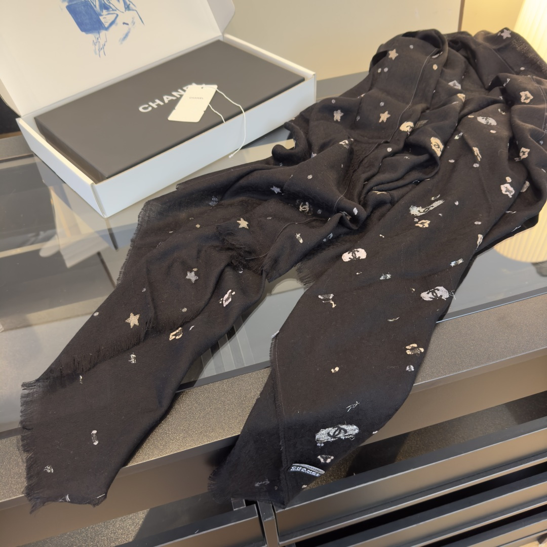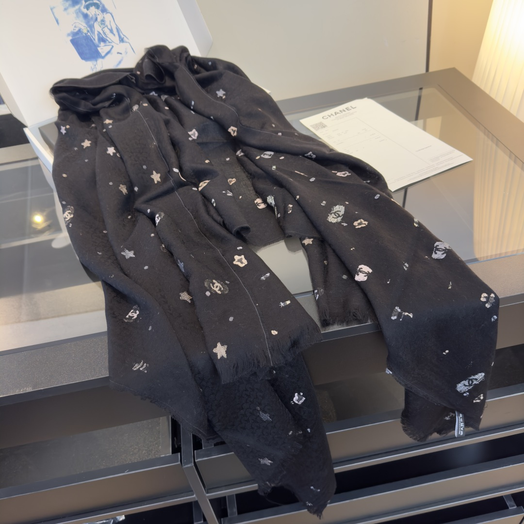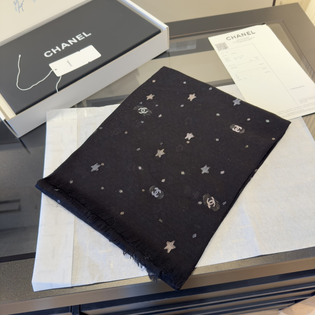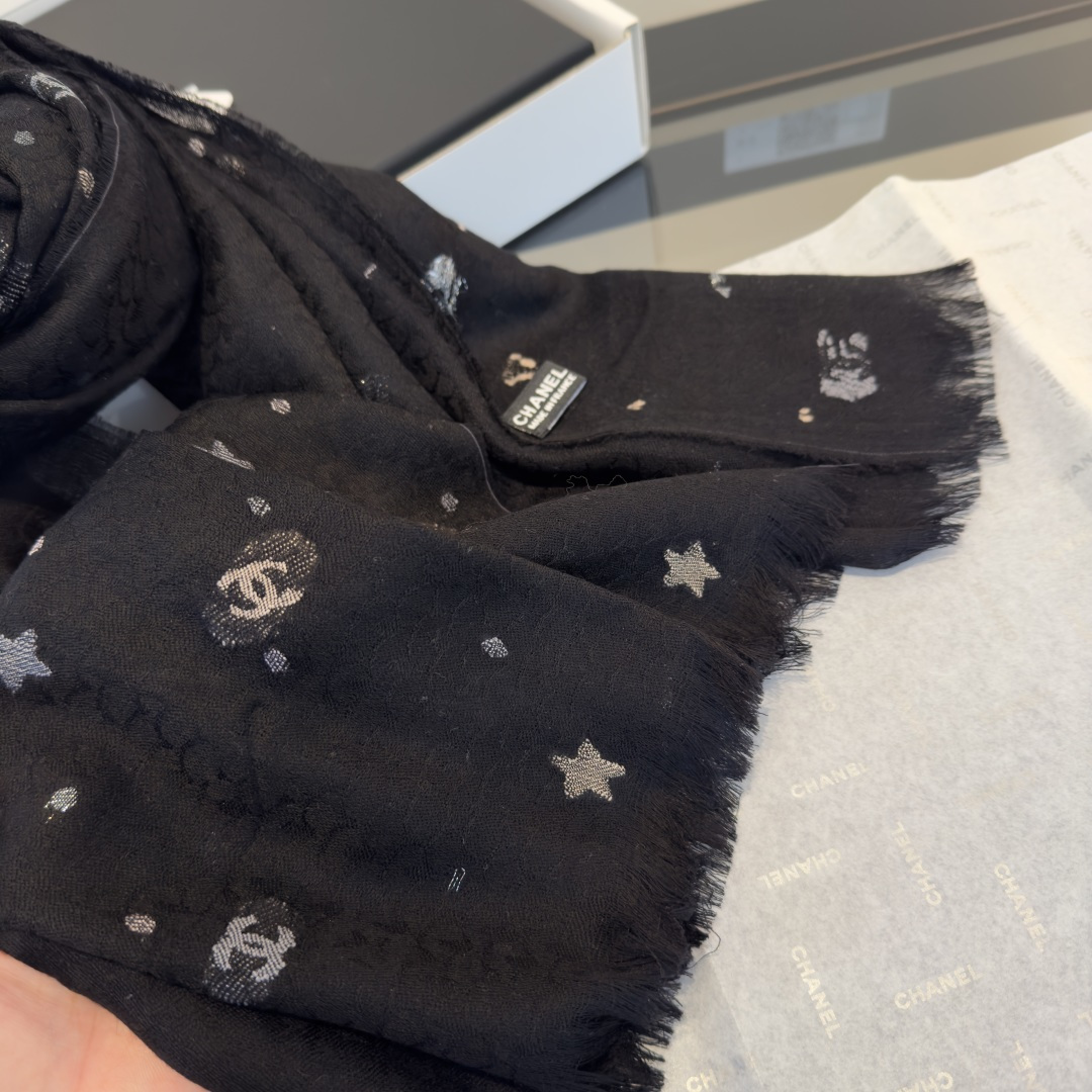💰195¥ Chanel条香奈儿围巾啦 是米白色的底色温柔又百搭 上面点缀着星星✨和经典的双C标志图案 精致感满满的[喝奶茶R][喝奶茶R] 材质是那种柔软的羊毛混纺 亲肤保暖 围起来很舒服 还可以给穿搭增添高级感 围巾还是🆕的 [赞R] 日常戴很nice的 特别是平常出门去冷一点的地方都很好看的[微笑R][微笑R]