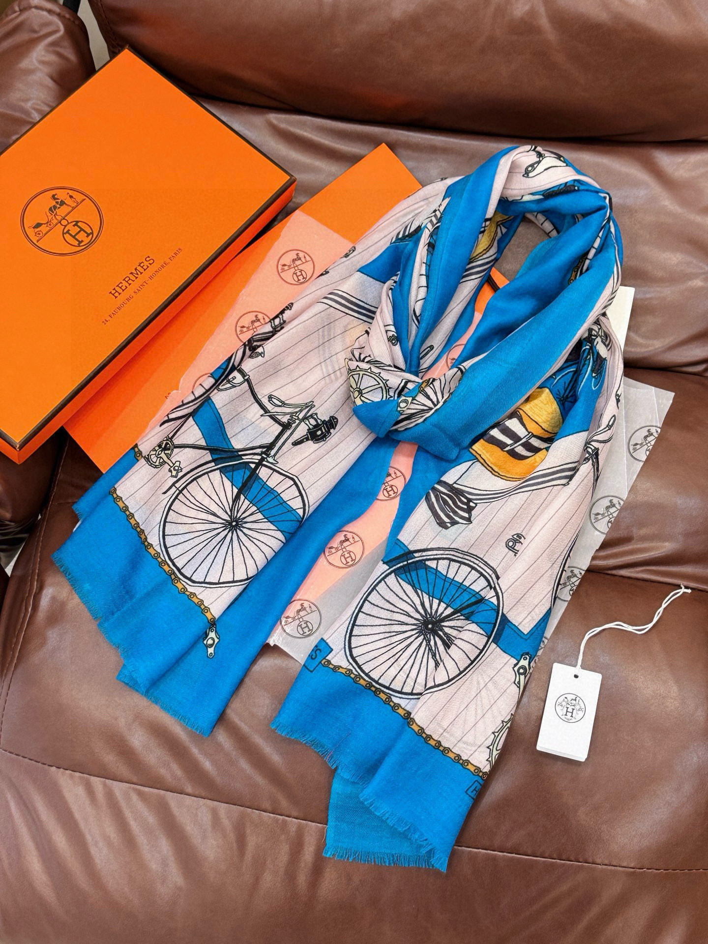 P195 羊绒新款 🆕🆕🌈💫速度‼️下手一定要快‼️H家新款【自行车长巾】,高端 大爱 货极少 现在用极好‼️真心美的让人非常非常心动 上身效果简直美翻了 品质非常完美👍‼️ 】整个围巾给人大牌气场的同时又非常精致秀丽💟绝对值得入手的新款💟‼️ 实物一拿到就会庆幸自己是女人的绝美好货😂 值得品鉴‼️完美气质品味Ditails首选👍🌟尺寸:110*200cm 100%顶极羊绒👑