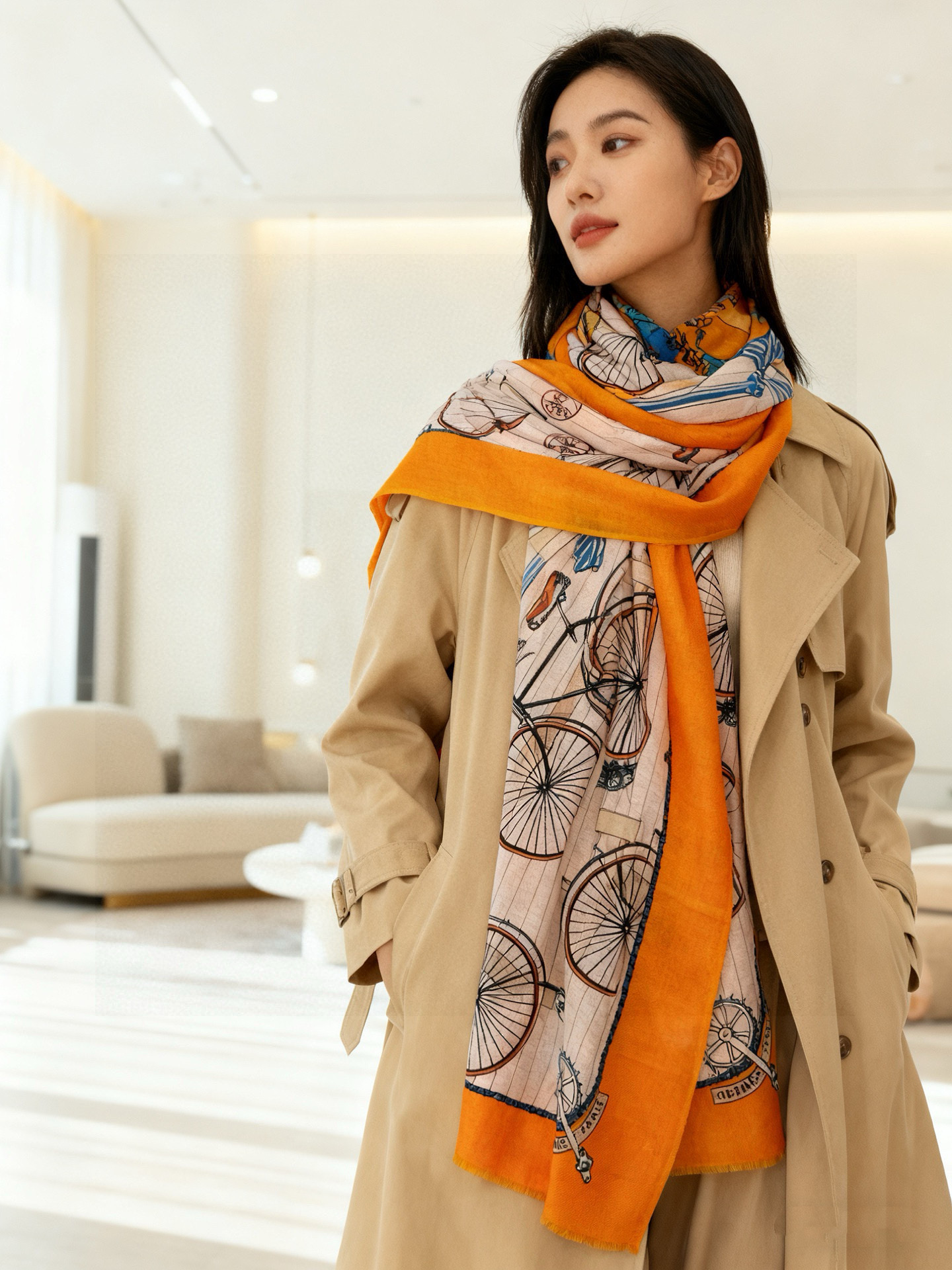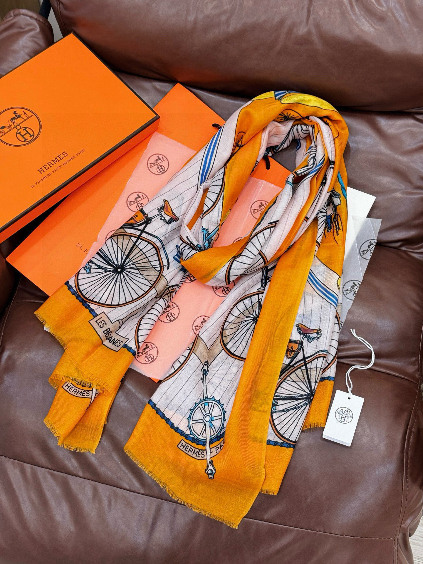 P195 羊绒新款 🆕🆕🌈💫速度‼️下手一定要快‼️H家新款【自行车长巾】,高端 大爱 货极少 现在用极好‼️真心美的让人非常非常心动 上身效果简直美翻了 品质非常完美👍‼️ 】整个围巾给人大牌气场的同时又非常精致秀丽💟绝对值得入手的新款💟‼️ 实物一拿到就会庆幸自己是女人的绝美好货😂 值得品鉴‼️完美气质品味Ditails首选👍🌟尺寸:110*200cm 100%顶极羊绒👑