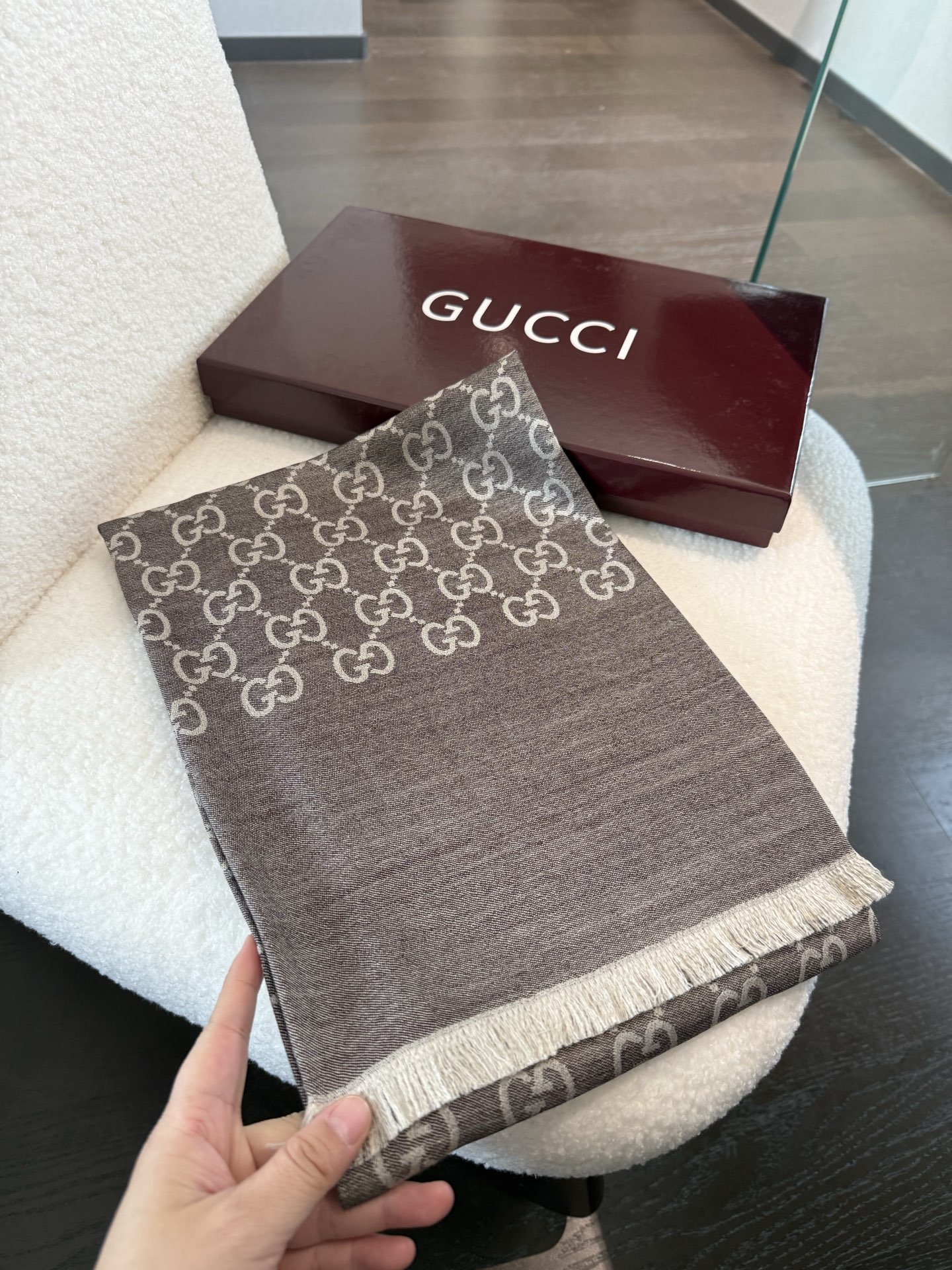 P170 P重磅‼️Gucci经典披肩款,大尺寸G专柜的常青树款。品质极好的,❗️经典双G提花图案风靡了全世界❗️女人的衣柜里面绝对不能少的一件单品,但是你千万别拿某宝廉价的货色来磕碜自己❗️既然选择这种经典披肩,你就一定选择有灵魂的东西❗️精工高密度字体无比清晰 面料为最顶级高原开司米尔羊毛真丝(和专柜一样) 手感柔软丝滑 奢华有质感!这款披肩将真丝与羊毛相混搭,质地柔软而温暖,经典而永不过时。❗️70x200cm!.