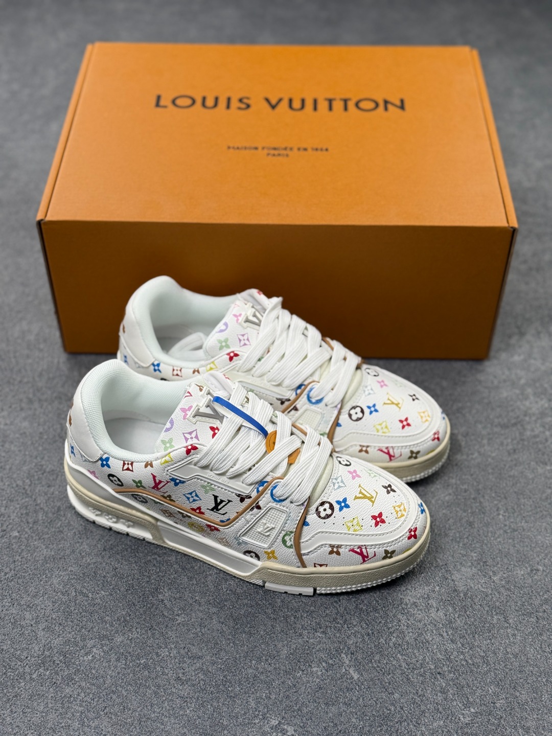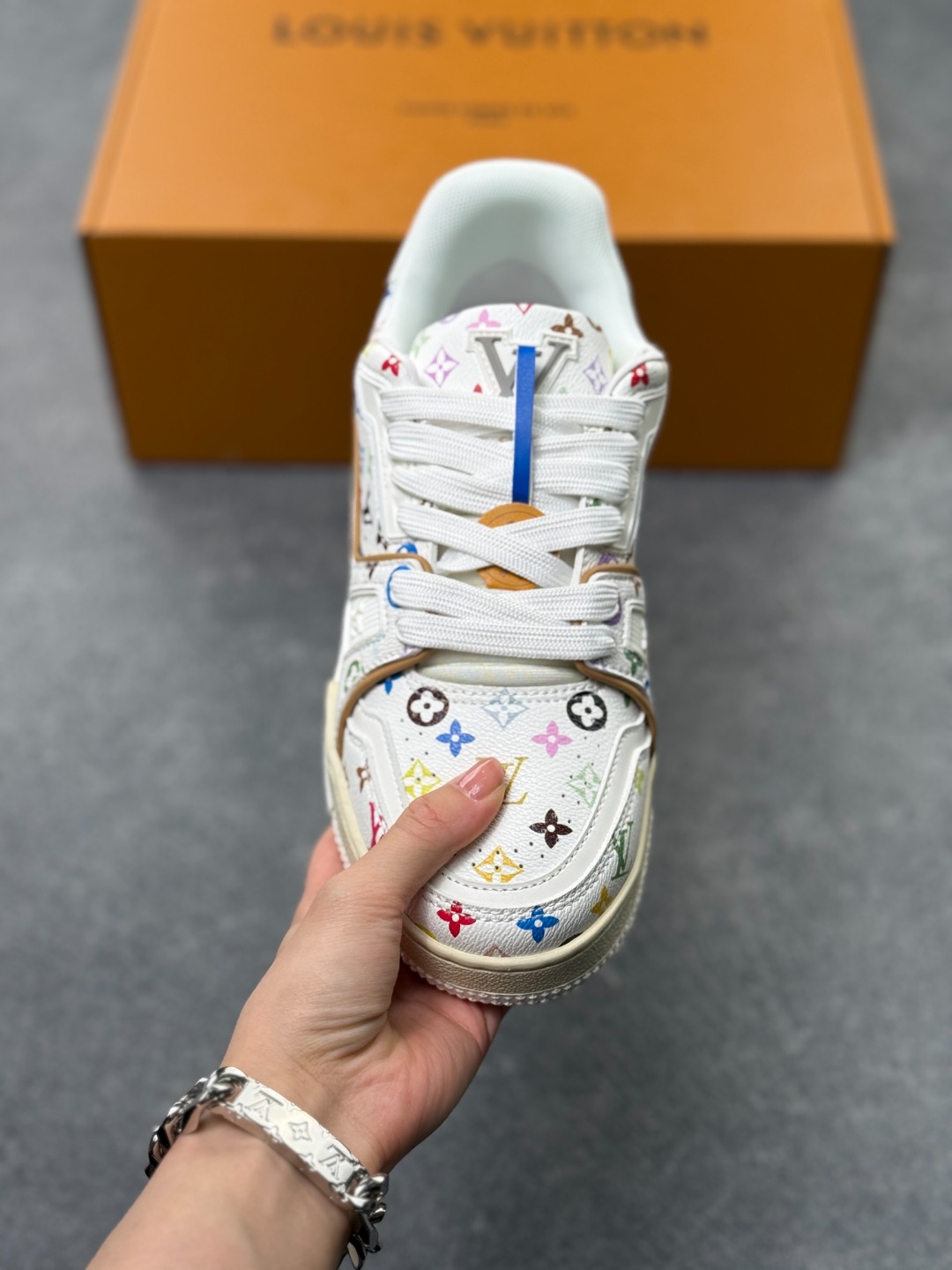 💰220 Louis Vuitton/路易威登~村上隆/白 广东原产高性价比,采用皮革鞋面材质,内里小羊皮打造及去味海玻璃脚垫,空胶工艺,外置耐磨橡胶大底全新LV路易威登Louis Vuitton Remarque Low经典低帮系带休闲运动百搭板鞋 类型:男鞋 尺码:36-46🈚半码