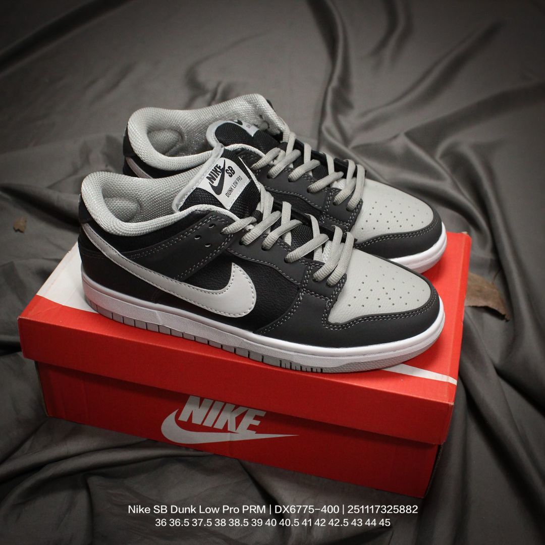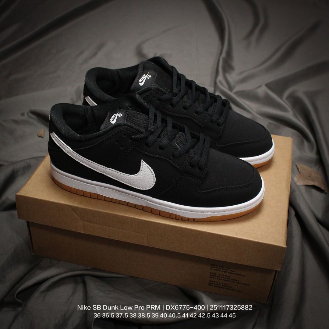 🈴💰120 Nike/耐克 男女鞋真标半码制,升级原数据开发版型,采用翻毛皮组合厚实帆布鞋面材质,鞋垫嵌EVA缓震物料及Air Zoom真气垫,正确双层EVA发泡缓震中底组合RB橡胶外底❗️混搭材质,全新耐克Nike SB Dunk Low Pro PRM”Black“扣篮系列低帮休闲运动滑板板鞋“黑白钩子 DX6775-400 类型:男女鞋 码数:36 36.5 37.5 38 38.5 39 40 40.5 41 42 42.5 43 44 45