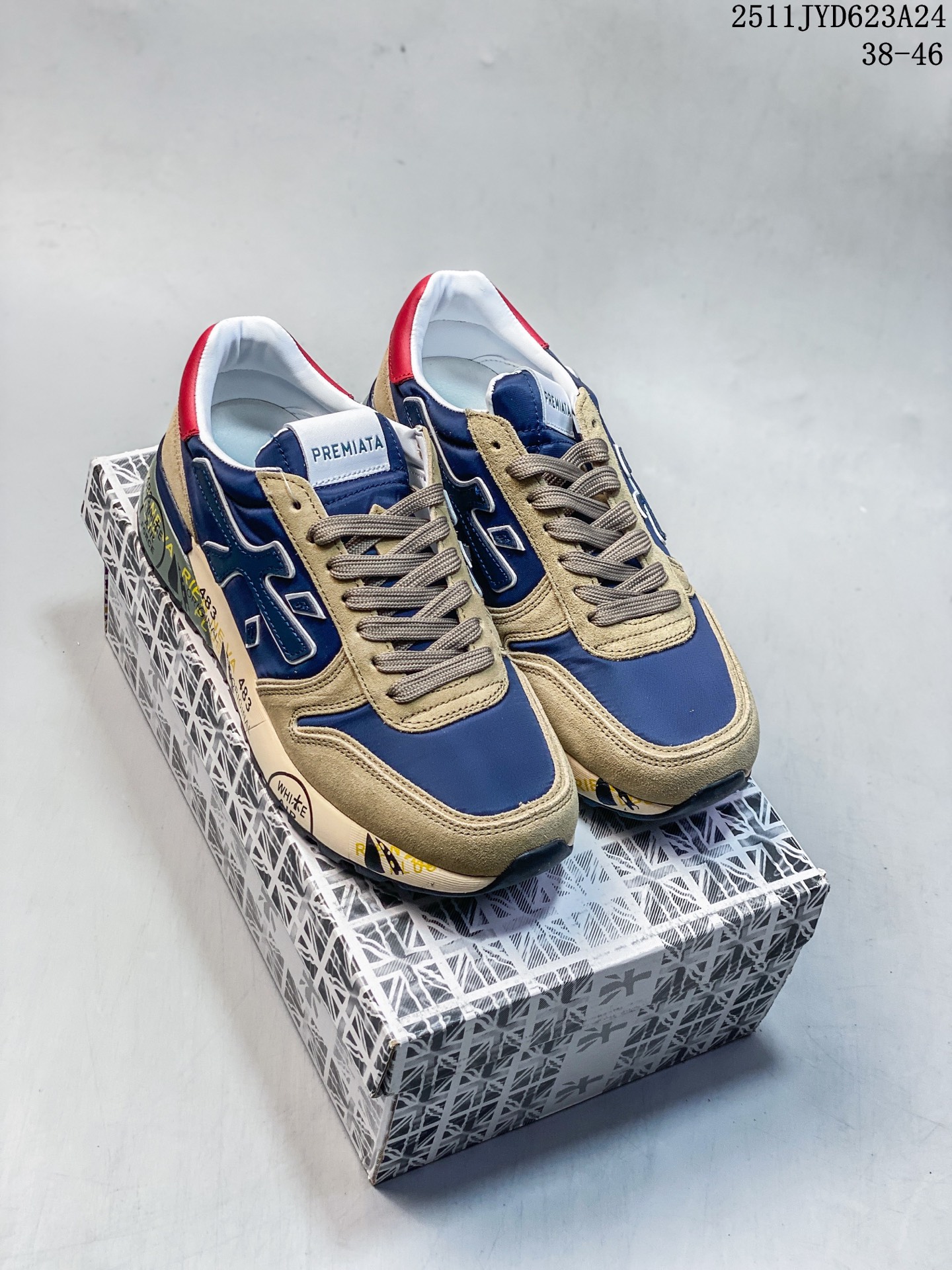 💰160 意大利鞋履品牌·普瑞米亚达 Premiata 低帮百搭休闲鞋 依据国际高标准制造 原单小白鞋 木字男鞋潮复古反绒皮运动休闲鞋木字鞋 鞋子简单大方 手感出众 舒适好穿又百搭 鞋子整体的外观颜值高 鞋面采用的是两种不同的材质面料拼接 鞋底侧边印了很多复古潮流印刷 是比较有个性特色的一款 鞋面材质是采用的牛反绒+牛津布+头层牛皮制作而成 鞋底材质是天然橡胶 大花纹设计防滑减震又耐磨 它的鞋垫都是头层猪皮 普瑞米亚达复古运动鞋真的又好看又好穿 很好搭配衣服 #A02CAR1120 38-46 11JYD623A24