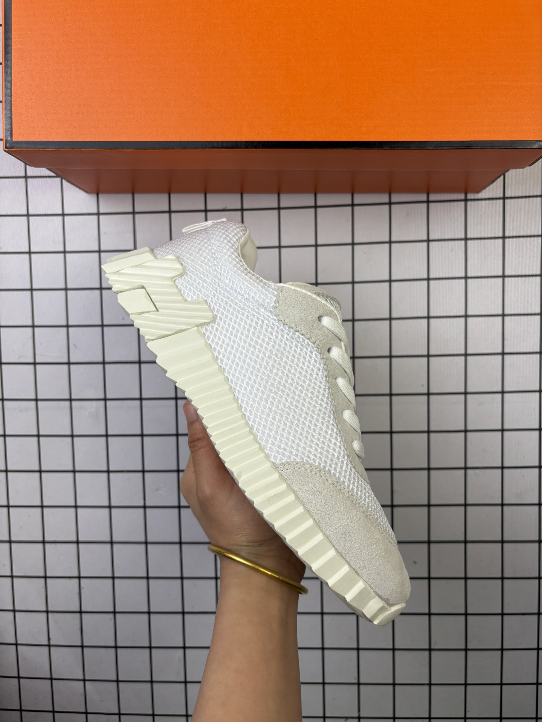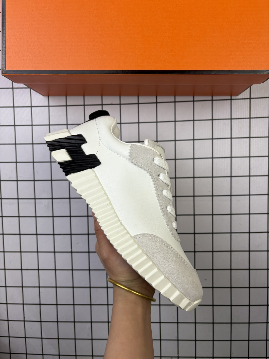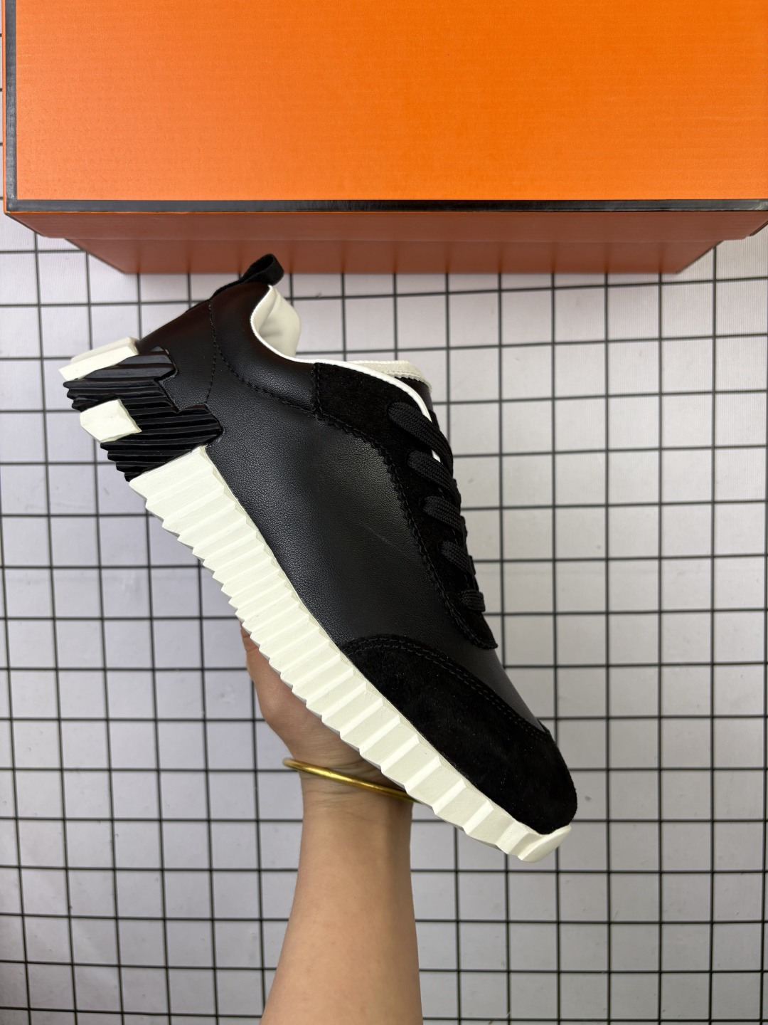 🈴💰130 男鞋原楦原装开发版型,配置包装说明书防尘布袋物件采用麂皮山羊皮革组合科技网织布鞋面材质,纤维革内底贴附发泡EVA缓震鞋垫,外置全新TPR耐磨耐弯折橡胶大底❗法国奢侈品品牌·爱马仕/Hermès Bouncing Low Sneaker 跳跃系列低帮轻便透气百搭休闲运动鞋“拼接黑白H 类型:男鞋 码数:40 41 42 43 44 45 46 编码:698