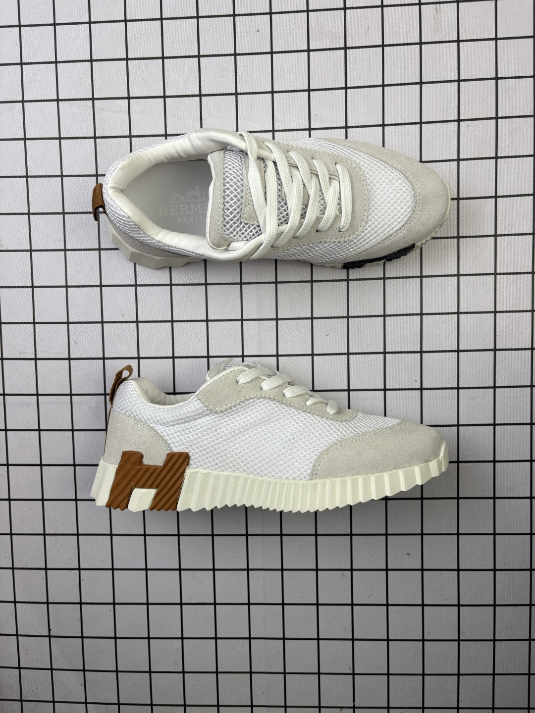 💰130 男鞋原楦原装开发版型,配置包装说明书防尘布袋物件采用麂皮山羊皮革组合科技网织布鞋面材质,纤维革内底贴附发泡EVA缓震鞋垫,外置全新TPR耐磨耐弯折橡胶大底❗法国奢侈品品牌·爱马仕/Hermès Bouncing Low Sneaker 跳跃系列低帮轻便透气百搭休闲运动鞋“拼接黑白H 类型:男鞋 码数:40 41 42 43 44 45 46 编码:698