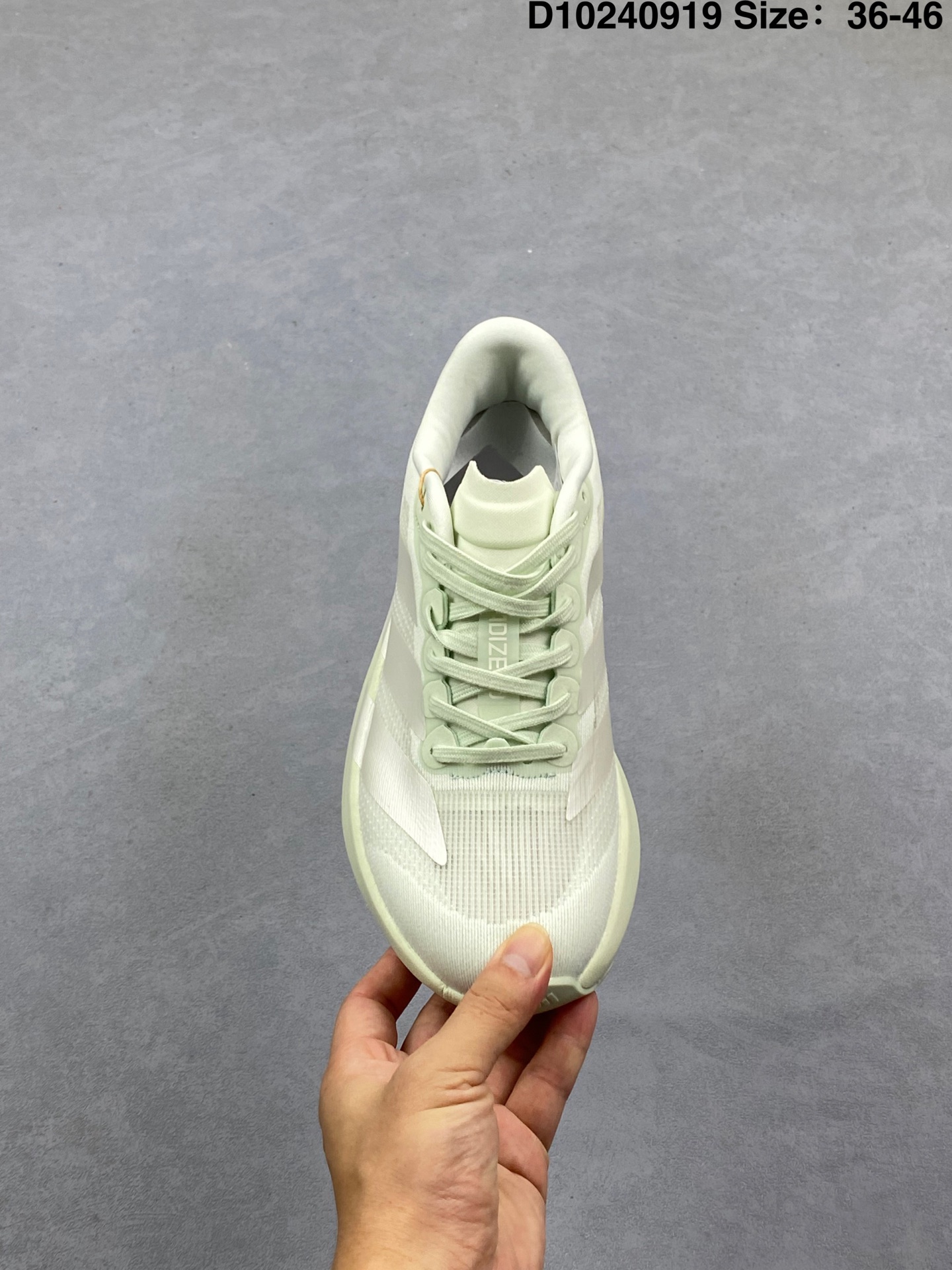 💰120 ✅AD Adizero EVO SL 马拉松竞速专业跑鞋 JQ4578 CELERMESH针织网面非常轻薄 纤维间的缝隙很大 可以保证跑步时的透气、排汗效果 鞋舌直接与两侧的内衬和鞋底连接在一起 在跑步过程中不会被鞋舌的左右移动所困扰 在标准鞋带孔的基础上再拓宽一组鞋带孔 适合不同脚型的需求 突破性 EnergyRods 技术,有助于跑者实现更好的成绩 中底独特的LIGHTSTRIKE PRO泡棉材质 微弹感觉在跑步过程中给予了良好的支撑体验 对于顶级精英和高水平进阶跑者来说 ADIOS PRO是一双值得信赖的竞速比赛用鞋 SIZE:36 36.5 37.5 38 38.5 39 40 40.5 41 42 42.5 43 44 44.5 45 编码:D10240919