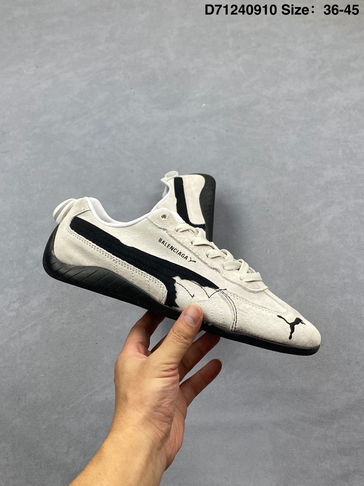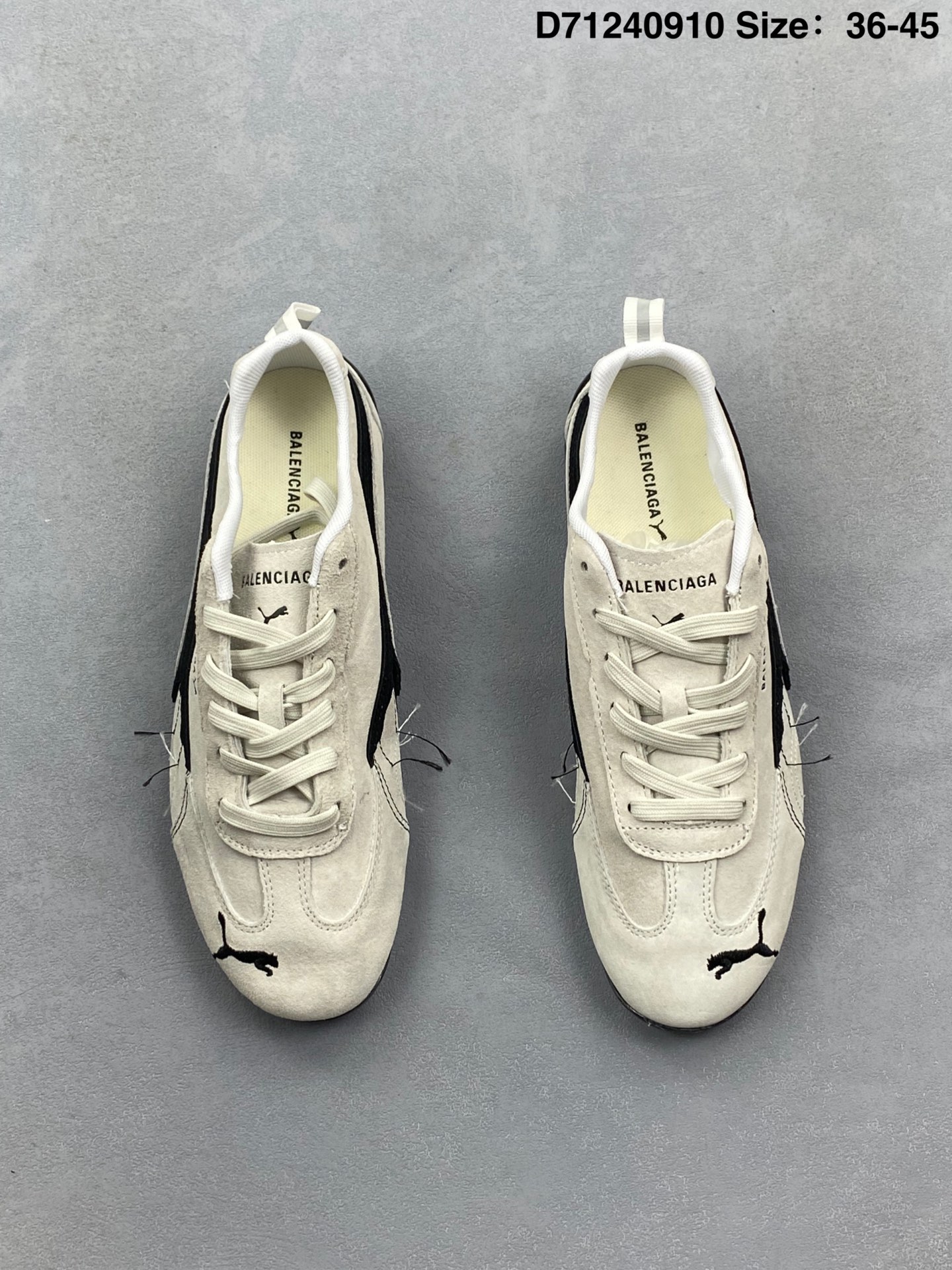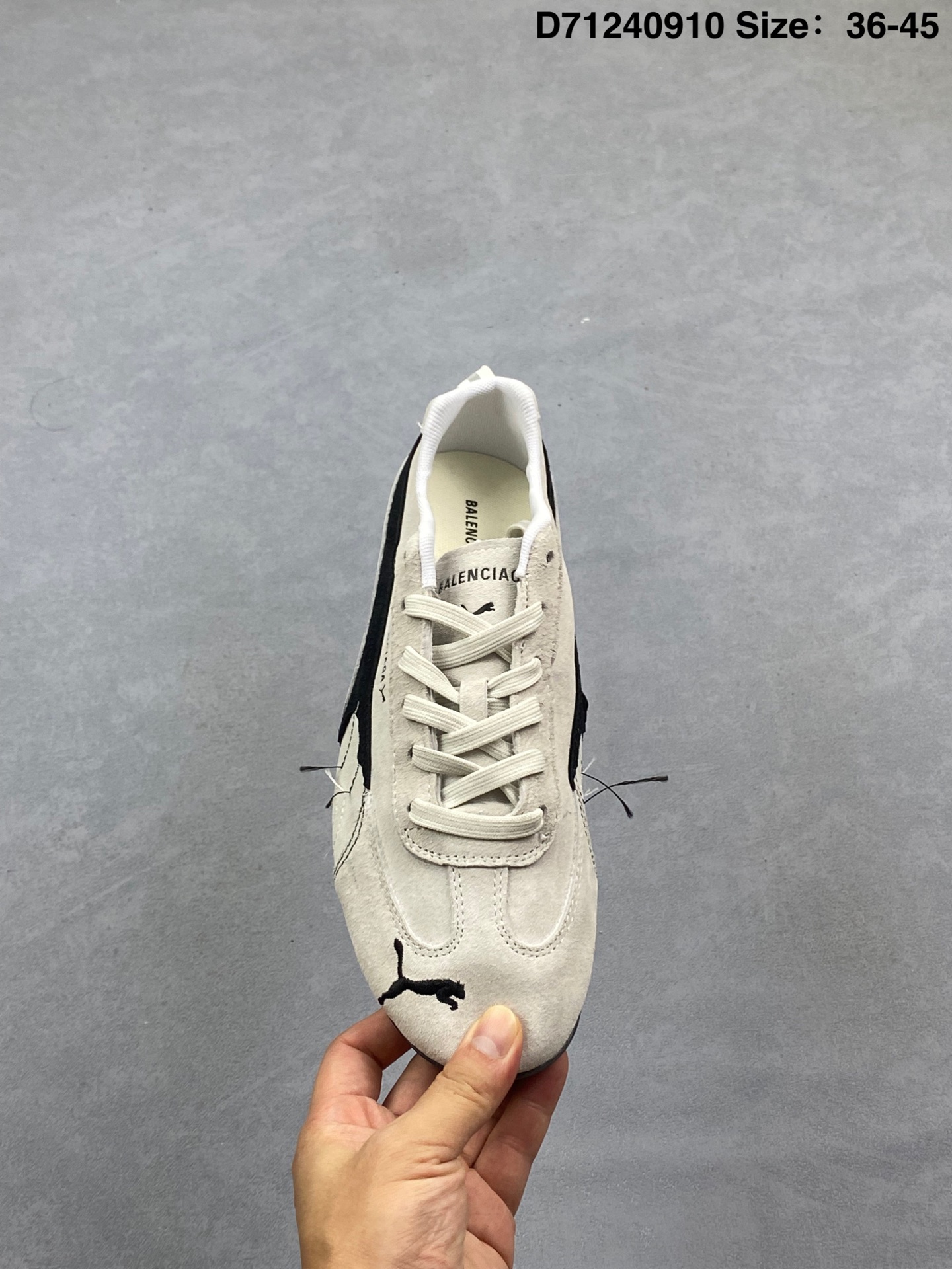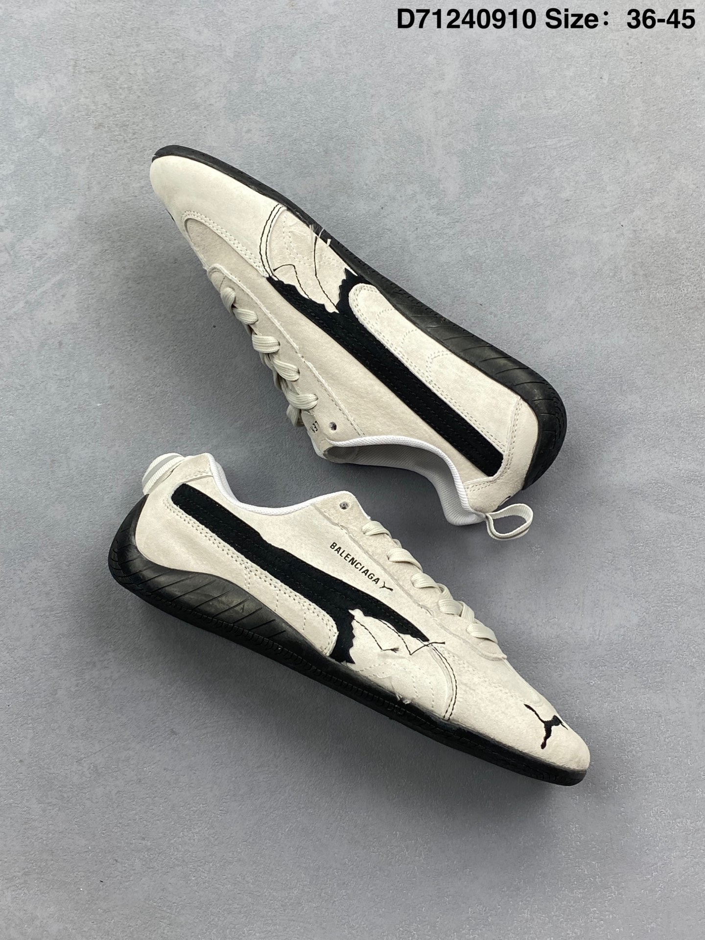 💰120 PUMA 彪马 x Balenciaga巴黎世家 Speedcat 系列 薄底鞋 牛皮绒面革 圆头做旧磨损 低帮 生活休闲鞋 极速赛车系列 复古运动休闲跑鞋 充正版本 鞋面设计轻量透气 提供了舒适性和穿着感受 柔软内里材质 穿着更加舒适 橡胶鞋底提供持久的牵引力 官方货号:406519-03 尺码:36~45 ID:D71240910