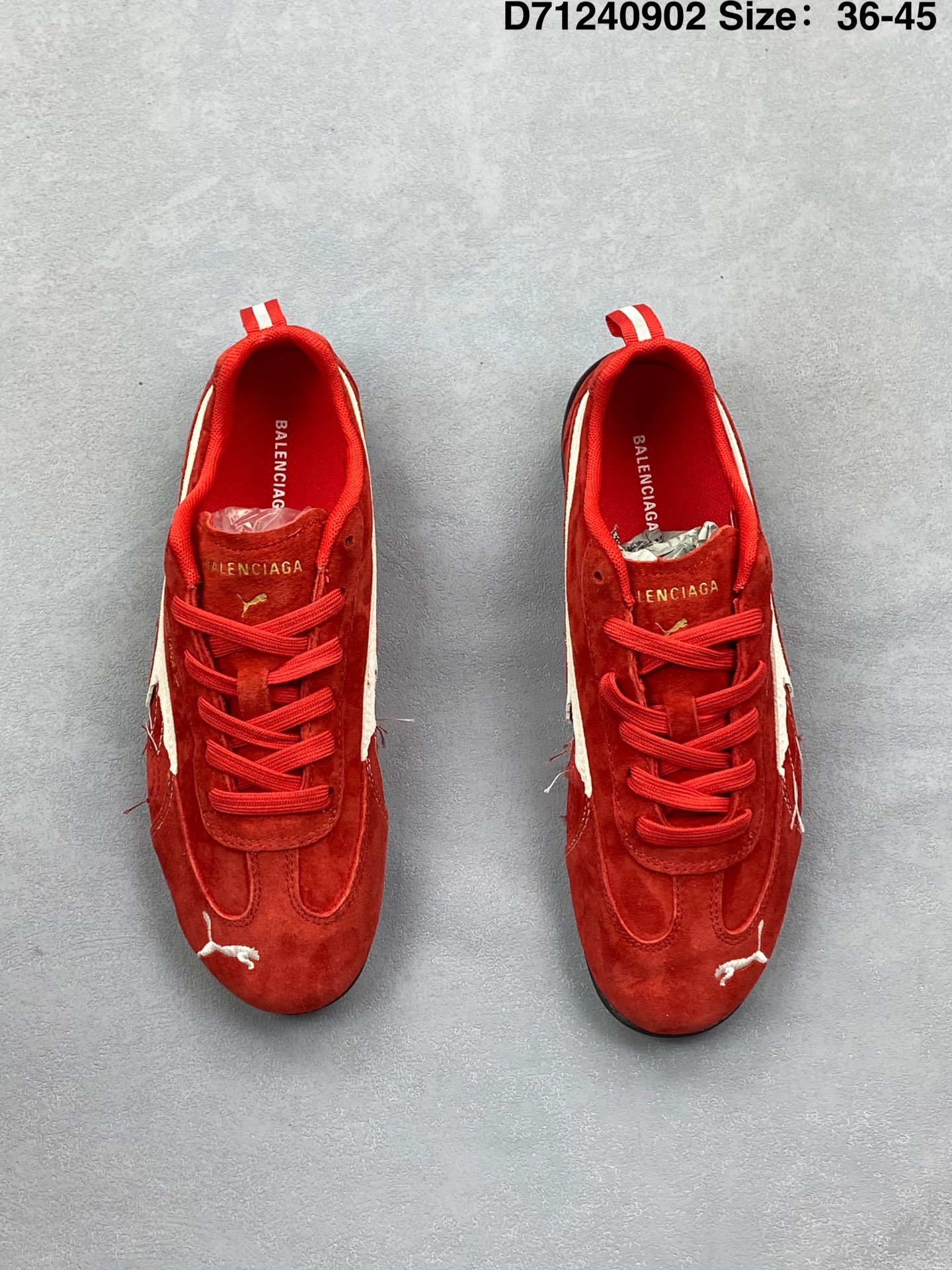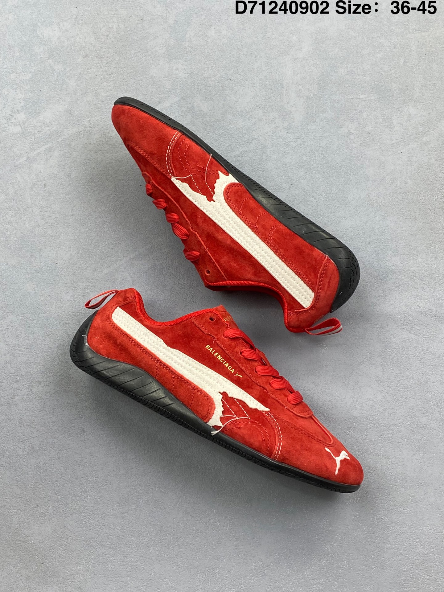 💰120 PUMA 彪马 x Balenciaga巴黎世家 Speedcat 系列 薄底鞋 牛皮绒面革 圆头做旧磨损 低帮 生活休闲鞋 极速赛车系列 复古运动休闲跑鞋 充正版本 鞋面设计轻量透气 提供了舒适性和穿着感受 柔软内里材质 穿着更加舒适 橡胶鞋底提供持久的牵引力 官方货号:406519-03 尺码:36~45半 ID:D71240902