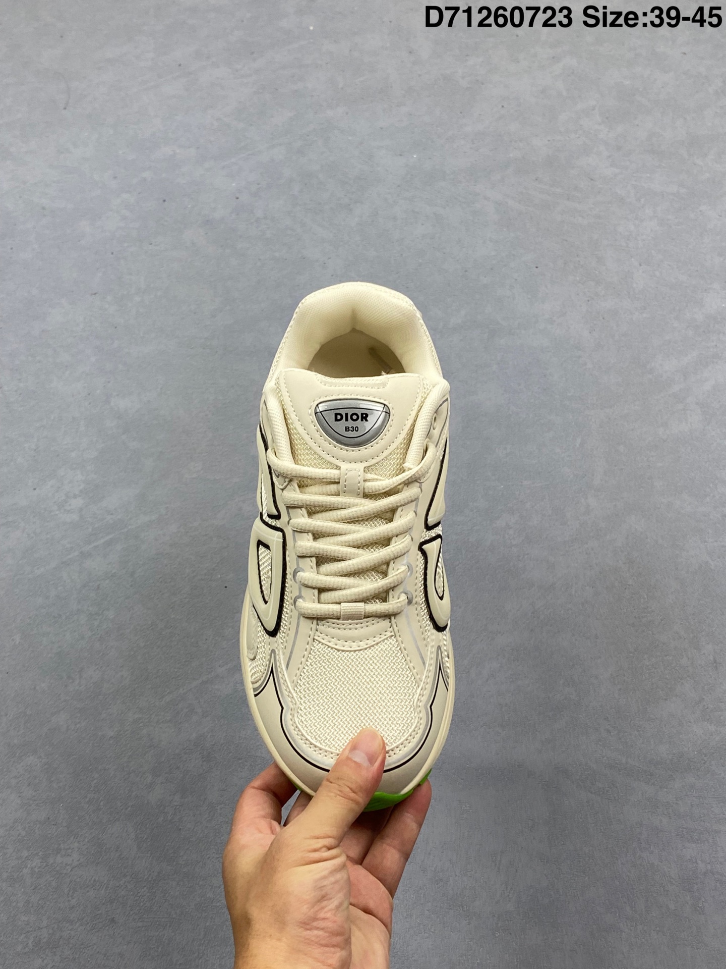 💰130 ✅Dior B30 迪奥网眼织物低帮运动休闲鞋 该款系列采用黑网色眼织物白和色科技料面精心制 作饰以反光“CD30”图形标志 外格轻盈的刻雕效果橡胶鞋搭底配标志性点的缀提升格调 内弹部力细节塑造想理的舒适穿着体验可与各休式闲造型配搭 彰显尚时现代的运风动范 货号:3SN279ZRF H900 尺码:如图 D71260723