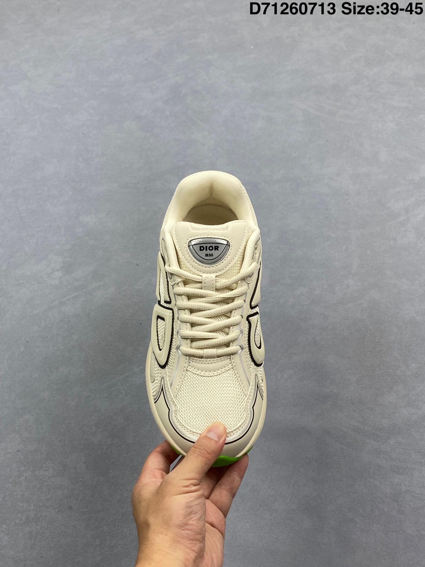💰130 ✅Dior B30 迪奥网眼织物低帮运动休闲鞋 该款系列采用黑网色眼织物白和色科技料面精心制 作饰以反光“CD30”图形标志 外格轻盈的刻雕效果橡胶鞋搭底配标志性点的缀提升格调 内弹部力细节塑造想理的舒适穿着体验可与各休式闲造型配搭 彰显尚时现代的运风动范 货号:3SN279ZRF H900 尺码:39 40 41 42 43 44 45 Size:39-45(布袋) 编码:D71260713
