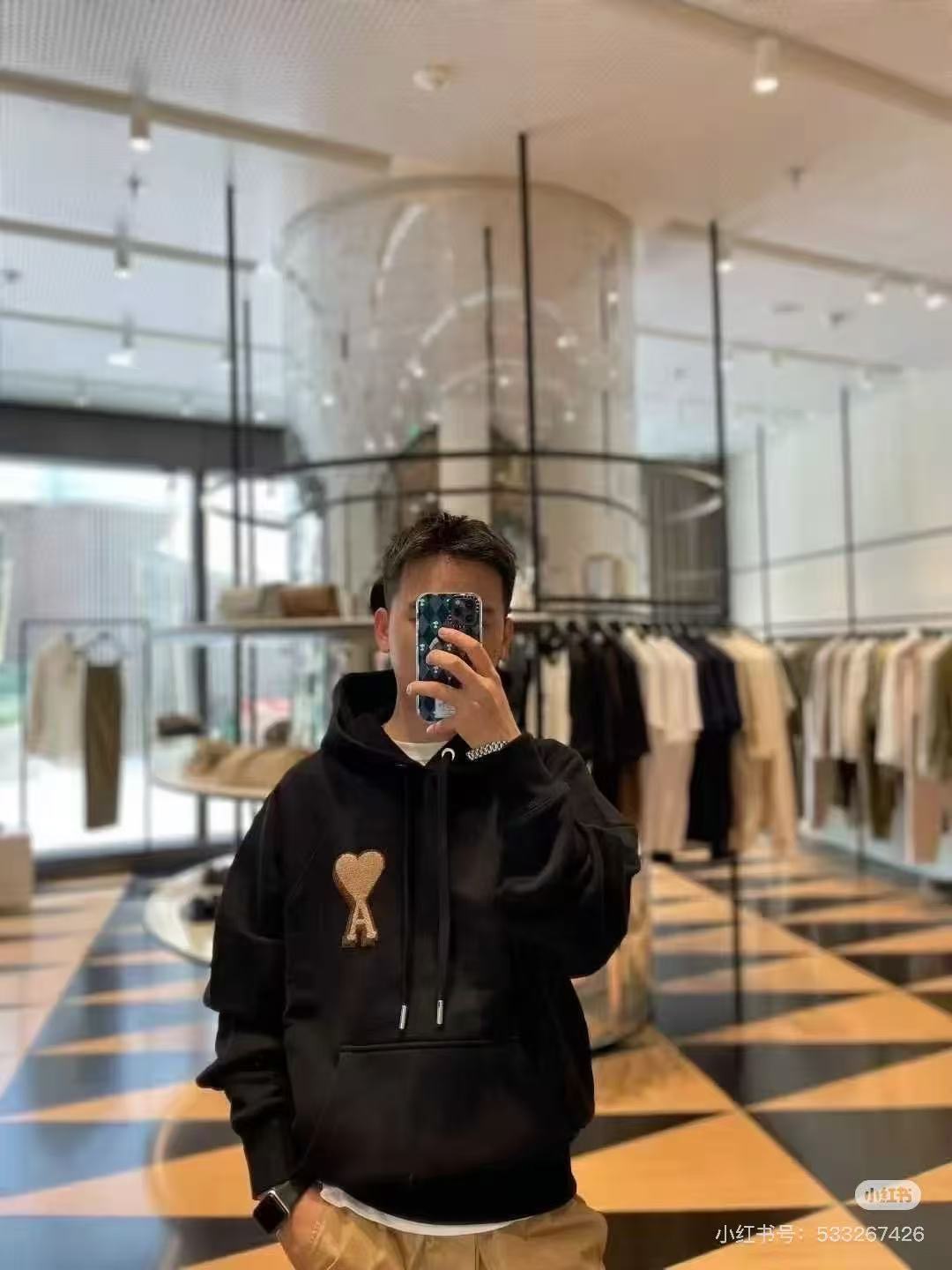 #Ami 重影爱心毛巾绣连帽卫衣上身效果