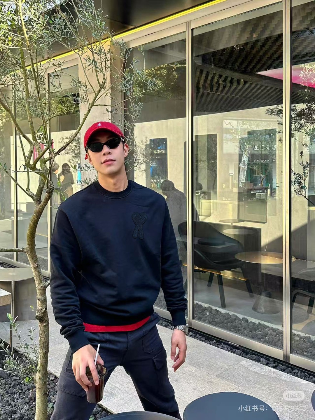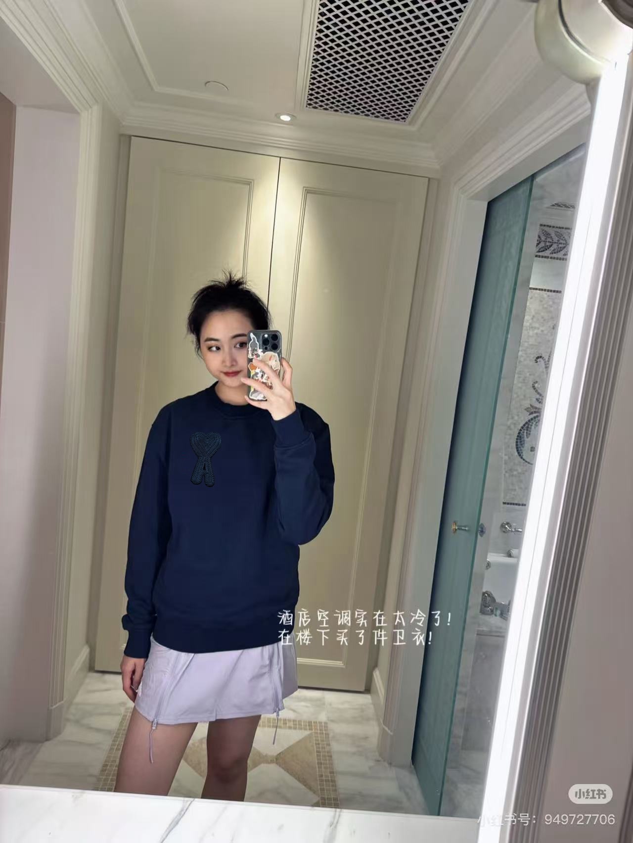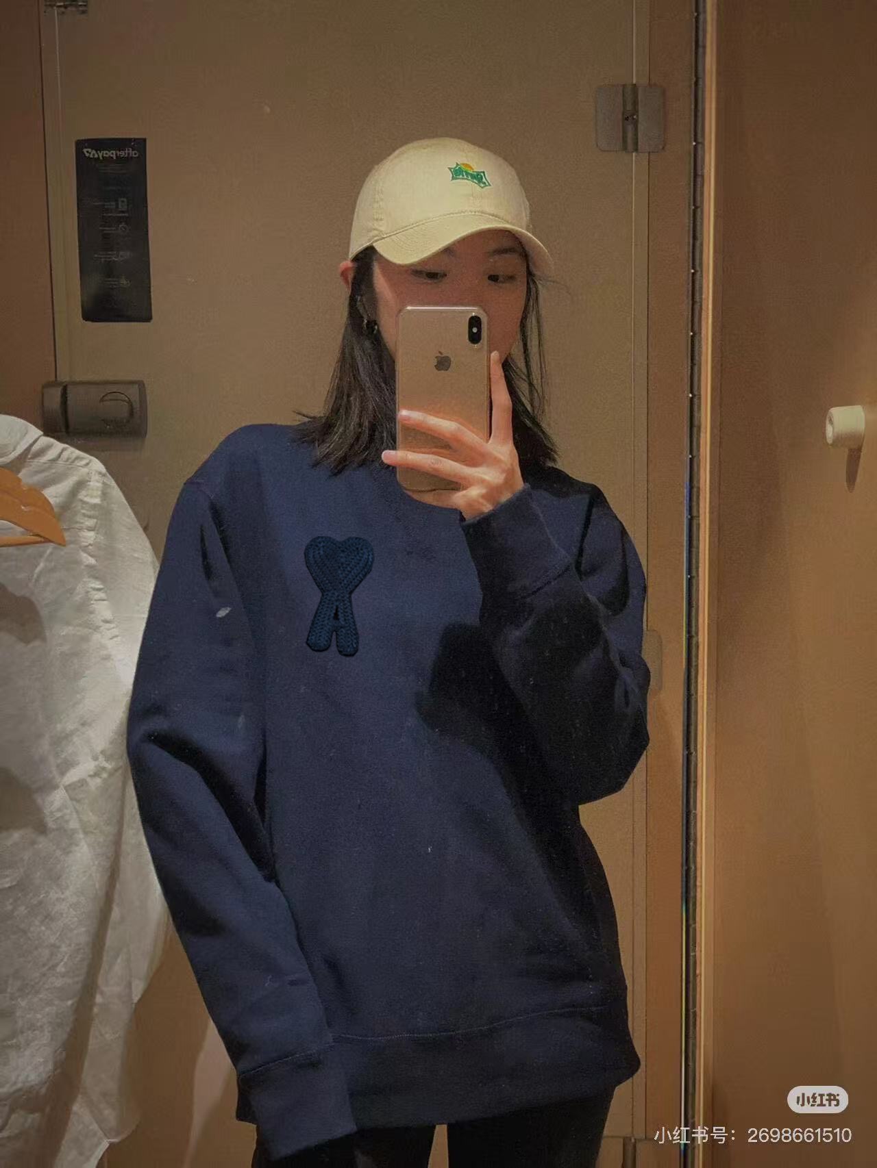 #Ami 爱心钩针刺绣圆领卫衣上身效果