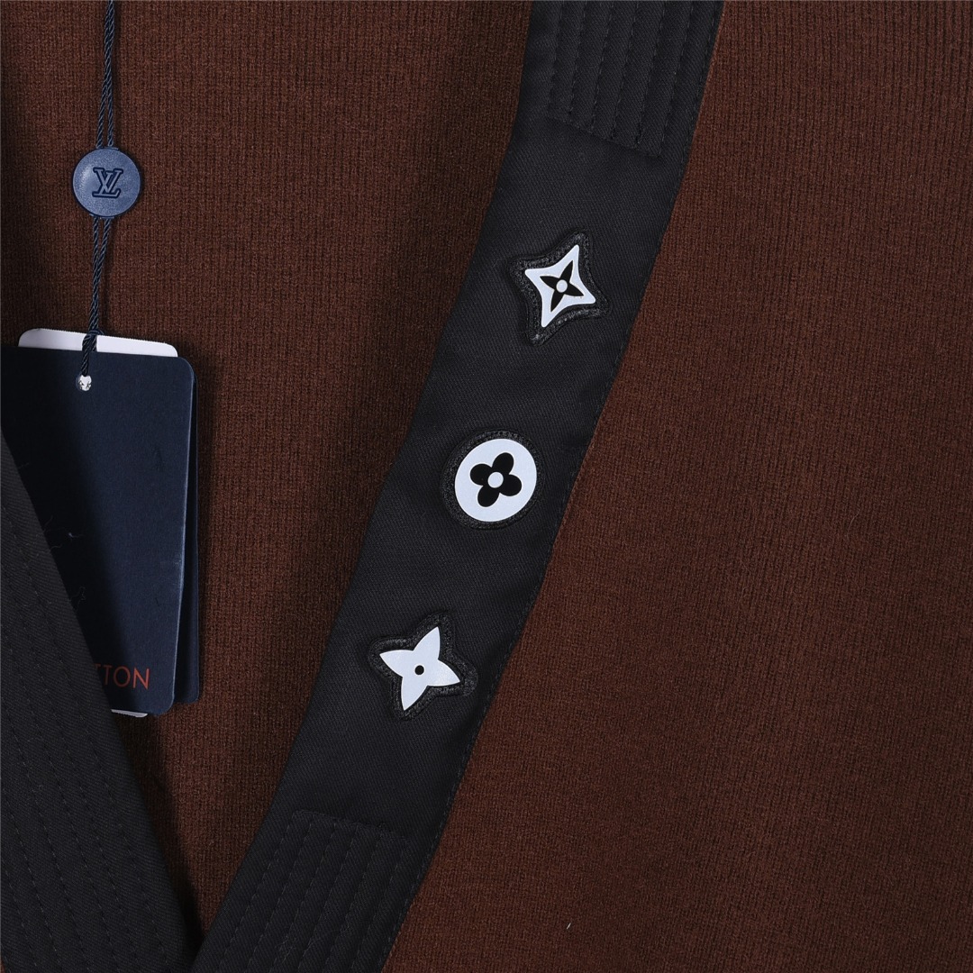 💰320() Louis Vuitton/路易威登 25Fw 三花反光标识装饰和服领开衫毛衣 装饰细节开衫本款绵羊毛开衫出自 Pharrell Williams 与 Nigo 合作推出的 2025 秋冬合作系列。 绗缝棉质衣领恰似和服,道出 Nigo 的日本文化之源,其上点缀的 Monogram 花卉贴饰微微闪烁珠光。 隐藏式纽扣前襟成就简约廓形,打造休闲或正式造型皆宜。 标准版型 100% 绵羊毛 绗缝棉质和服式衣领 罗纹袖口及下摆 隐藏式纽扣前襟 衣领配有珠光标识贴饰 颜色:黑色,棕色 Size:XS-L