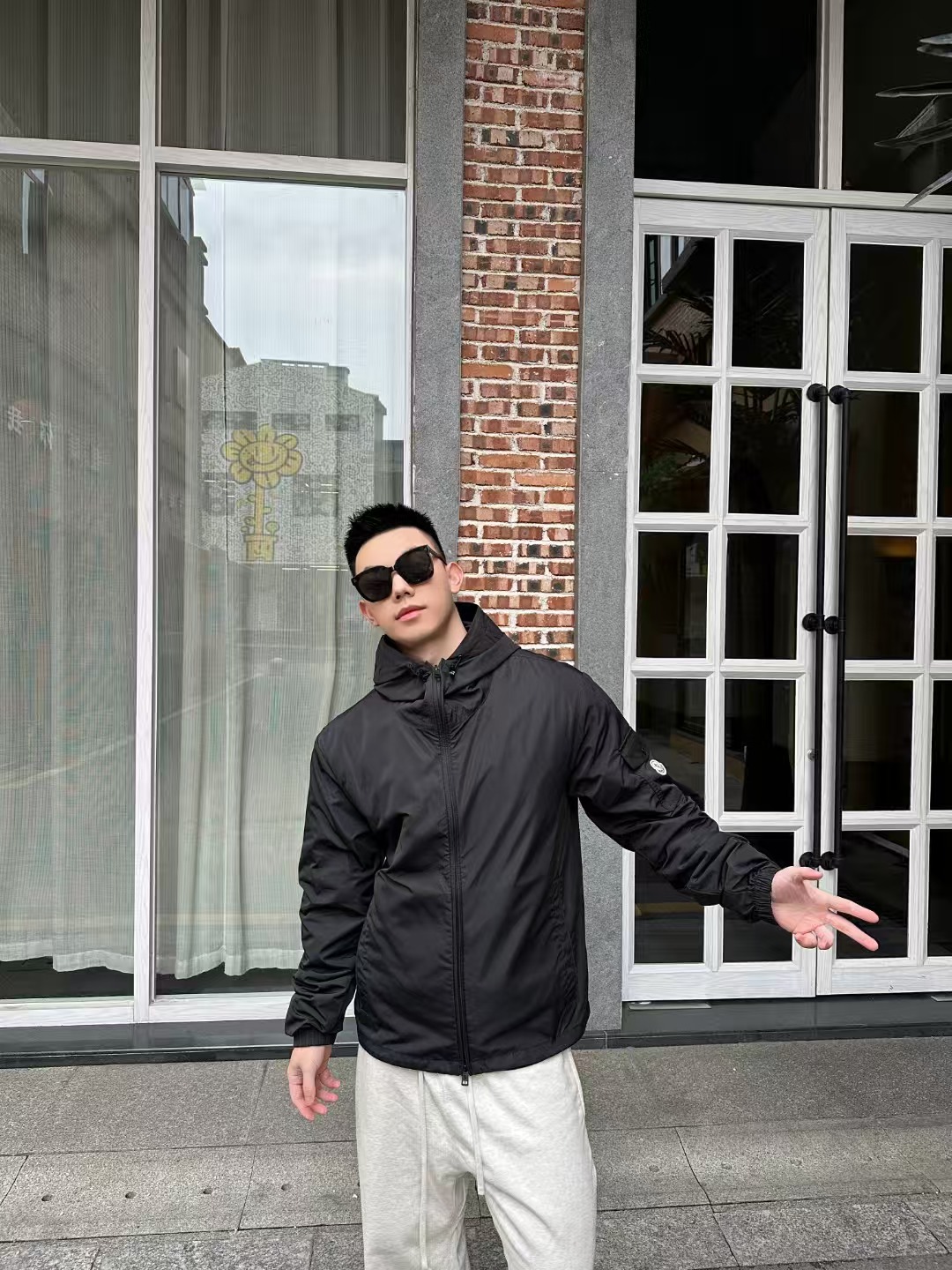 MONCLER蒙口 25Fw 徽标刺绣袖口袋拉链连帽夹克外套 上身效果#