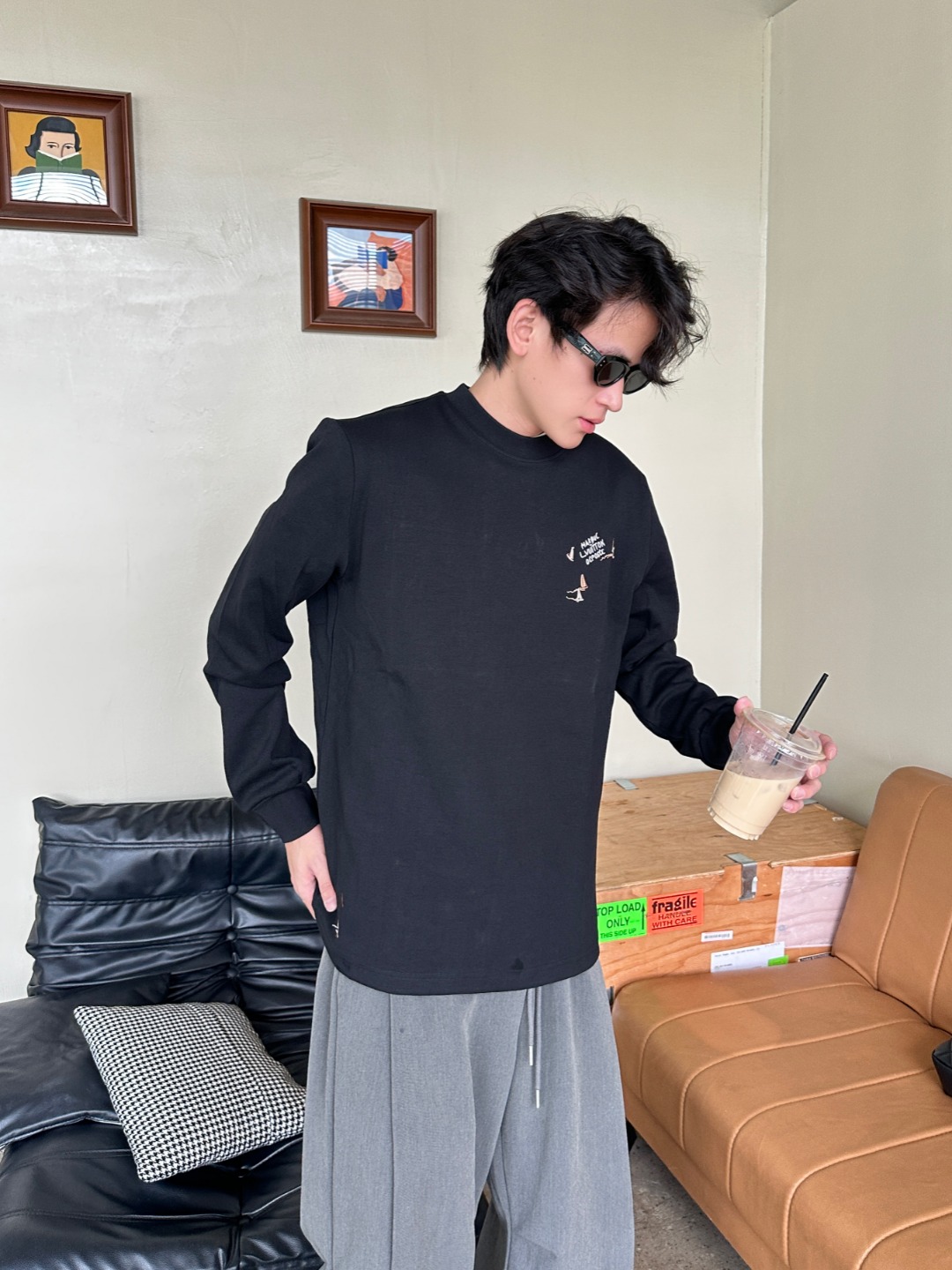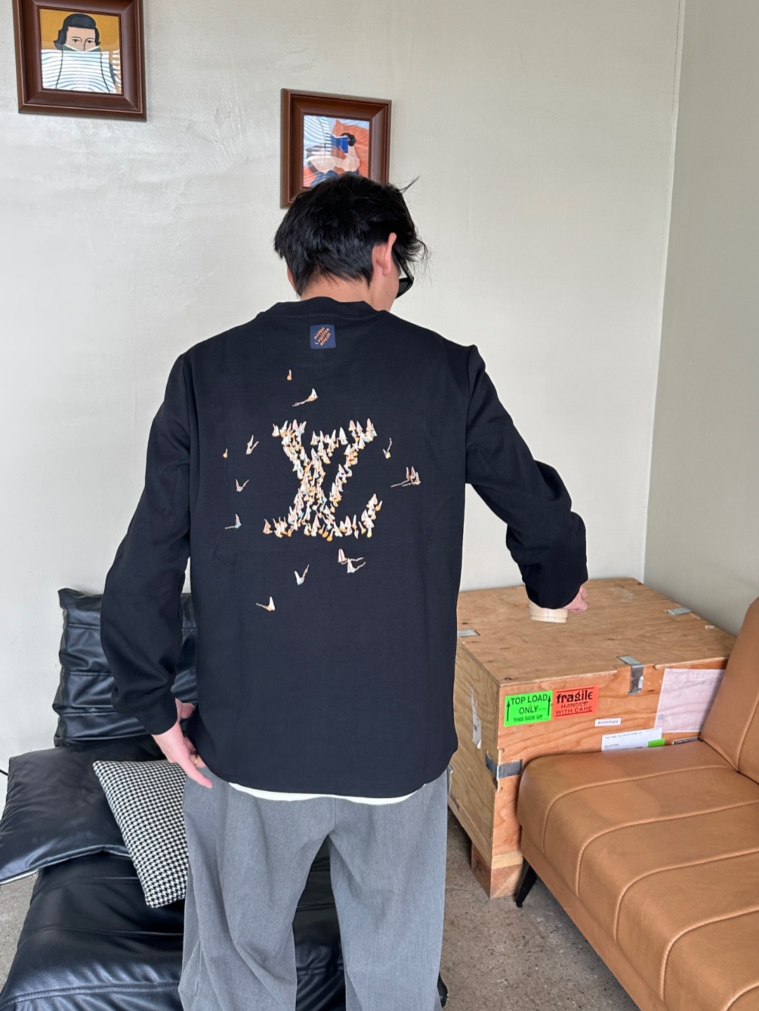 LouisVuitton/路易威登25Fw 帆船logo刺绣长袖T恤 上身效果#