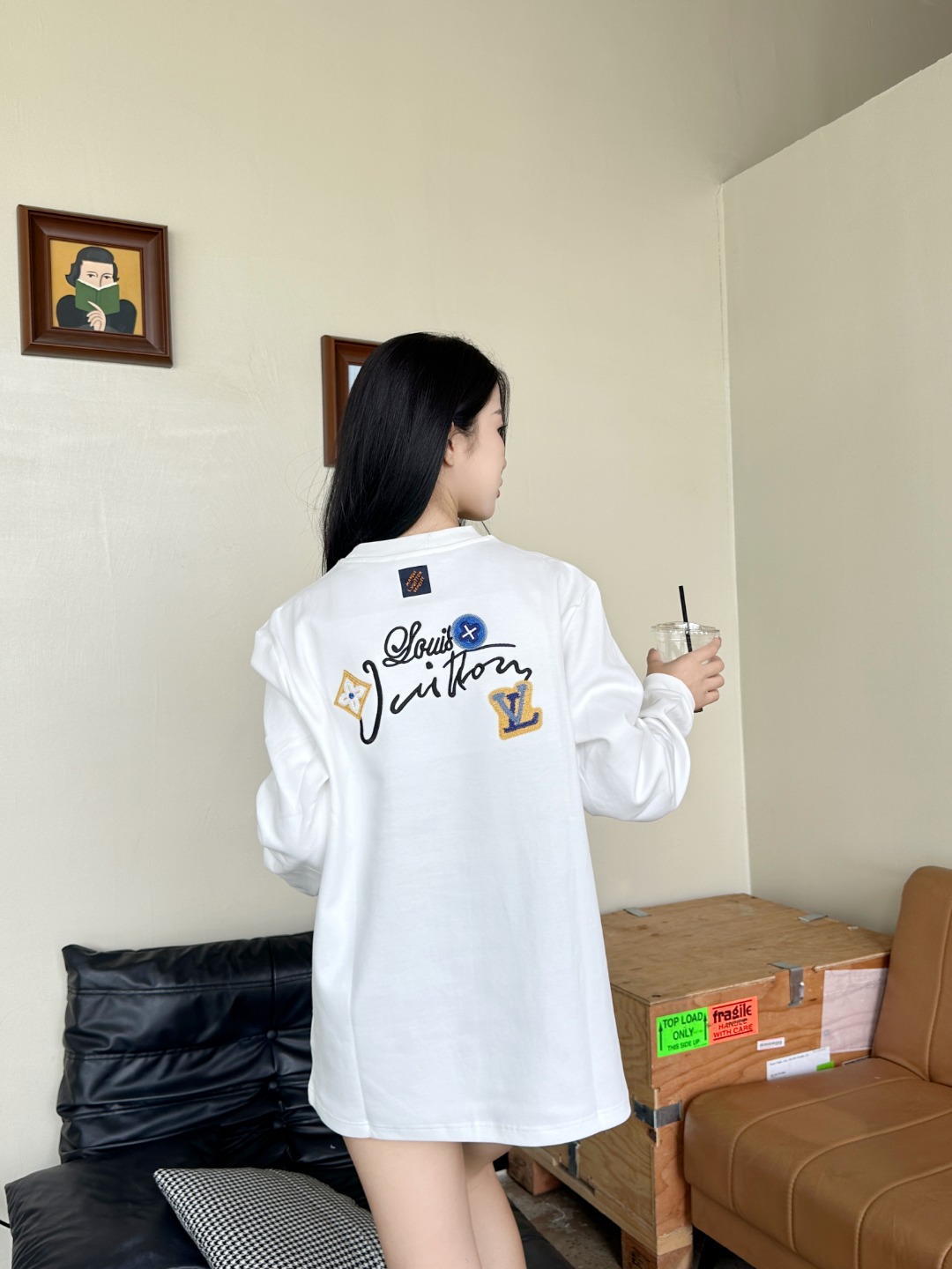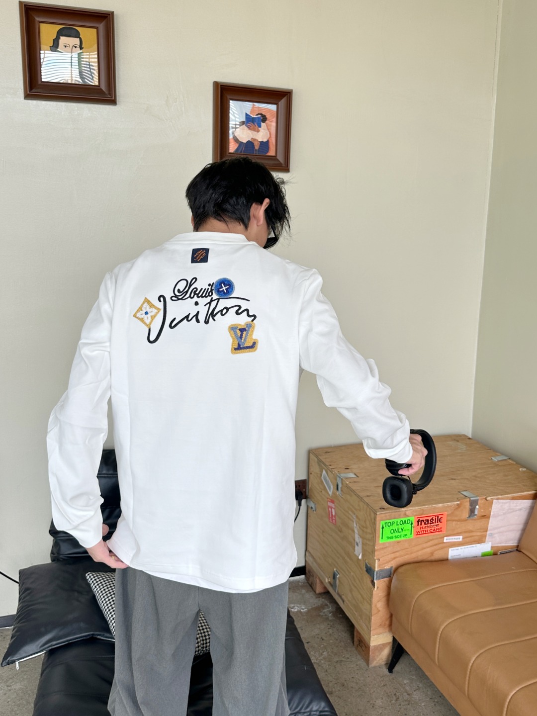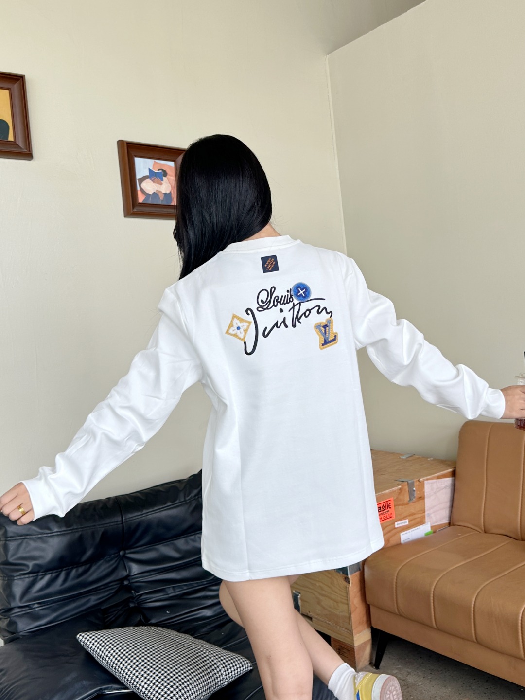 Louis Vuitton/路易威登 25Fw 花卉字母刺绣长袖T恤 上身效果#