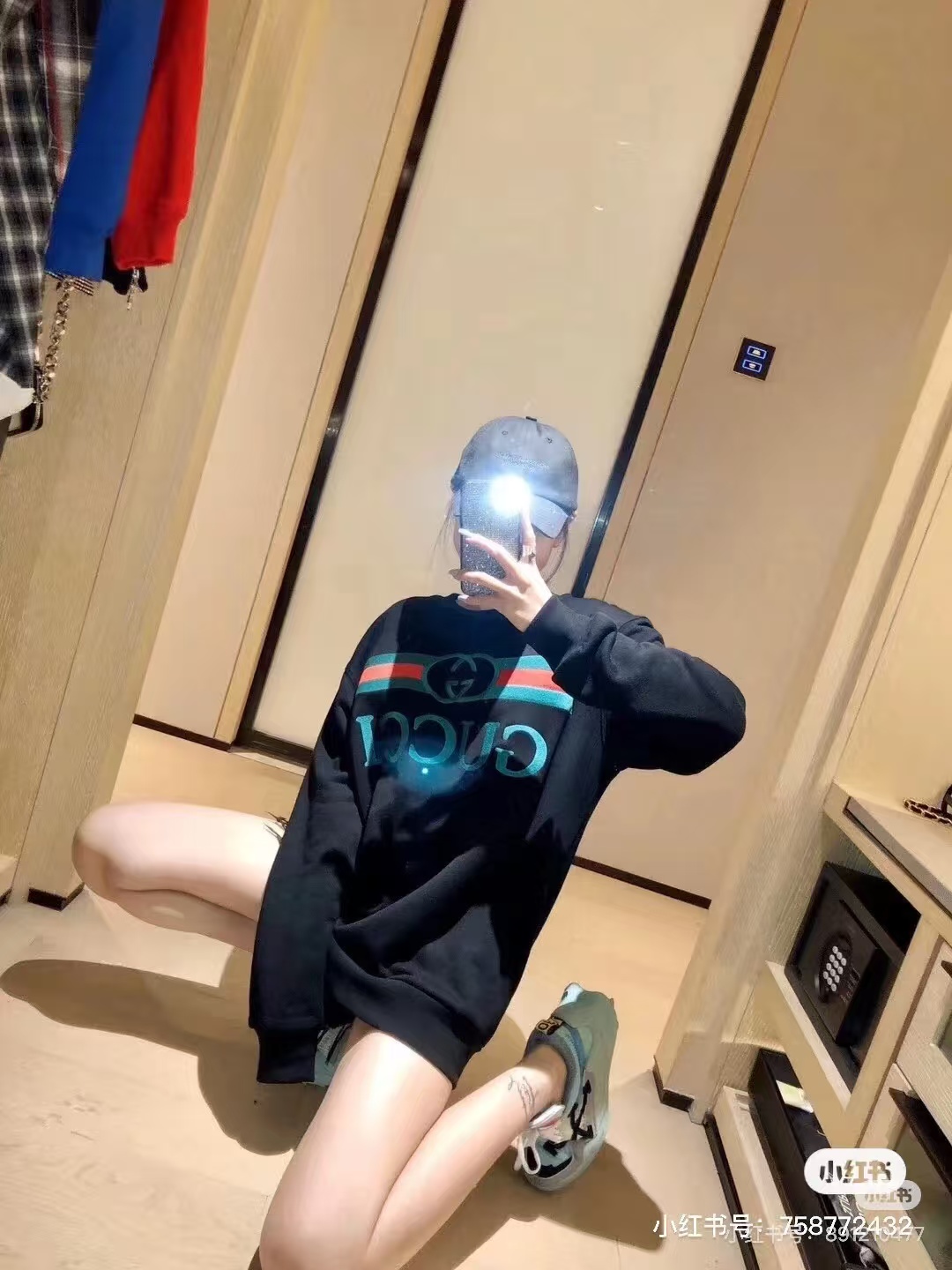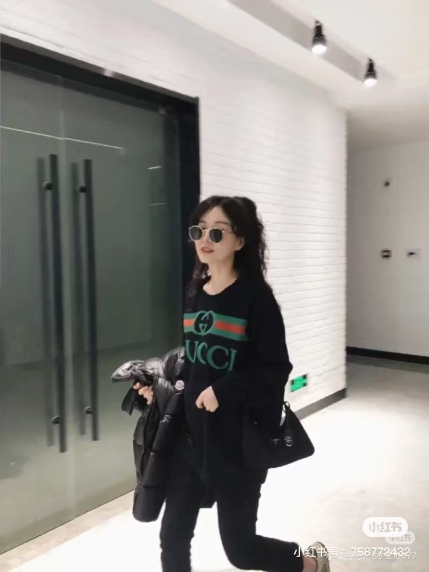 Gucci/古驰 25Fw 红绿腰带logo刺绣圆领卫衣 上身效果#